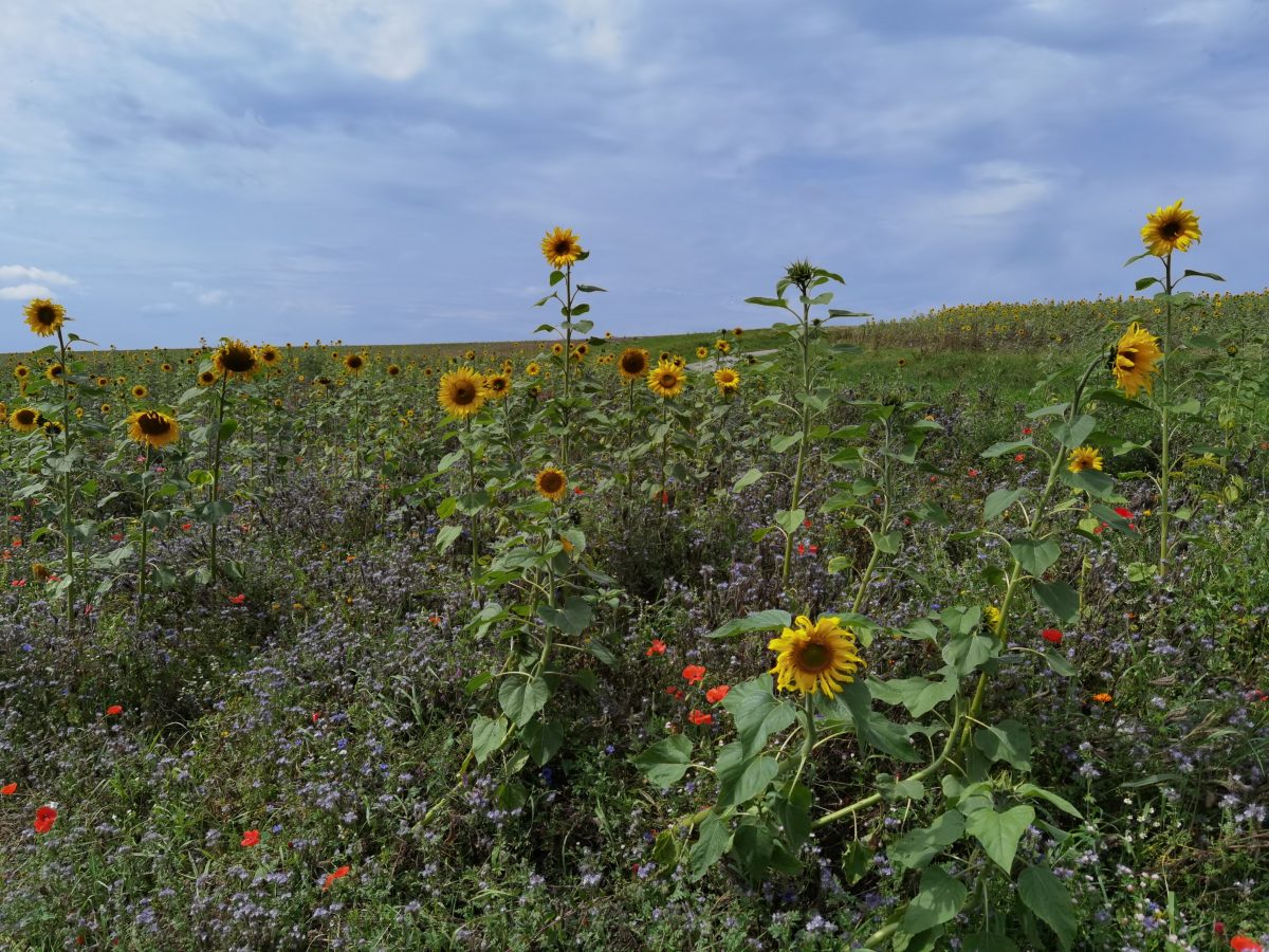 Zum ersten Mal hat Kunigunde nicht nur einmal im Frühjahr Pflücksalat ausgesät. Hier auf dem Bild ist die 3. Aussaat zu sehen, in einem kleinen Hochbeet zusammen mit Tagetes und Kohlpflanzen. So kann man den ganzen Sommer über immer Blätter ernten. Aktuell ist jetzt die 4. Aussaat erfolgt, so dass vielleicht auch noch im September Salat geerntet werden kann.