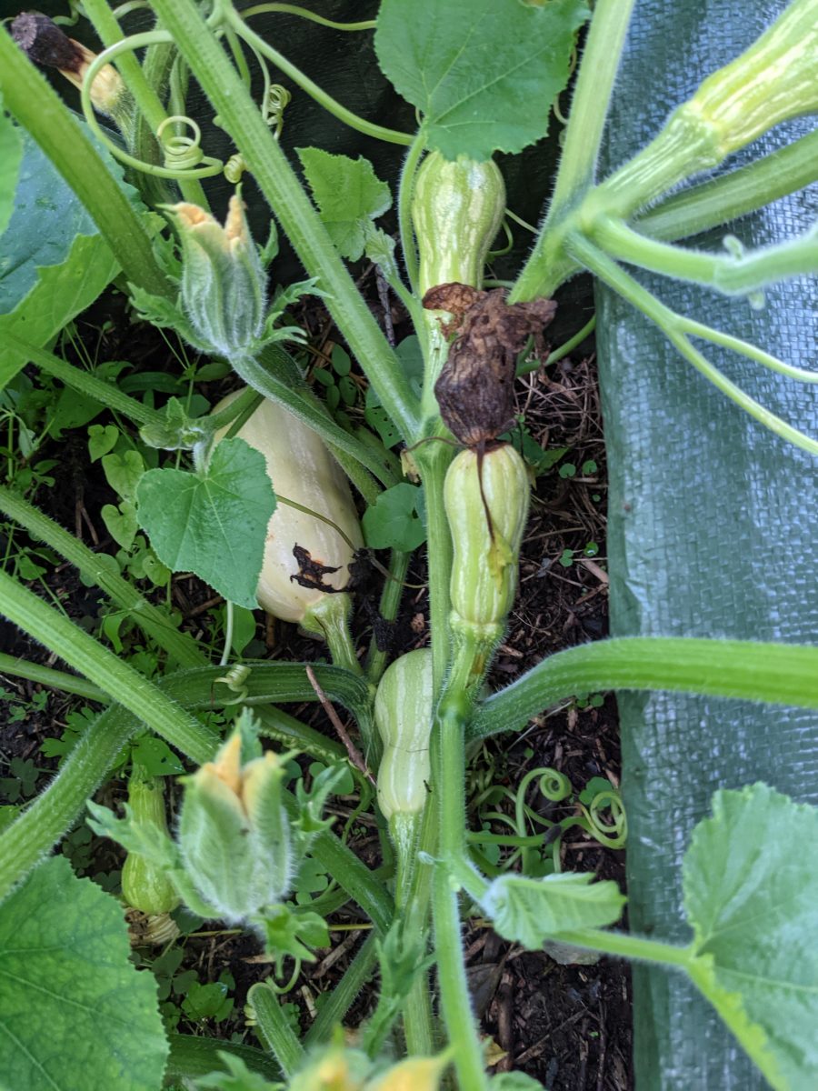 Leider ist in diesem Jahr aber die Tomatenernte fast ganz ausgefallen. Nachdem die Pflanzen alle sehr gut Früchte angesetzt hatten, ist innerhalb einer Woche die Kraut- und Braunfäule an den Pflanzen ausgebrochen. Diese Entwicklung kam so plötzlich, dass einige Pflanzen nicht mehr zu retten waren. Auch die letzten verbliebenen Pflanzen sind alle befallen und aufgrund des dauernden Regens reicht es nicht aus, die befallenen Blätter zu entfernen.