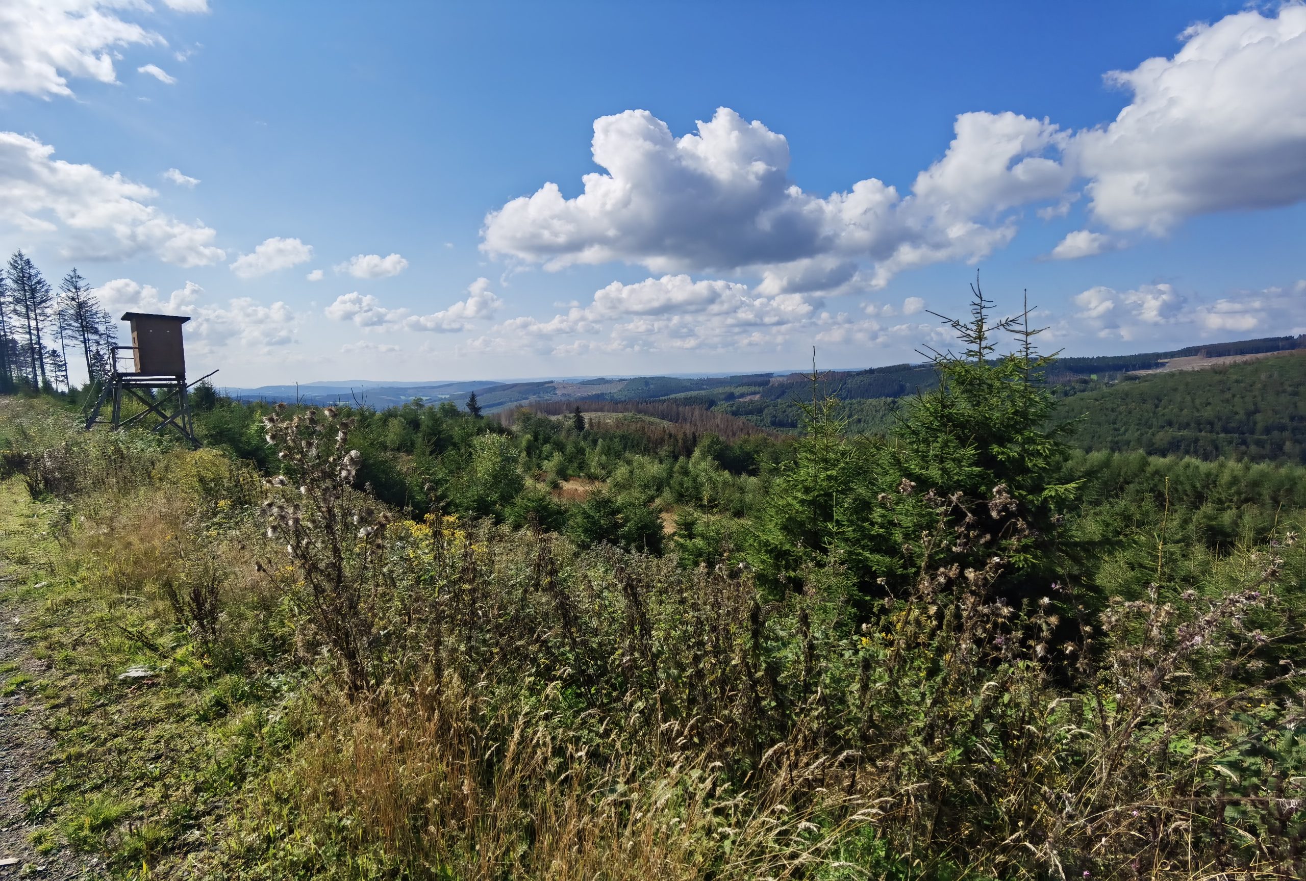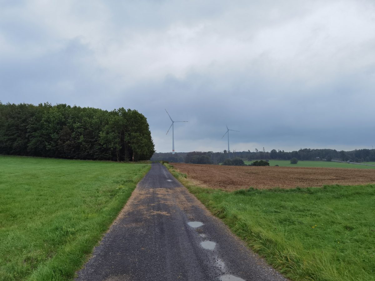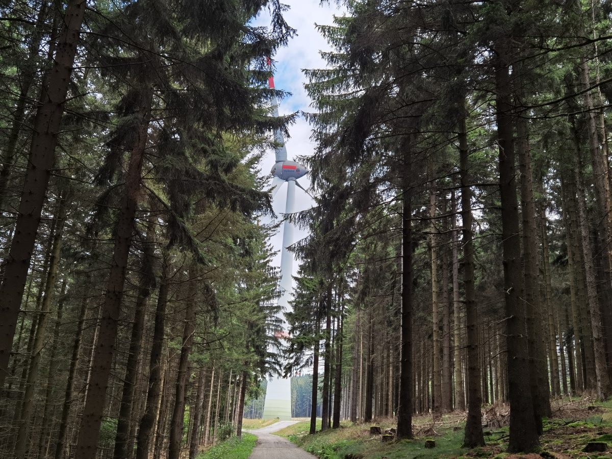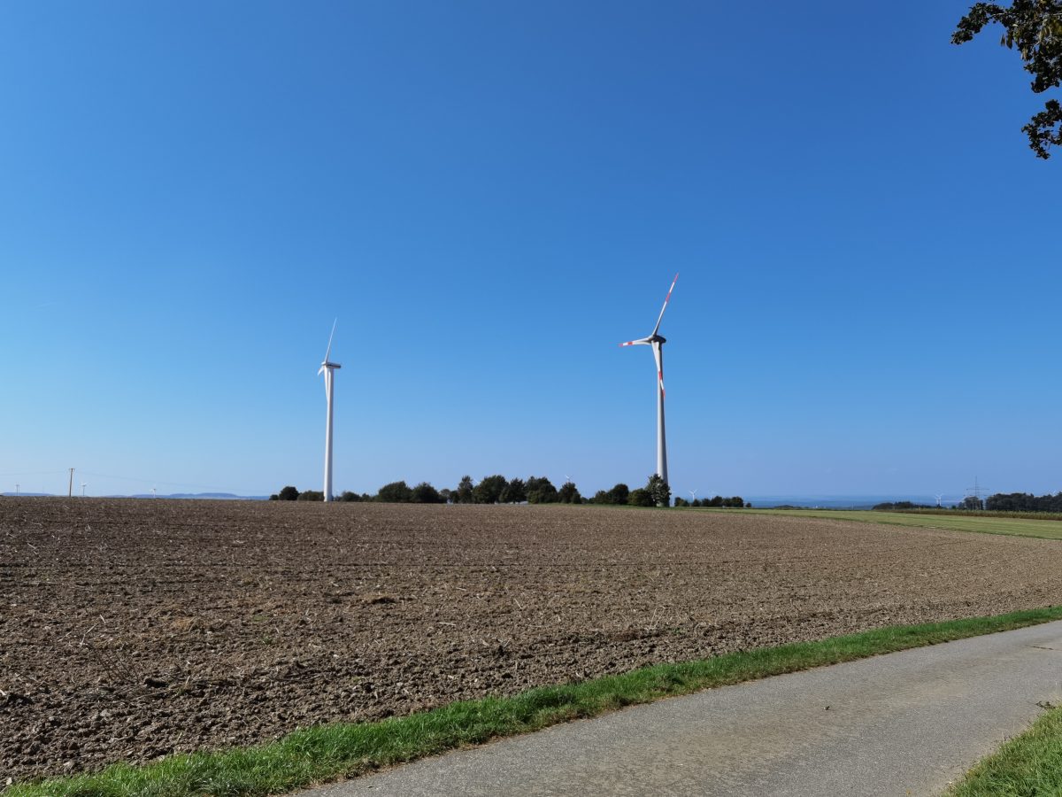 Dieses Mal fahren wir in den Soonwald und starten vom Parkplatz Schanzenkopf die Hochsteinrunde. Es geht an ganz vielen Windrädern vorbei. Insgesamt scheint es im Hunsrück eine viel größere Anzahl an Windrädern zu geben als im Westerwald.