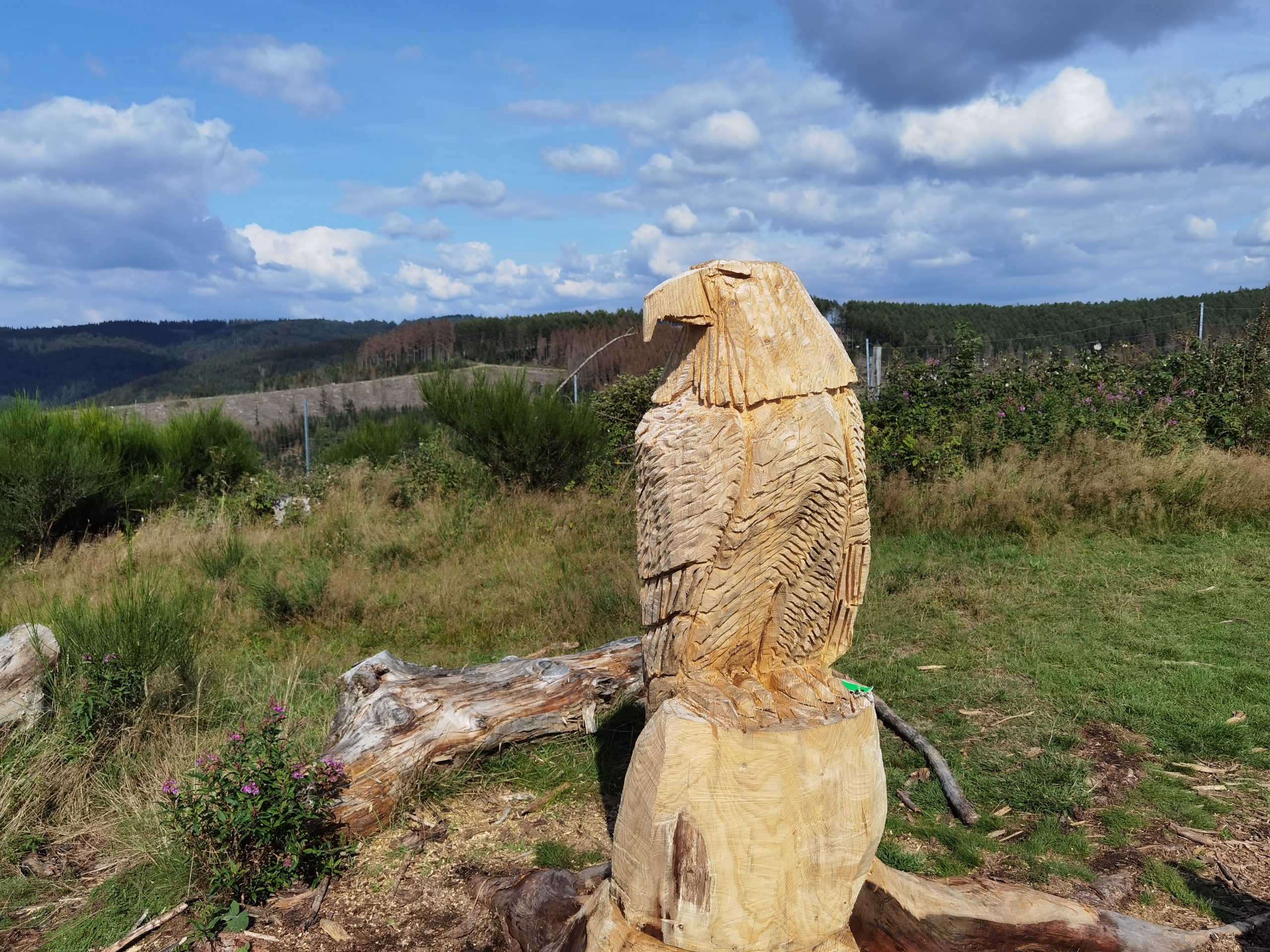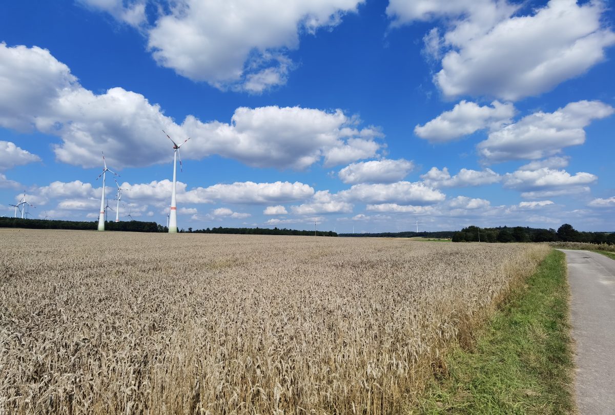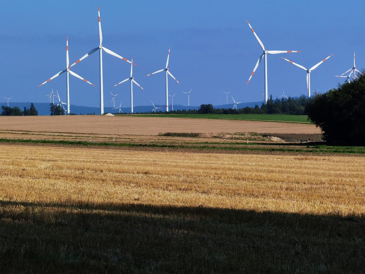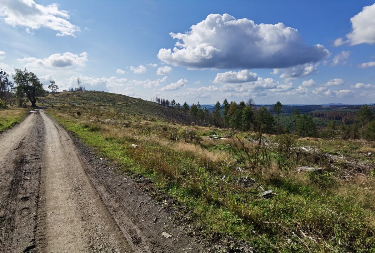Dieses Mal fahren wir in den Soonwald und starten vom Parkplatz Schanzenkopf die Hochsteinrunde. Es geht an ganz vielen Windrädern vorbei. Insgesamt scheint es im Hunsrück eine viel größere Anzahl an Windrädern zu geben als im Westerwald.