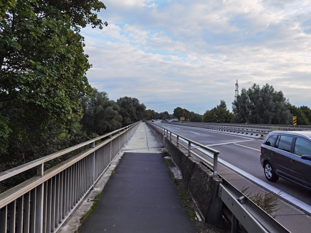 Die zweite Herausforderung ist die Übernachtung genau da, wo es nicht mehr weitergeht. Gut, an der bin ich schon vor 50 Kilometern vorbeigefahren, aber die Nacht in einer Stadt unter einer Brücke zu verbringen ist eine ganz andere Art von Abenteuer. Die Taschen rechts enthalten einen Schlafsack, einen Biwaksack eine UL Isomatte und eine Unterlage. In sinnvoller weise in- und aufeinander gestapelt ergibt sich eine Einstiegsöffnung, die für Oberschenkel mit 149 Kilometern auf dem Tacho eindeutig zu klein ist. Aber noch kann den drohenden Muskelkontraktionen ausgewichen werden. Es wird kalt, aber auf der Ruhebank lässt es sich ganz ruhig ruhen. Ein Radfahrer in der Nacht und einer im dunklen Morgen, dann ist die nacht vorbei.