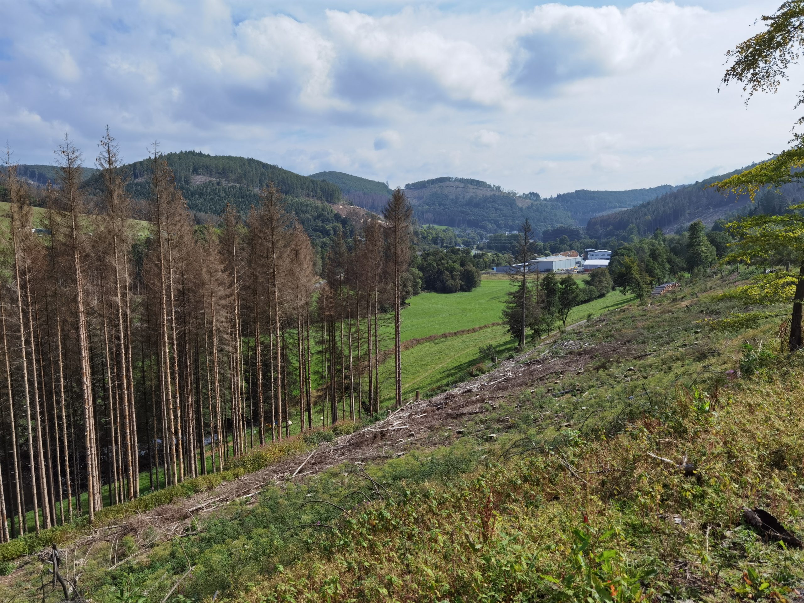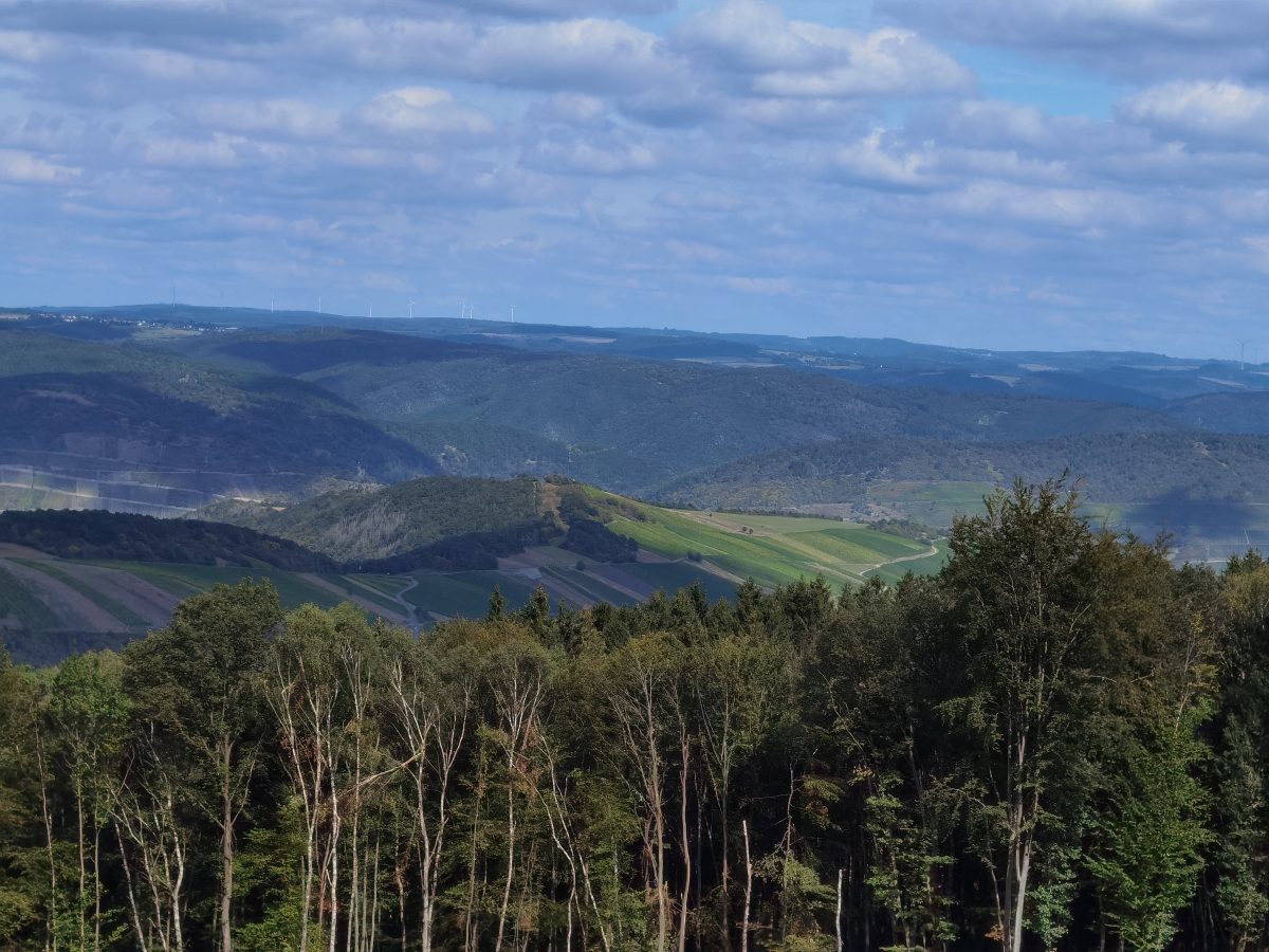 Das Wetter ist immer noch spätsommerlich warm und somit gibt es noch einmal eine Fahrradtour vom Platz aus. Bergab geht es wieder durch das Trimmbachtal, anschließend durch das Deimerbachtal bis zur Junkersmühle über den Hunsrück-Mosel-Hunsrück Radweg. Von dort geht es langsam bergauf durch das Mannebachtal bis zum Dorf Mannebach. Dann sind wir wieder auf der Höhe mit vielen Aussichten. Kurz hinter Ebschied treffen wir wieder auf den Schinderhannesradweg und von dort geht es zurück zum Campingplatz.
