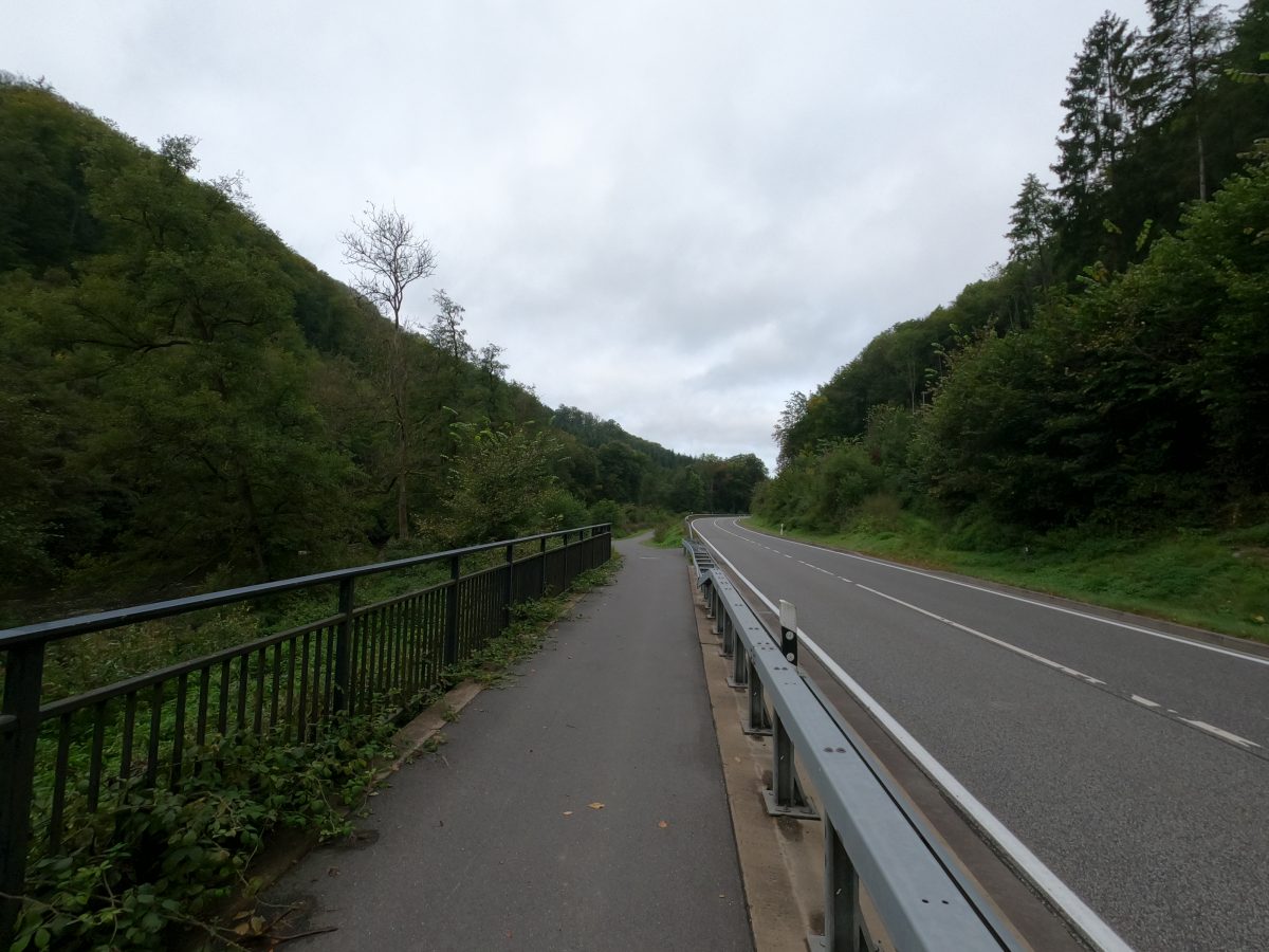 Die Anfahrt mit dem Rad war zunächst auf Landstraßen akzeptabel bis gefährlich, auf der engen Straße im Wiedtal ist regelgerechtes Überholen von Radfahrern nicht von jedem Lenker zu erwarten. Die Strecke ist über parallel verlaufende Waldwege aber mit MTB zu umgehen. Mit erreichen des Radweges, der parallel zur L255 hinter der Laubachmühle beginnt, wird die Anfahrt deutlich entspannter. Bis zum geplanten Einstieg in den Wiedweg südlich von Waldbreitbach ist die Tour entspannend, nur die Sorge um den mit 20 Kilometern reichlich bemessenen Rückweg trübt den Genuss. Das Rad wird seitlich der Straße in einem Busch versteckt. Dabei darauf geachtet, dass in der Nähe des Verstecks das Auto beim Abholen ein paar Minuten geparkt werden kann.