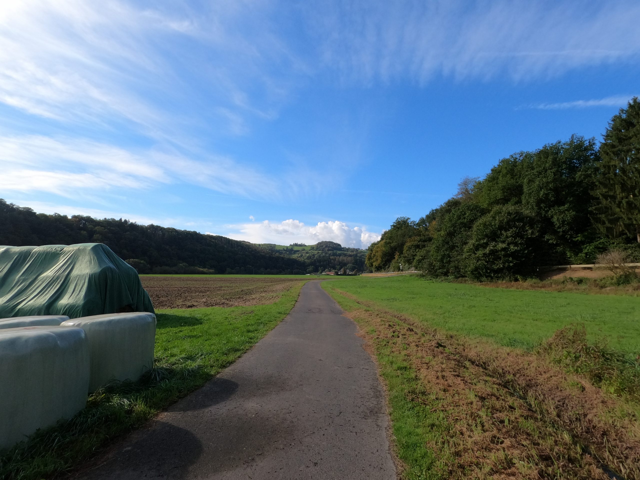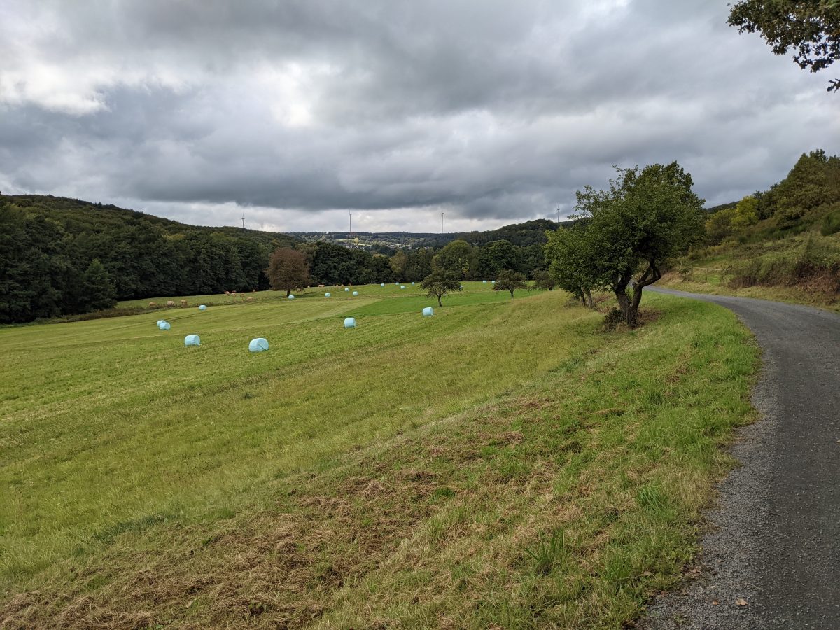 Die Wanderwegstrecke wechselt von Wirtschaftswegen durch die breiteren Talauen mit Hügel aufab am Talrand. Durch Altenkirchen habe ich eine Variante erwischt, die Strecke südlich der Stadt wollte ich eigentlich laufen, habe aber keinen Abzweig erwischt. Wer hier nicht 2 Kilometer die Bürgersteige gehen will, muss die Streckenvariante noch mal genauer prüfen.