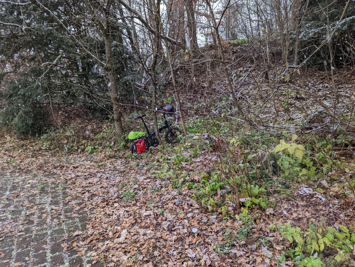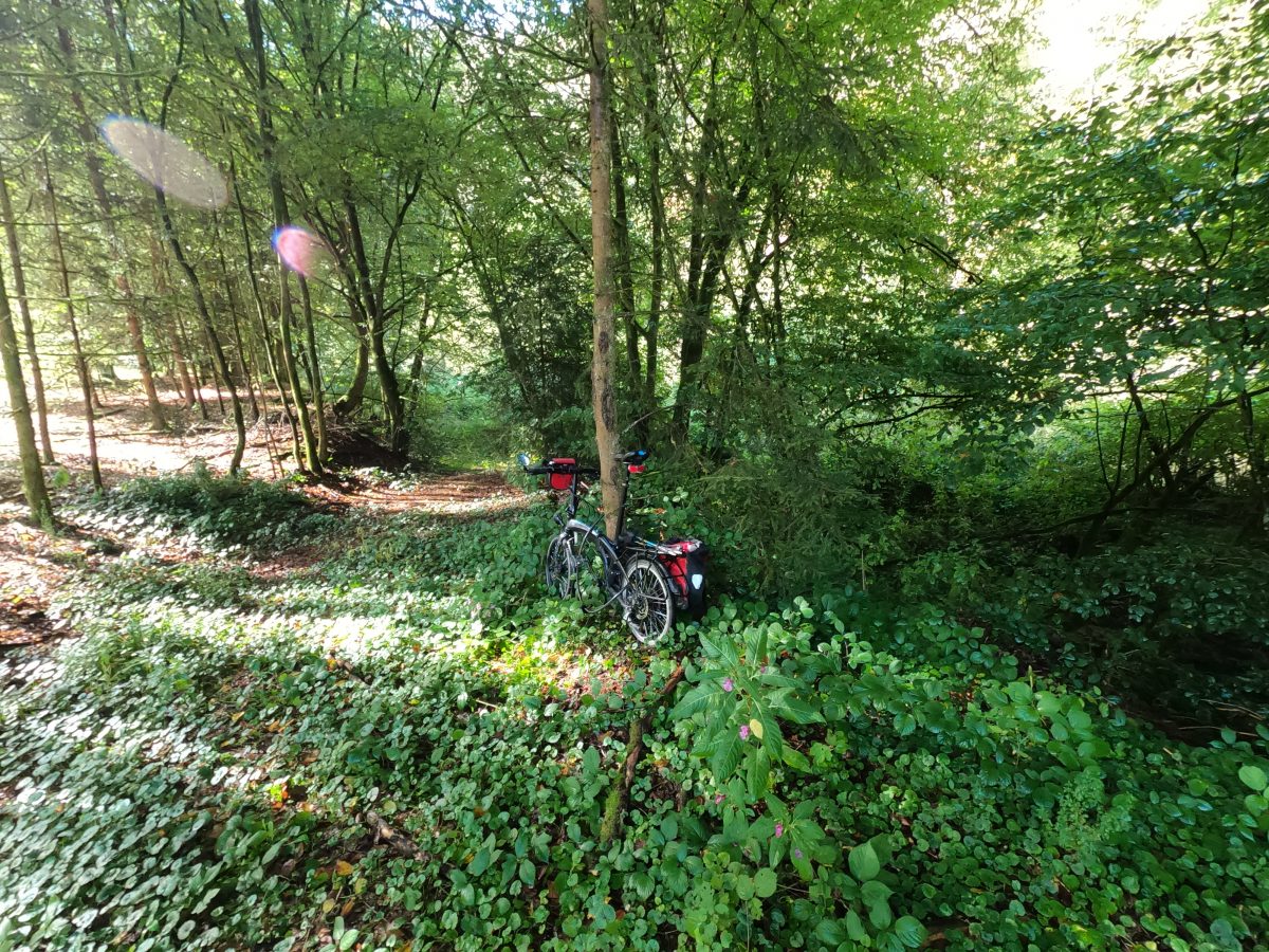 Bei den drei Wiedweg Etappen Ende September, Anfang Oktober wird die Übernachtung weggelassen, die Anfahrt erfolgt mit dem E-Auto und einem Klapprad im Kofferraum.