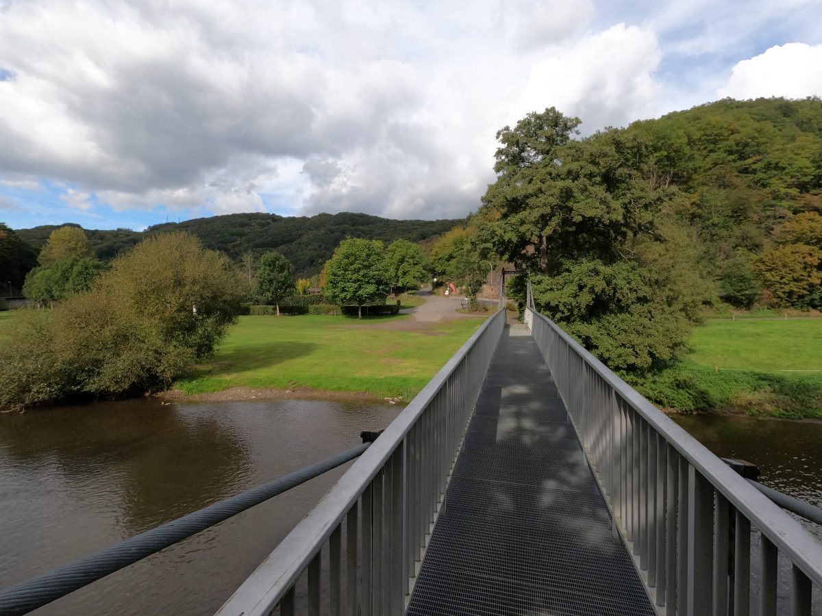 Nach kälterer Nacht geht es unerwartet teilbesonnt auf die Stadtetappe bei Altenkirchen. Die Strecke ist recht kurz gewählt, weil bei der Planung mit schlechterem Wetter gerechnet wurde. Und in Ingelbach bot sich der Sportplatz mit Steg zum Wiedweg als Etappenziel an.