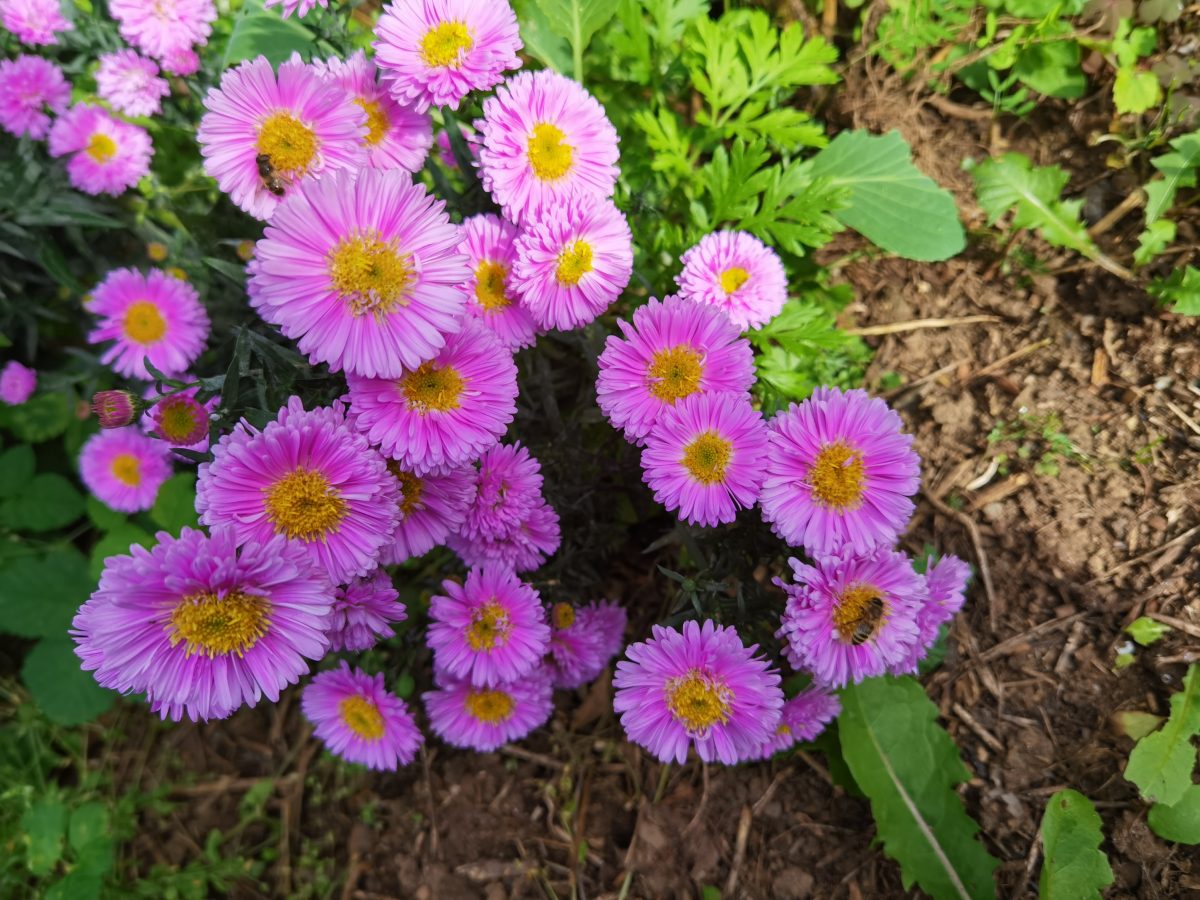 Bei schönem Wetter ist im Garten von Kunibert und Kunigunde noch einmal das Nektarangebot für Bienen, Wildbienen, Hummeln und Schmetterlinge reichlich vorhanden. Gerade unsere Asternarten säen sich immer wieder an anderen Standorten im Garten aus und es gibt immer neue Blütenfarben.