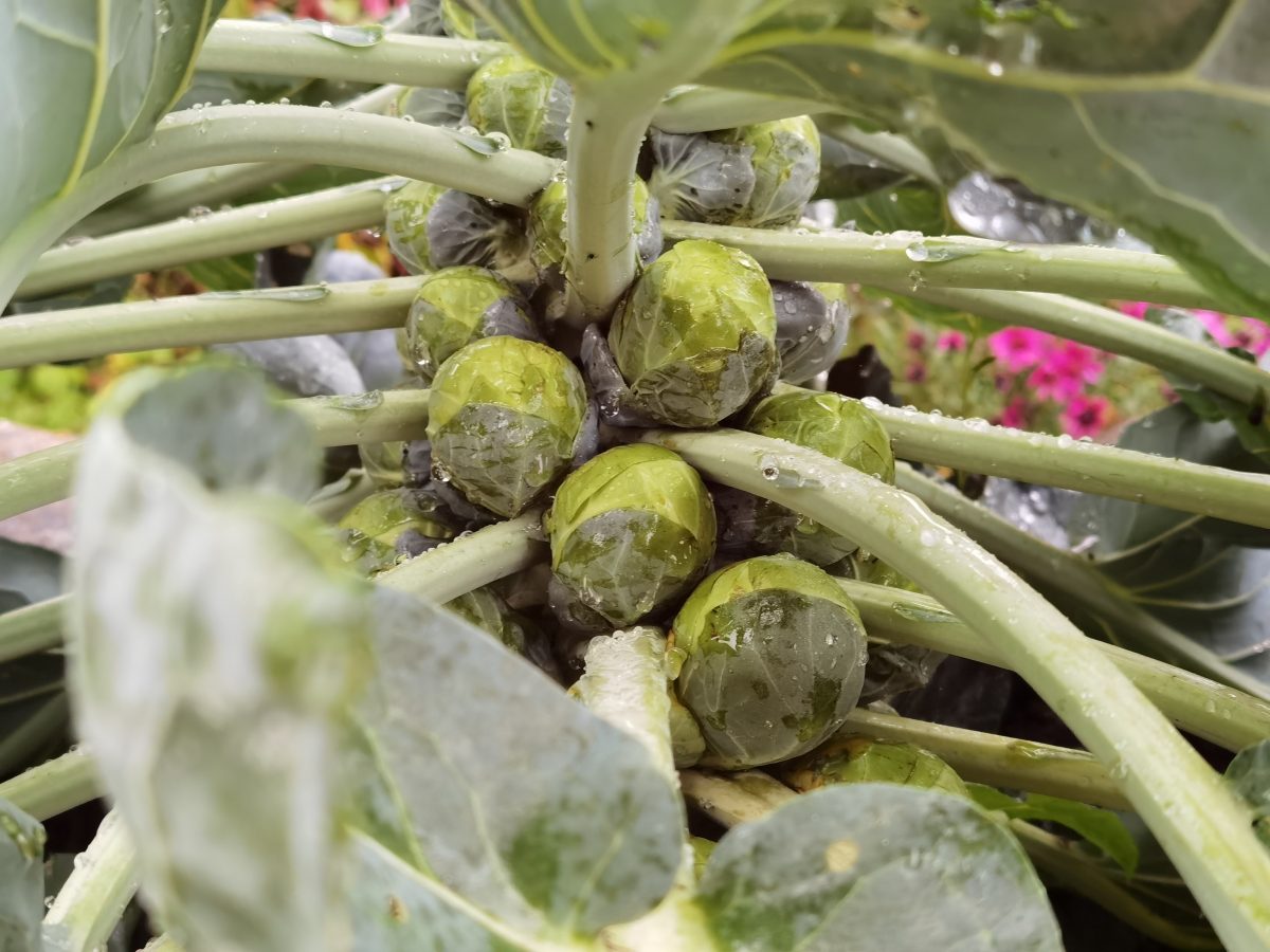 Ende Oktober gibt es in den Hochbeeten noch viel Mangold, etwas Pflücksalat und Rosenkohl. Die Kürbisse wurden schon in den Keller gelagert, da die ersten Nachtfröste bald zu erwarten sind. Leider breiten sich die Schnecken durch die feuchte Witterung immer mehr aus und die Raupen des Kohlweißlings lieben Rosenkohl und Weißkohl.