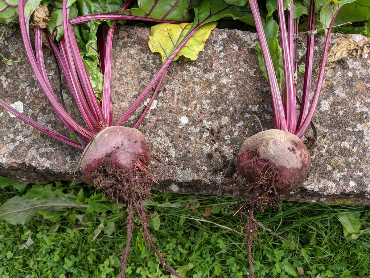 Rote Beete wurde zum ersten Mal im Garten angebaut. Wobei die Aussaat auch zeitlich versetzt war. Somit konnte immer wieder über einen längeren Zeitraum geerntet werden. Neben den roten Knollen gabe es auch einige gelbe Rüben.