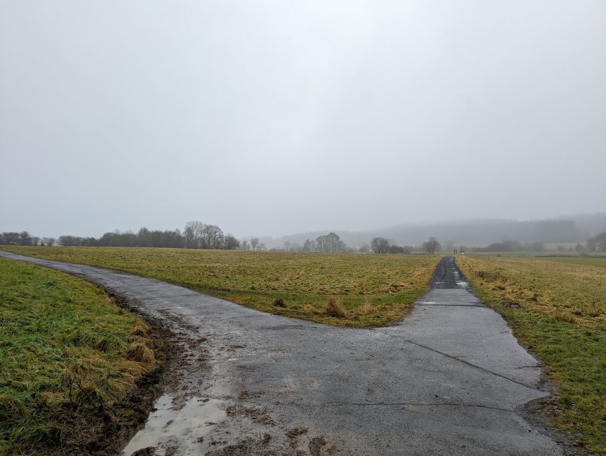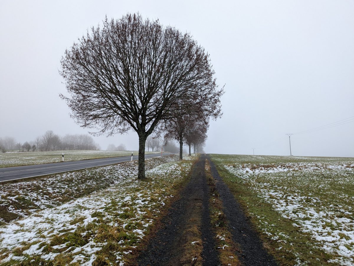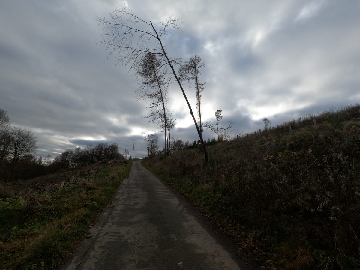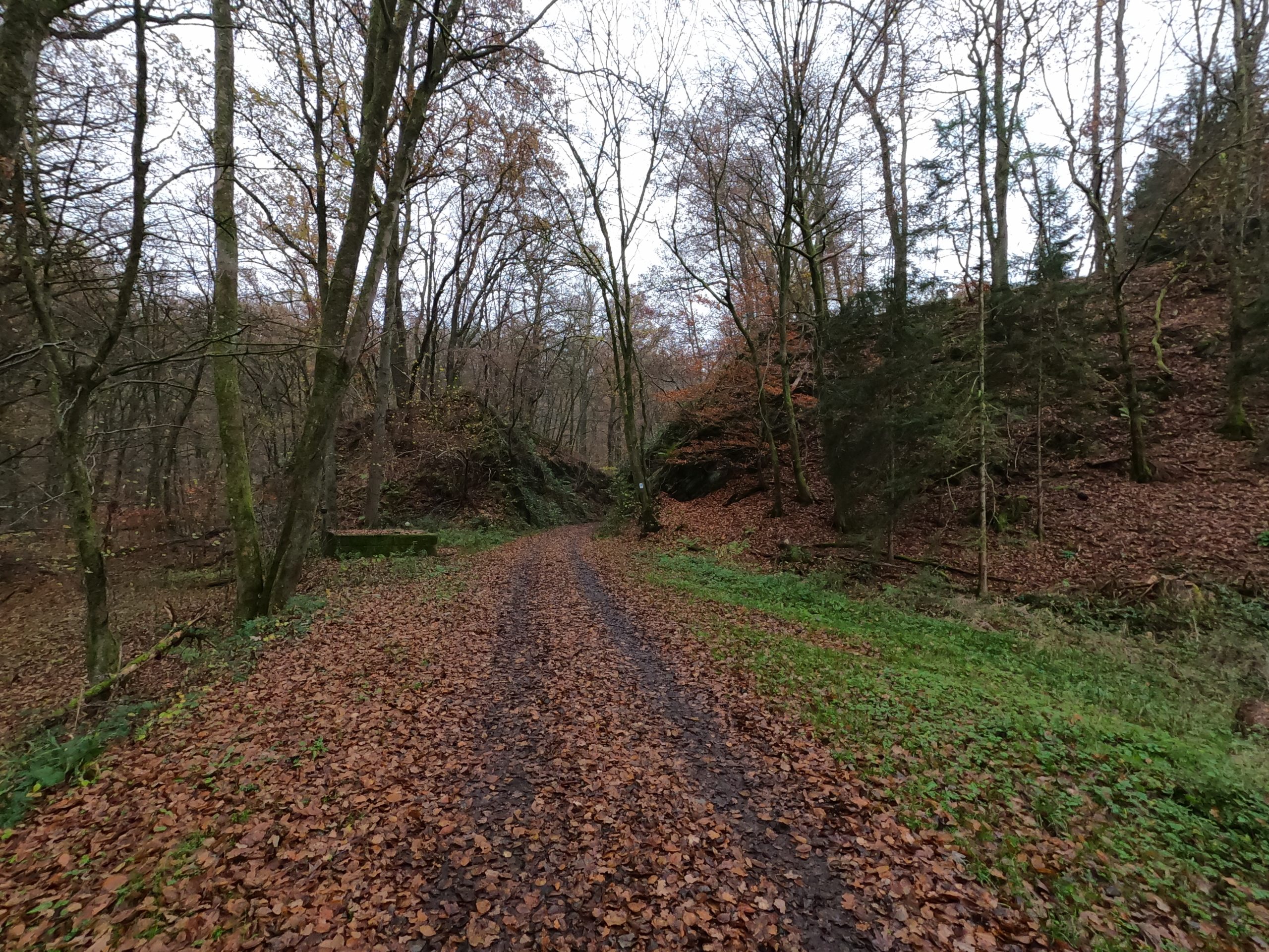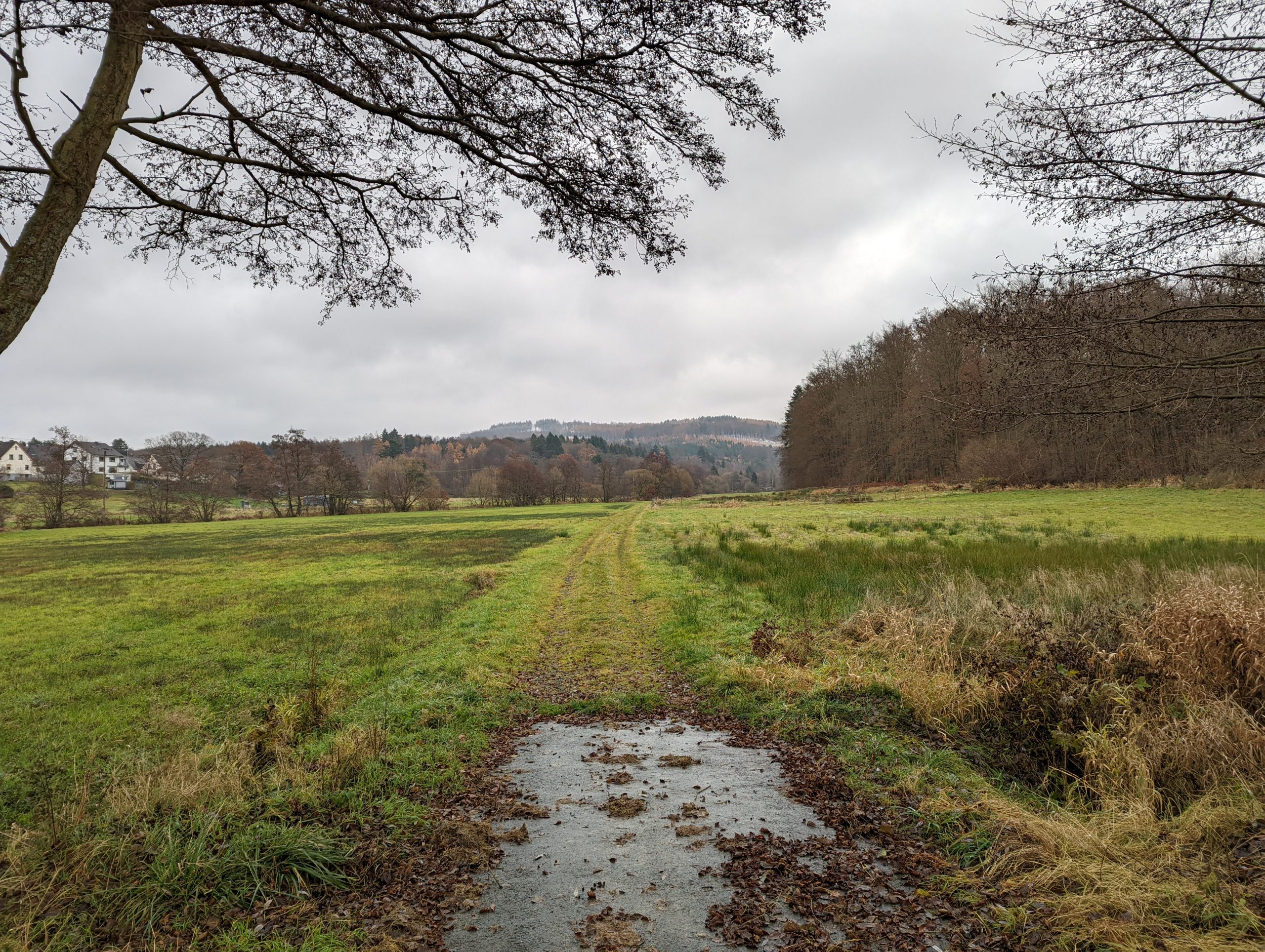 Mitte November ist es grau und nieselig, also genau richtig für den nächsten Besuch des Wiedtales. Die Strecke wird etwas länger geplant, ca. 15 Kilometer mit Rad und Fuß sollte funktionieren, die Laufstrecke fällt deutlich flacher aus.