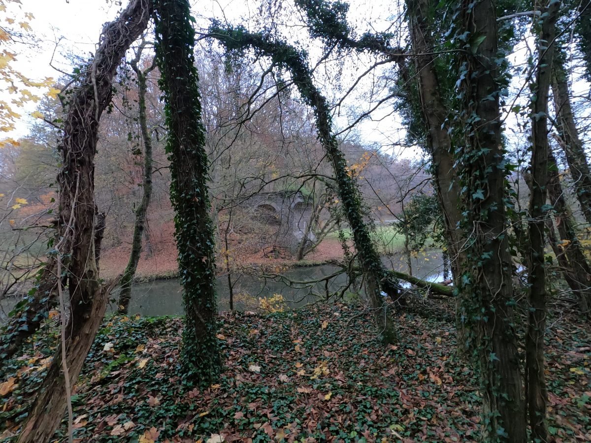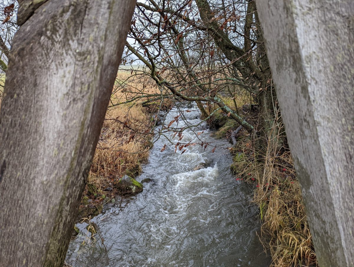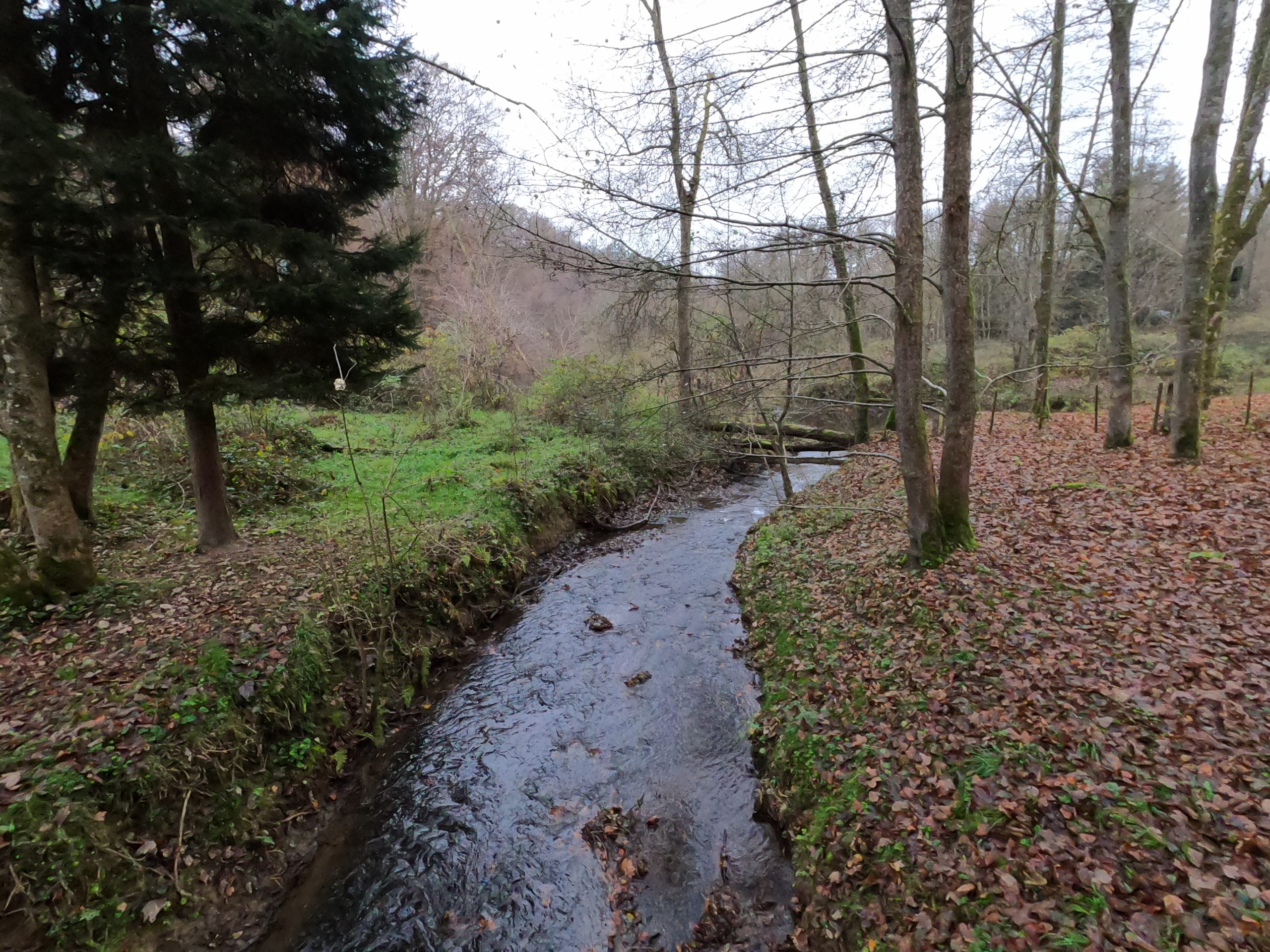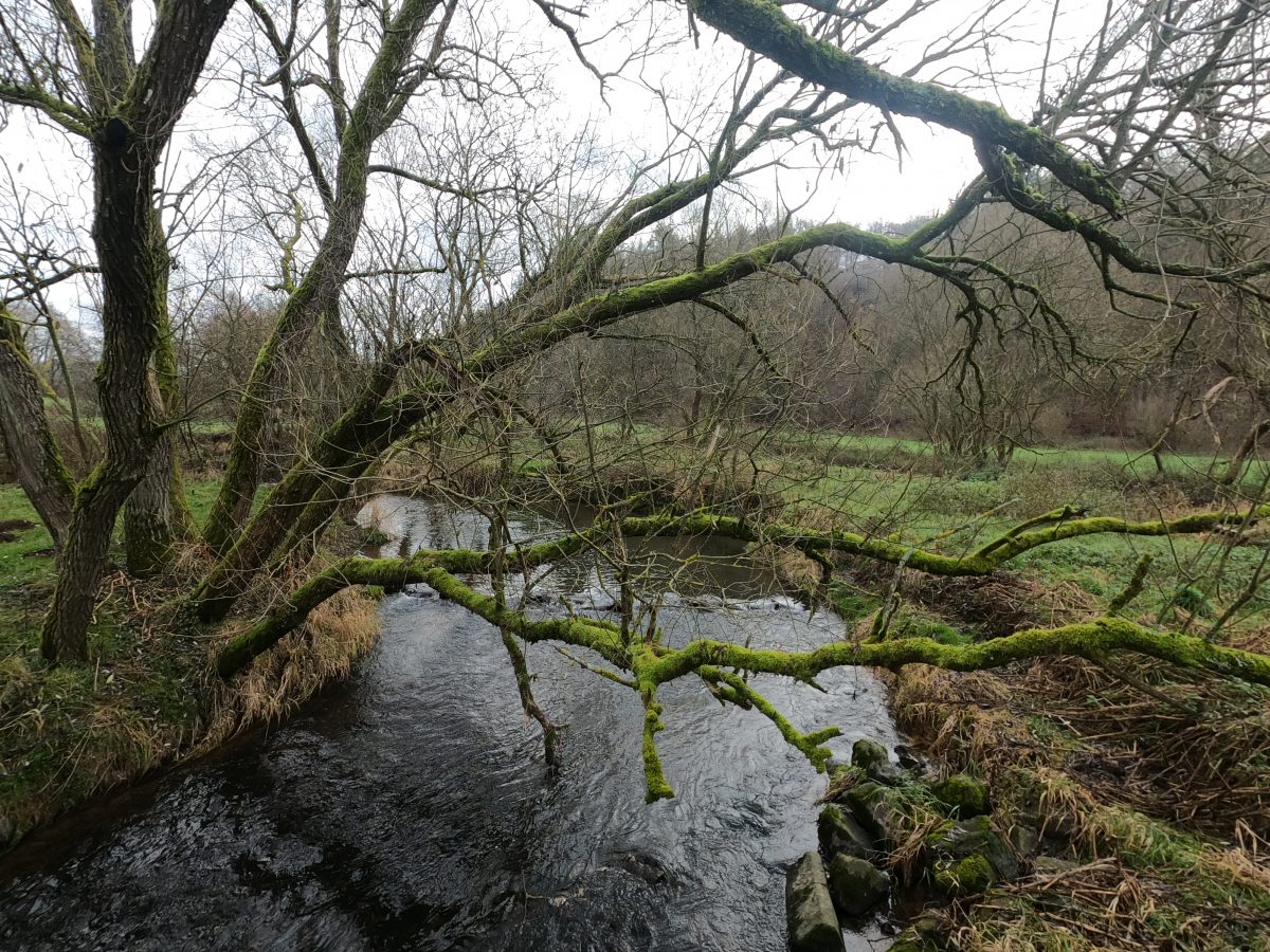 Ein kleines Stück an einem kleinen Bach. Es ist nasskaltes Novemberwetter an diesem Tag, der die Reihe der Wiederlebnistage abschließt. Die Stelle ist von vielen Rad-, Wander- und Lauftouren bekannt und für eine Minute tauchen die Bilder der Touren entlang der Wied wieder auf. Es sind wohl die Steigpassagen im unteren Drittel des Wiedlaufs im engen Tal und auf felsiger Höhe, der Blick bleibt im Tal gefangen. Die Welt ist die Wied.