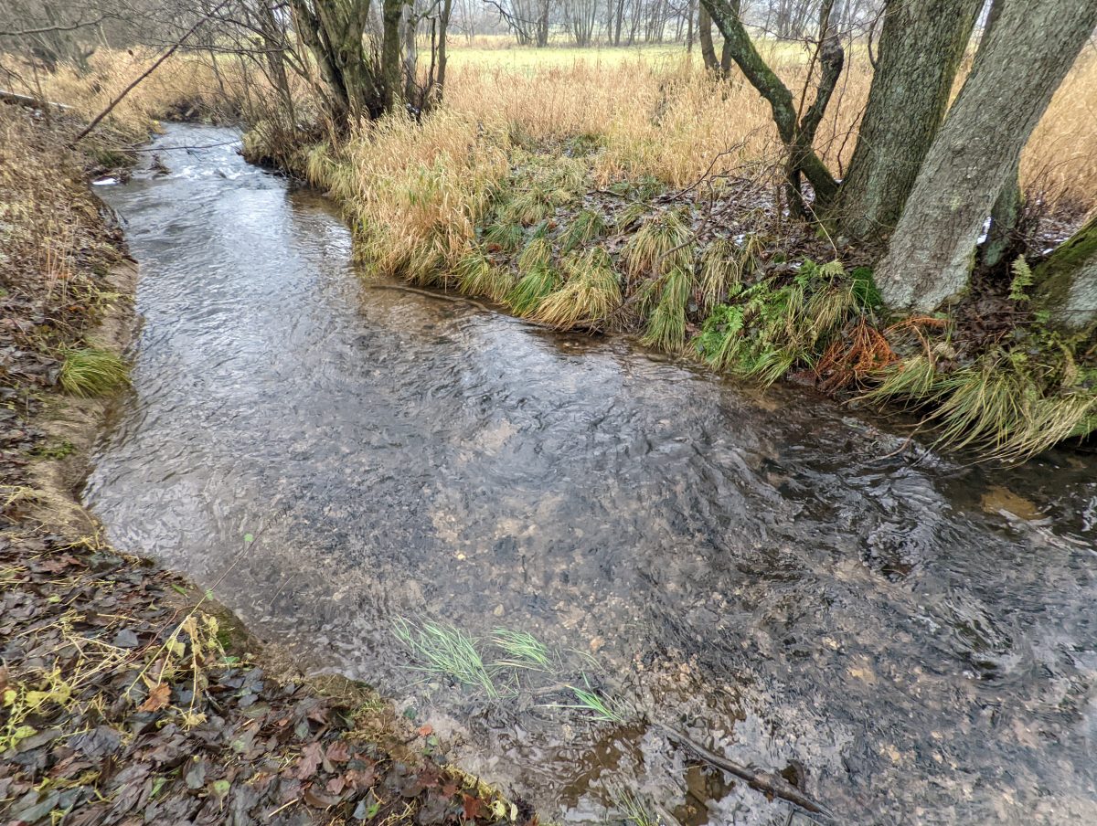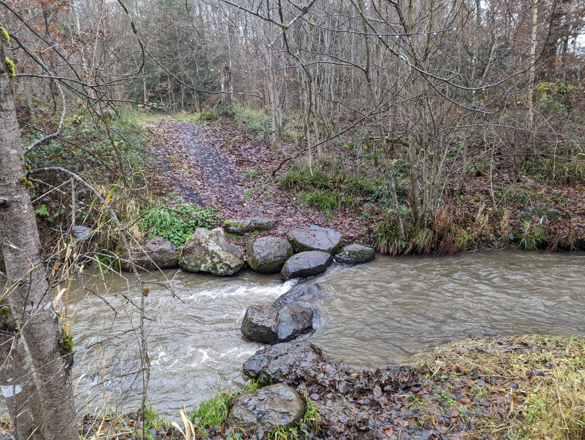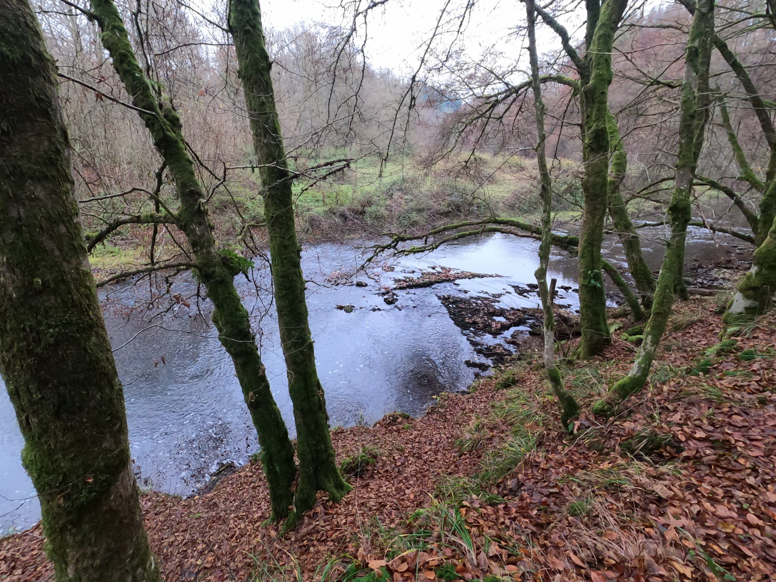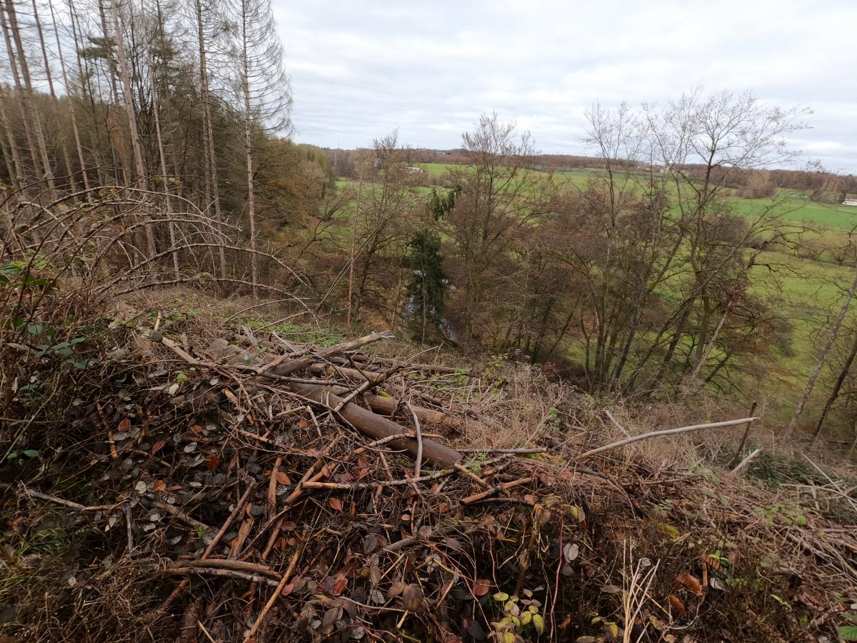 Ein kleines Stück an einem kleinen Bach. Es ist nasskaltes Novemberwetter an diesem Tag, der die Reihe der Wiederlebnistage abschließt. Die Stelle ist von vielen Rad-, Wander- und Lauftouren bekannt und für eine Minute tauchen die Bilder der Touren entlang der Wied wieder auf. Es sind wohl die Steigpassagen im unteren Drittel des Wiedlaufs im engen Tal und auf felsiger Höhe, der Blick bleibt im Tal gefangen. Die Welt ist die Wied.