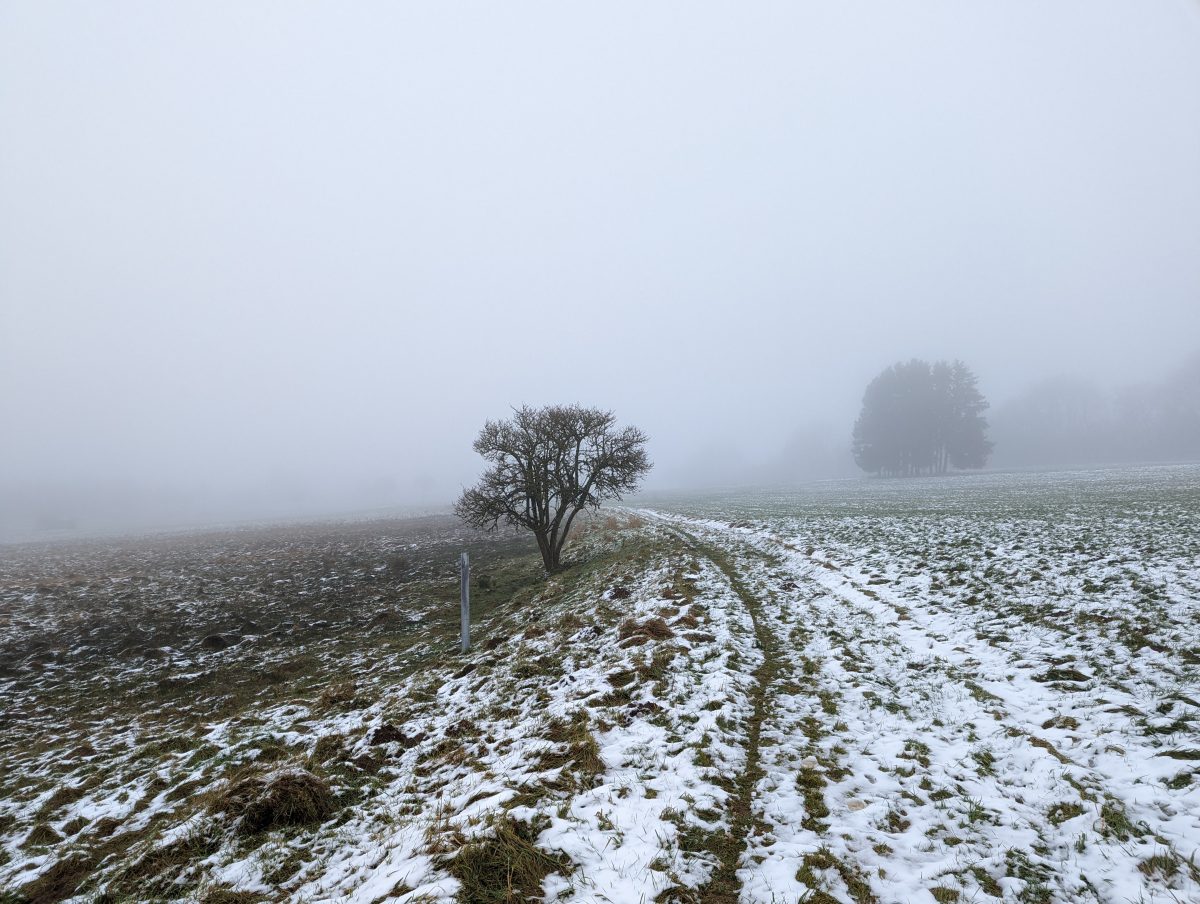 Noch mal ein paar Tage später geht es gesundheitlich nicht besser, aber außer eine morgendliche Hustenphase ist sonst nichts von einer Infektion zu bemerken. Laufen ohne schnaufen geht weiter nur bergab, bergauf würde ich schon von weitem gehört, wenn denn auf der Strecke andere Wanderer unterwegs wären. Ich bin aber wie die zwei vorherigen Tage bis auf ein paar Gassigängern allein unterwegs.