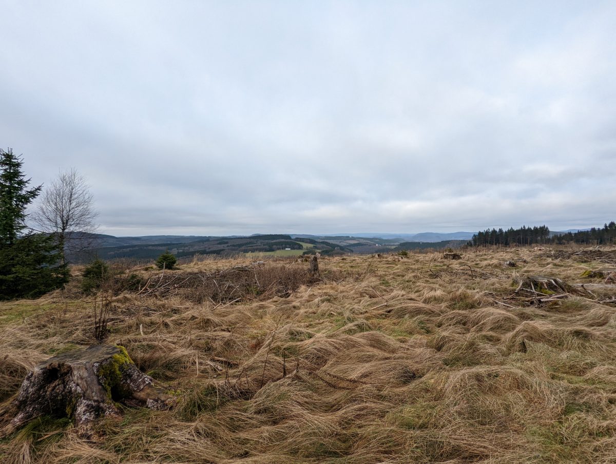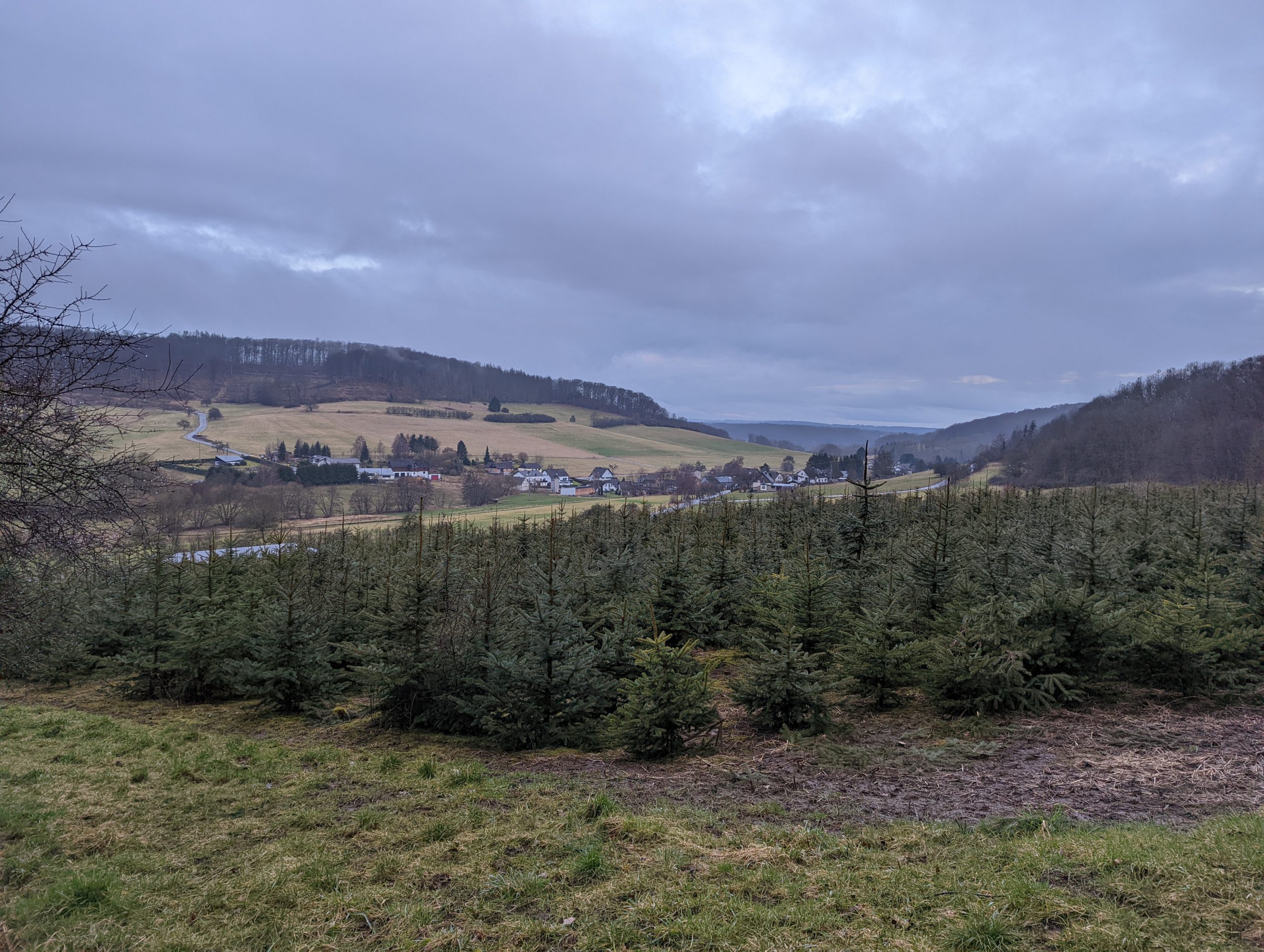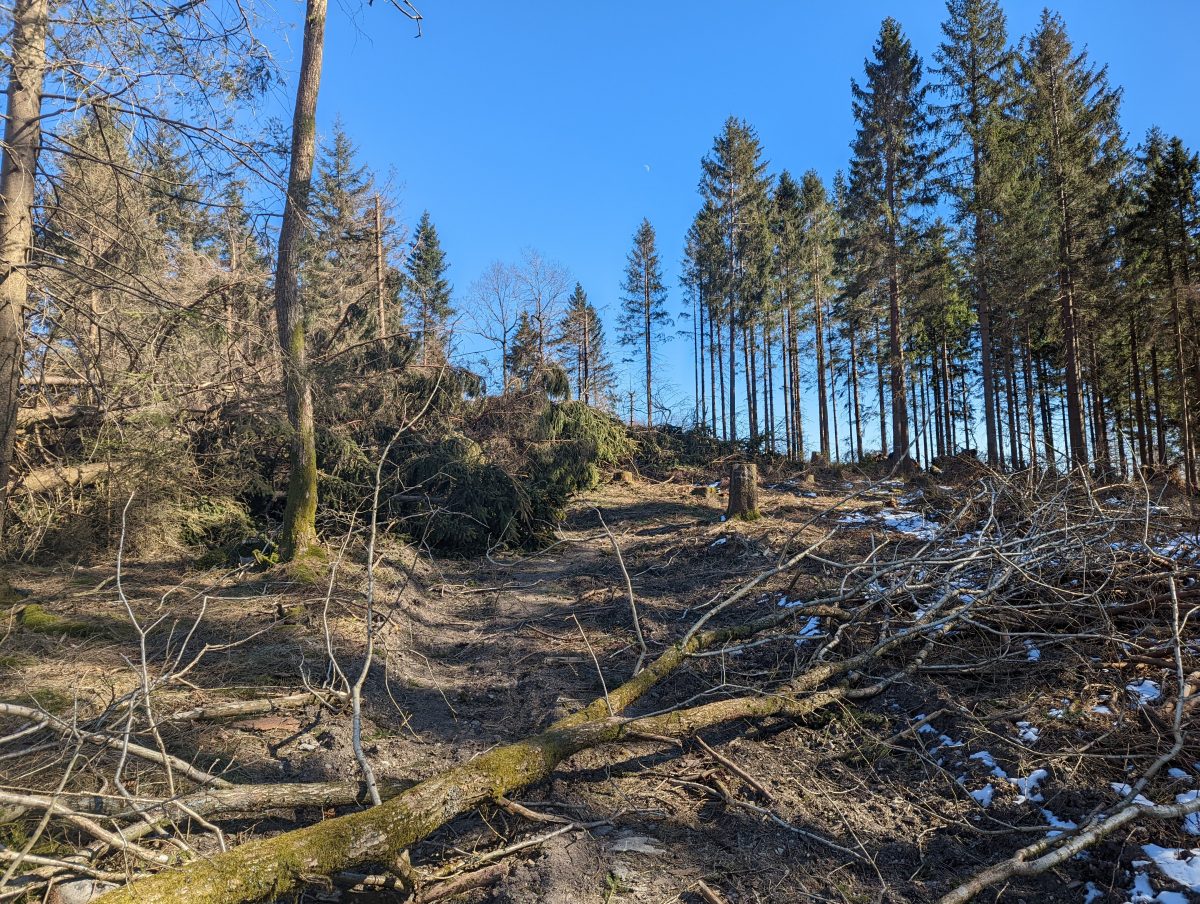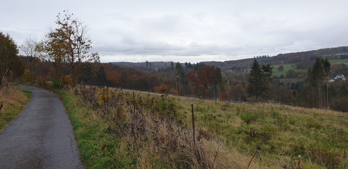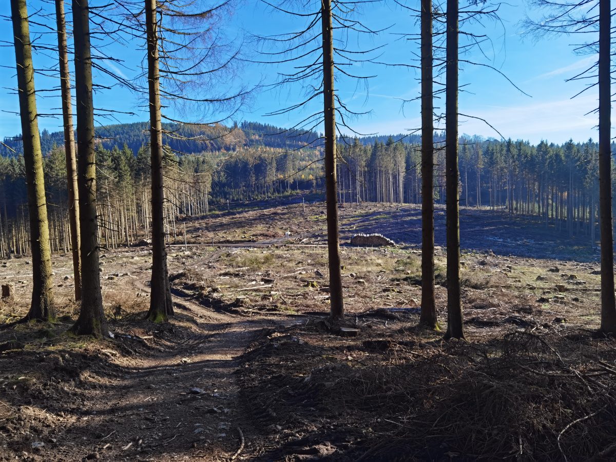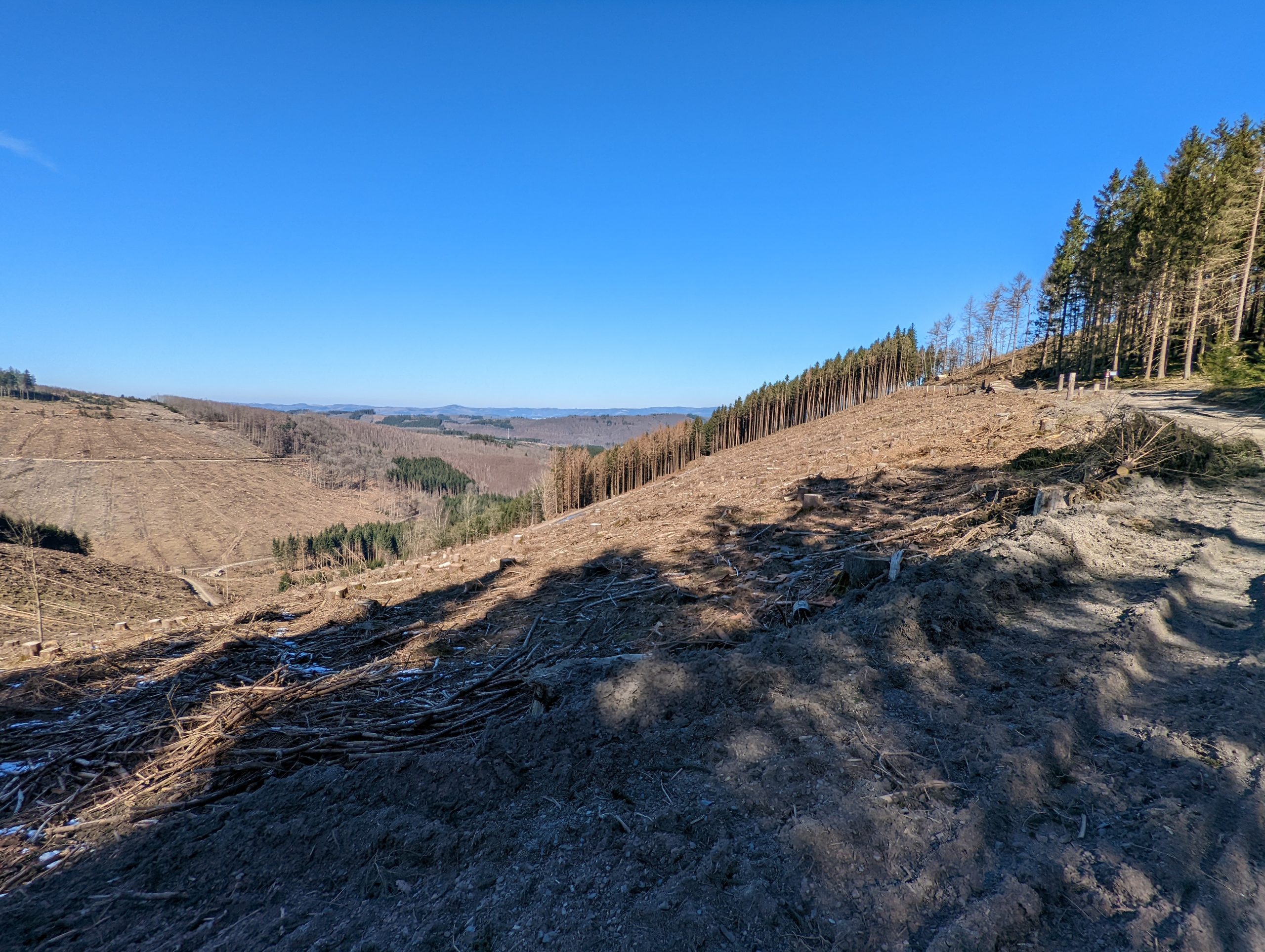 Diese Etappe schließt im Süden eigentlich an der 2. Etappe des Weges an. Wir sind auf dem Hinweg zu Biggesee und haben somit dieses Teilstück gewählt. Es ist der erste Tag im Jahr 2022 und wir wandern bei relativ warmen Wetter mit etwas Sonnenschein. Durch die riesigen Abholzungsflächen gibt es immer wieder weite Aussichten ins Land hinein.