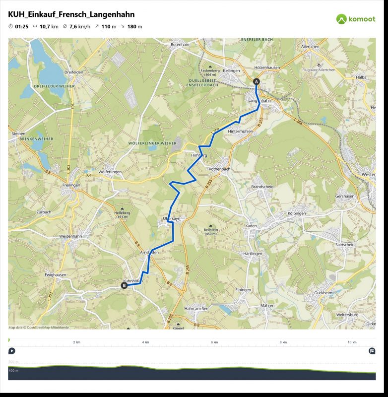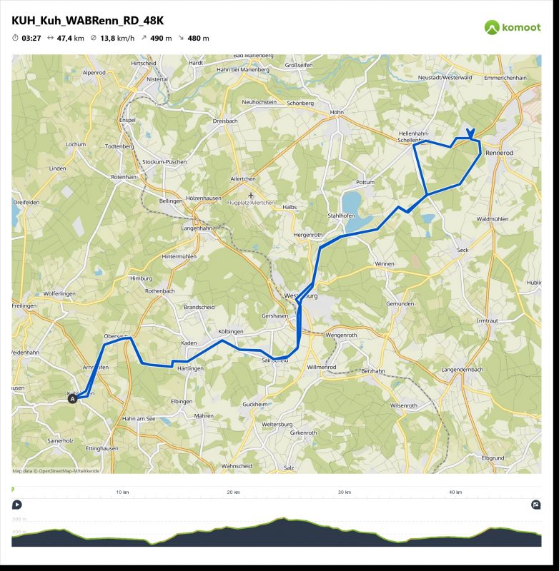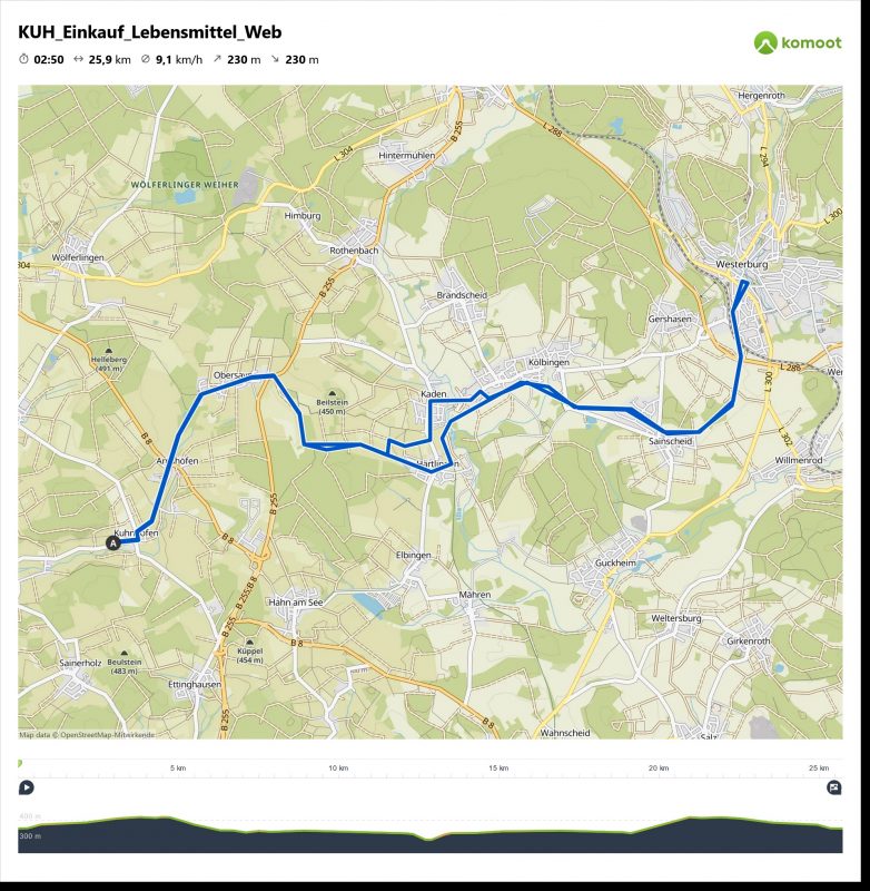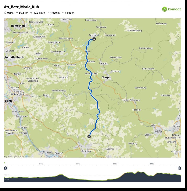 Die optimale Strecke basiert auf den bisherigen Erfahrungen und wird beim nächsten Mal ausprobiert (Optimierung im Bereich Bad Marienberg / Langenhahn).
