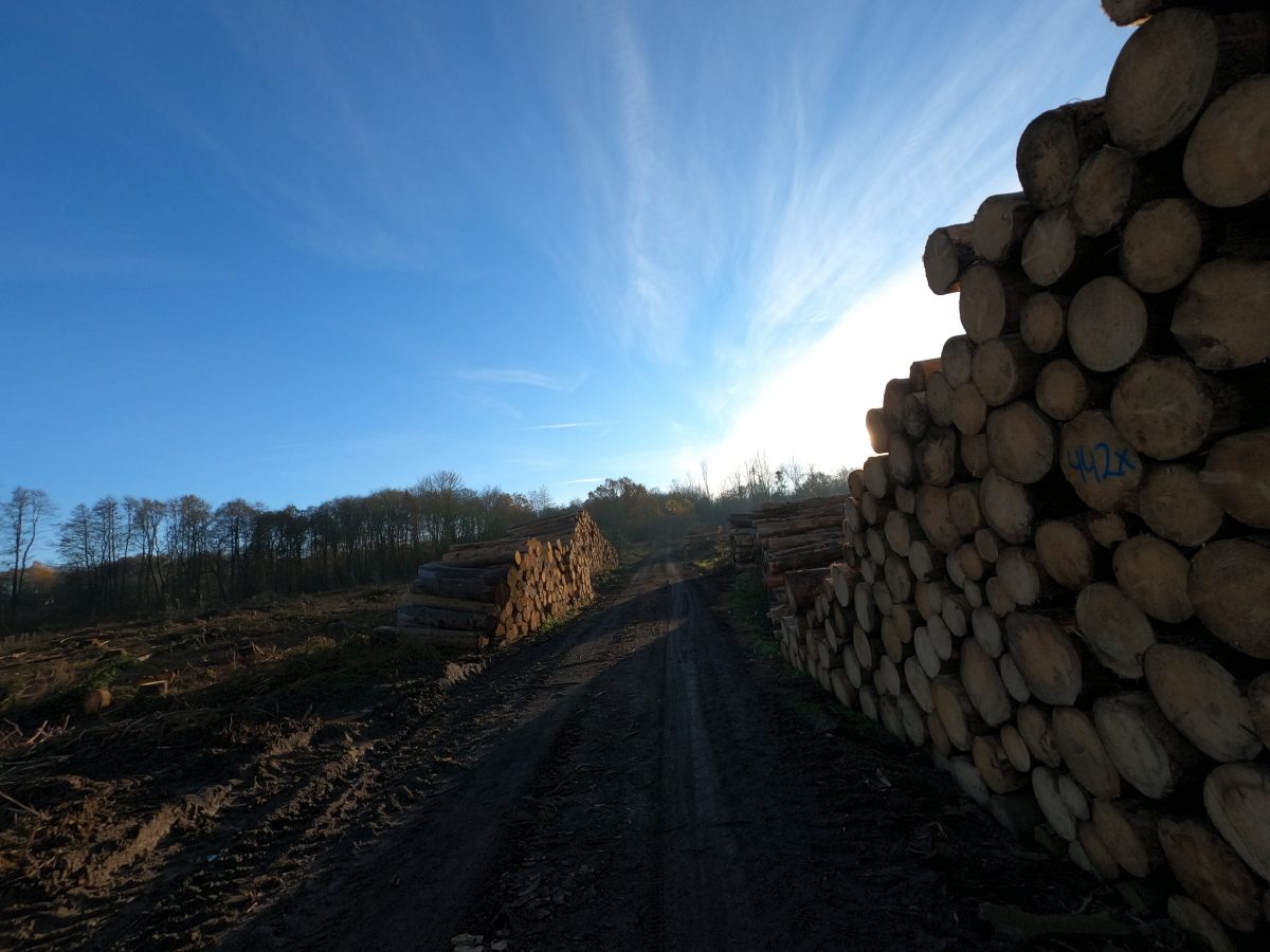 Wir haben nun November und es hat in der Nacht zum ersten Mal gefroren. Gestartet wird vom Wanderparkplatz Steinerndes Kreuz. Schon zu Beginn der Wanderung müssen wir unsere geplante Wegstrecke etwas umplanen, da die Wege durch die Holzabfuhr und auch noch durch Baumfällarbeiten gesperrt sind. Dennoch schaffen wir es, bis zum Potsdamer-Platz zu kommen und so an die vorhergehende Tour anzuschließen.