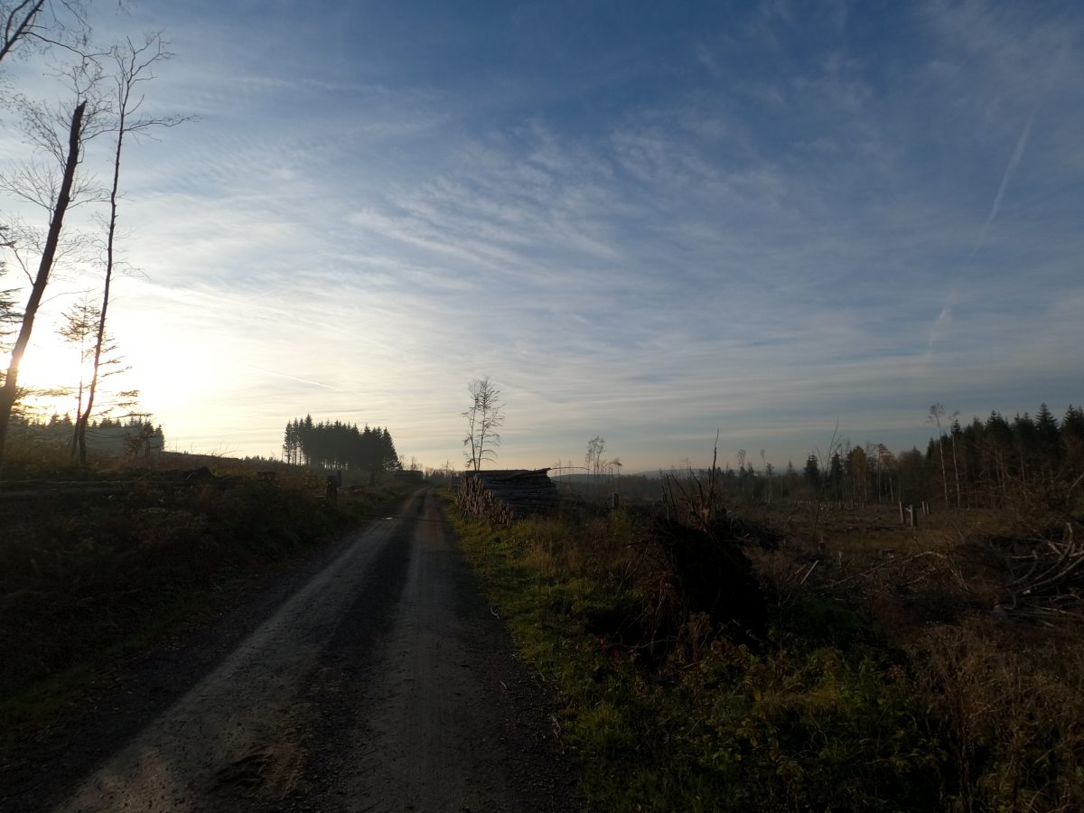 Nachdenm wir von August bis Oktober mit unserem kleinen Eriba Puck viel unterwegs waren im Hunsrück, Soonwald und an der Bergstraße, haben wir den Wohnwagen nun wieder zum Biggesee zurück gebracht. Jetzt sollen weitere Hundem-Paad-Runden folgen. Startpunkt war am Wanderparkplatz Oberdorfer Höhe. Aufgrund der großen Abholzungsflächen war der Weg zum Teil kaum begehbar. Trotzdem gelang es uns wieder zum zum Dreiherrnstein zu kommen.