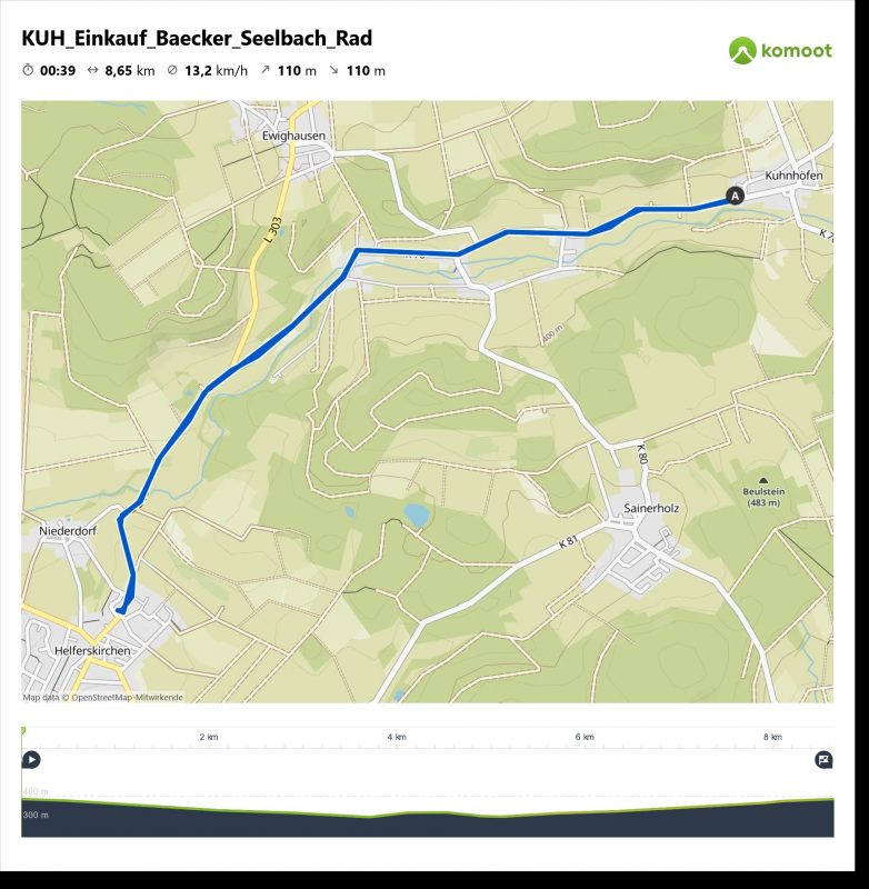 Zum Einkauf von Lebensmitteln ist der Weg nach Westerburg mit dem Rad ohne großen Stress mit dem KFZ Verkehr zu befahren. Der Weg zum Ostbäcker wird dazu über den Radweg auf der alten Bahntrasse zwischen Wallmerod und Westerburg von Kaden aus bis Westerburg verlängert. Nur Eis auf dem Bahnstreckenradweg, der leider nicht geräumt wird, verhindert diese Wegnutzung.