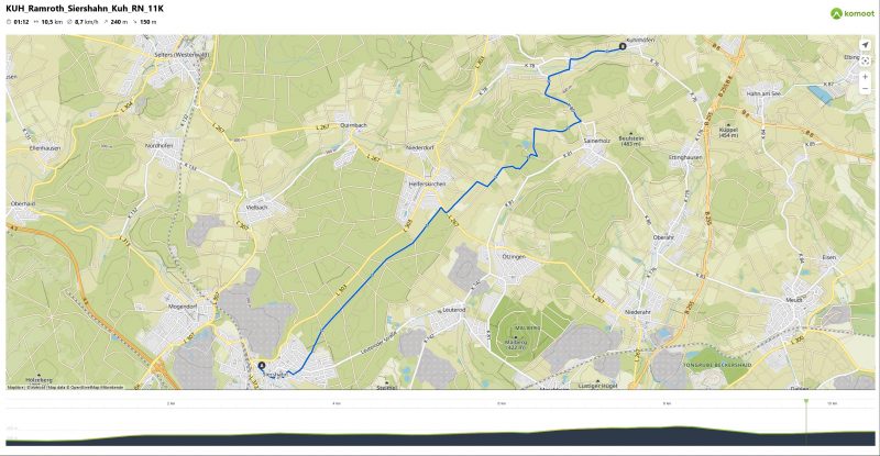 Die Strecke ist gerade im Winterhalbjahr gut zu laufen. Fein geschotterte oder geteerte landwirtschaftliche Wege ohne Autoverkehr und mit ordentlicher, aber nicht zu heftiger Steigung. Allerdings fast 20 Kilometer weit für Hin- und Rückweg. Das dauert bei aktuellem Konditionsstand (Ende 2023) 2,5 Stunden und erfordert Einsatz an der oberen Leistungsgrenze. Aber andererseits ein Super HM-Trainingslauf.