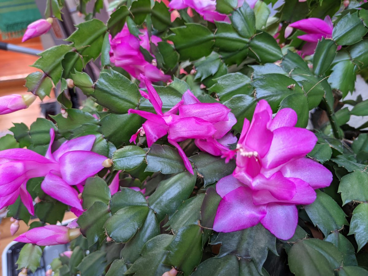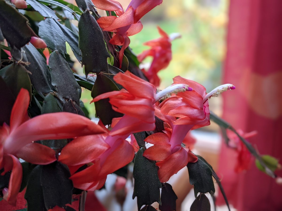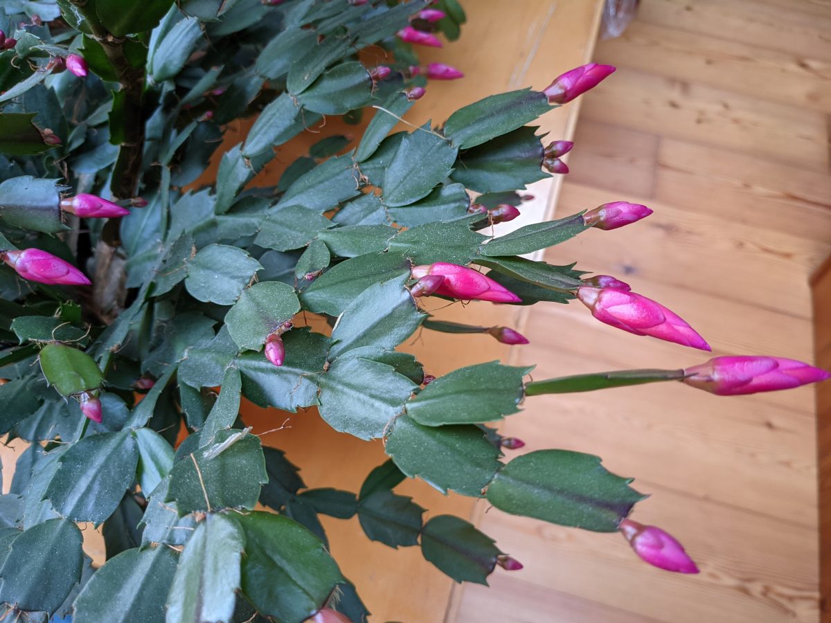 Es gibt im November immer eine Zimmerpflanze, die Kunigunde sehr erfreut. Kunigunde hat im November Geburtstag und von Ende Oktober bis Mitte Dezember blühen zuverlässig die Weihnachtskakteen. Davon hat Kunigunde ganz viele Pflanzen in insgesamt 5 verschiedenen Farben.