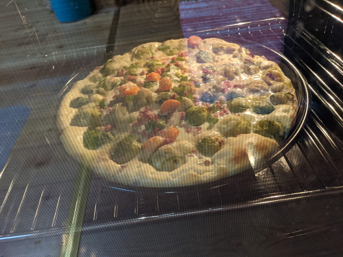 Eigentlich war der Rosenkohl bei Kunigunde und Kunibert bis jetzt nicht sehr beliebt. Durch die eigene Ernte gibt es jetzt aber viele neue Rosenkohlgerichte und man muss sagen, sie schmecken sehr gut. So z.B. auch die Rosenkohltarte, die auch mit Mangold belegt werden kann. Sehr köstlich!