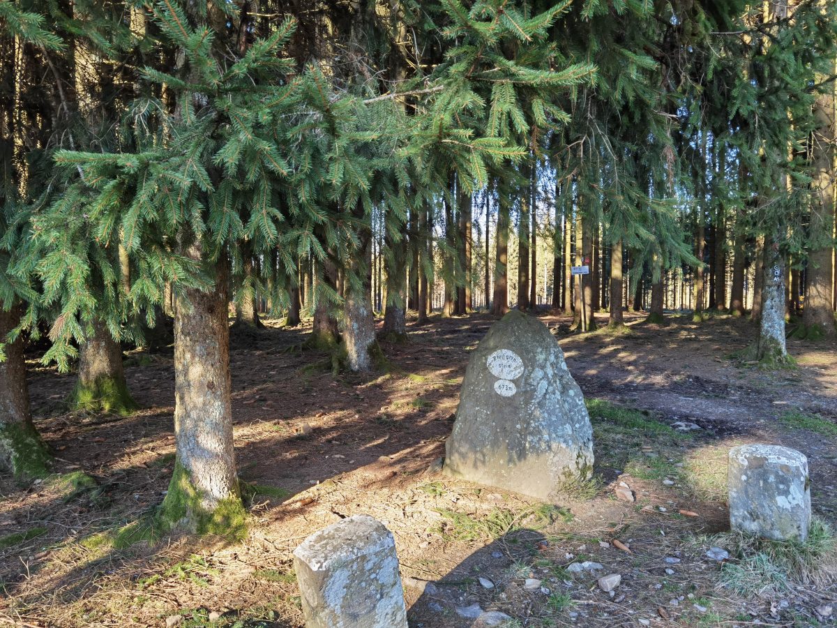 Der Start dieser Runde ist wieder am Wanderparkplatz “Steinernes Kreuz”. Wir haben Dezember und es bleibt den ganzen Tag neblig und diesig. Dazu sind die Wanderwege von den Baumfällarbeiten und dem Holztransport teilweise völlig zerfahren und verschlammt. Somit sind Kunibert und Kunigunde am Ende dieser Wanderung sehr verdreckt. Trotzdem eine schöne und aussichtsreiche Runde, wenn auch aufgrund des Nebels die Fernsicht sehr eingeschränkt war.