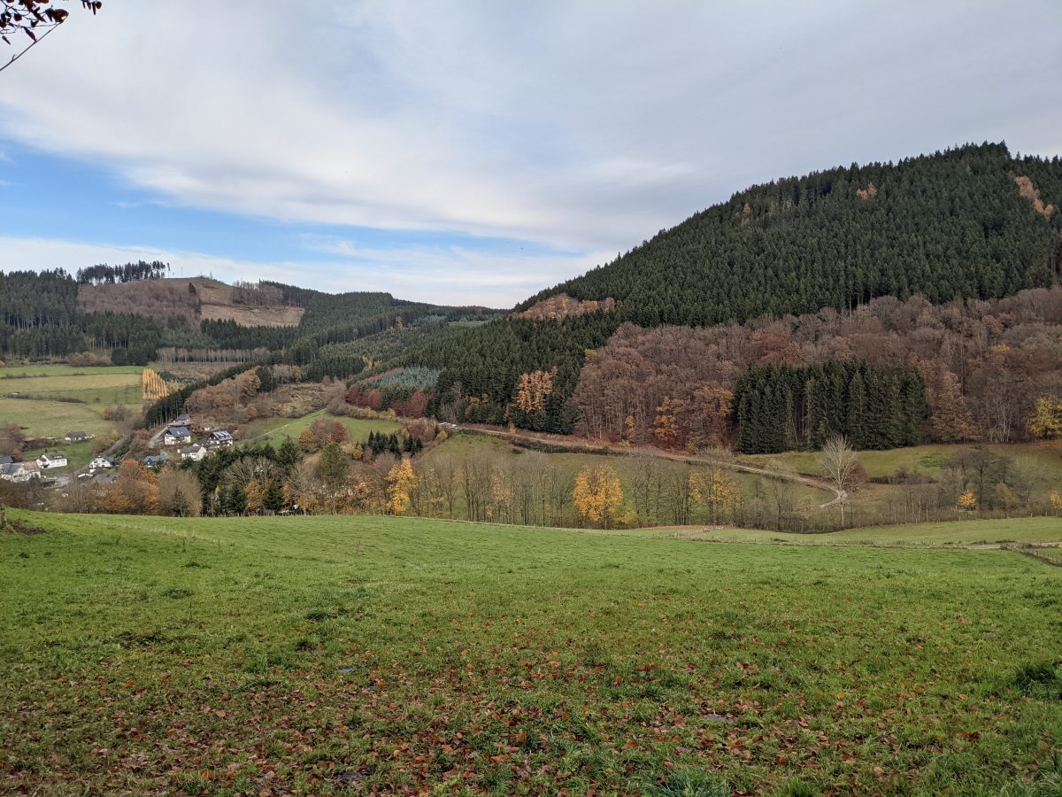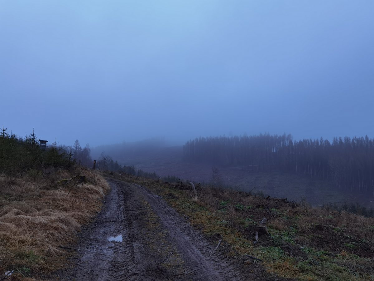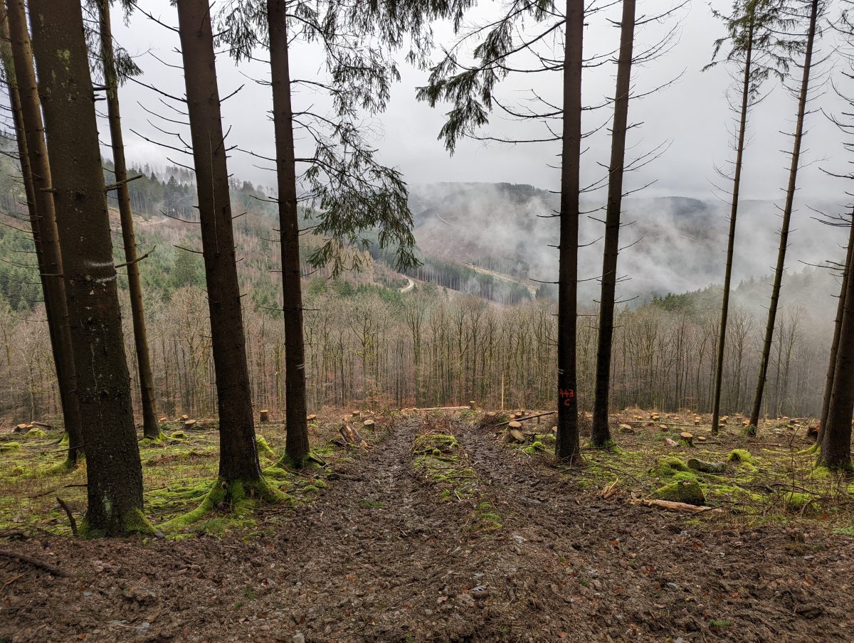 Dieses Mal starten wir vom Wanderparkplatz “Hohe Pracht”. Es geht durch riesige Abholzungsgebiete, die durch den Borkenkäferbefall entstanden sind. Die Wege sind dadurch sehr verschlammt. Gegen Ende der Tour steigt auch der Nebel auf, dennoch war es eine Tour mit schönen Aussichten auf Altenhundem und die Seitentäler. Außerdem kamen wir zum Fluss Hundem, der dem Rundweg seinen Namen gegeben hat.