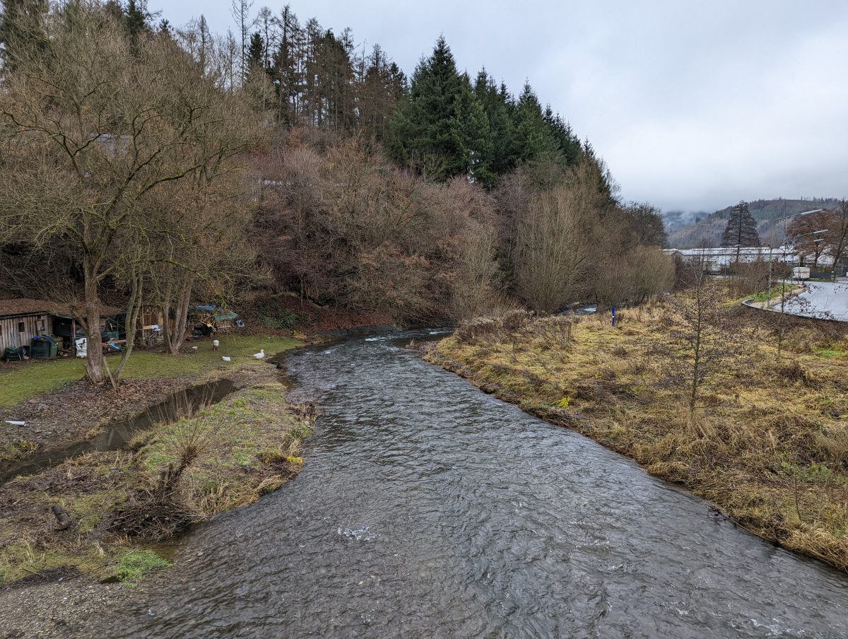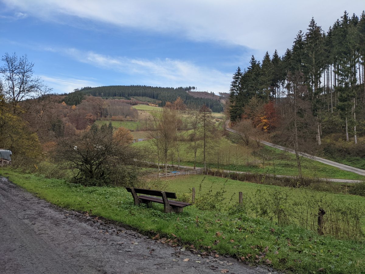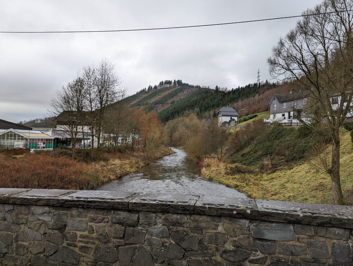 Dieses Mal starten wir vom Wanderparkplatz “Hohe Pracht”. Es geht durch riesige Abholzungsgebiete, die durch den Borkenkäferbefall entstanden sind. Die Wege sind dadurch sehr verschlammt. Gegen Ende der Tour steigt auch der Nebel auf, dennoch war es eine Tour mit schönen Aussichten auf Altenhundem und die Seitentäler. Außerdem kamen wir zum Fluss Hundem, der dem Rundweg seinen Namen gegeben hat.