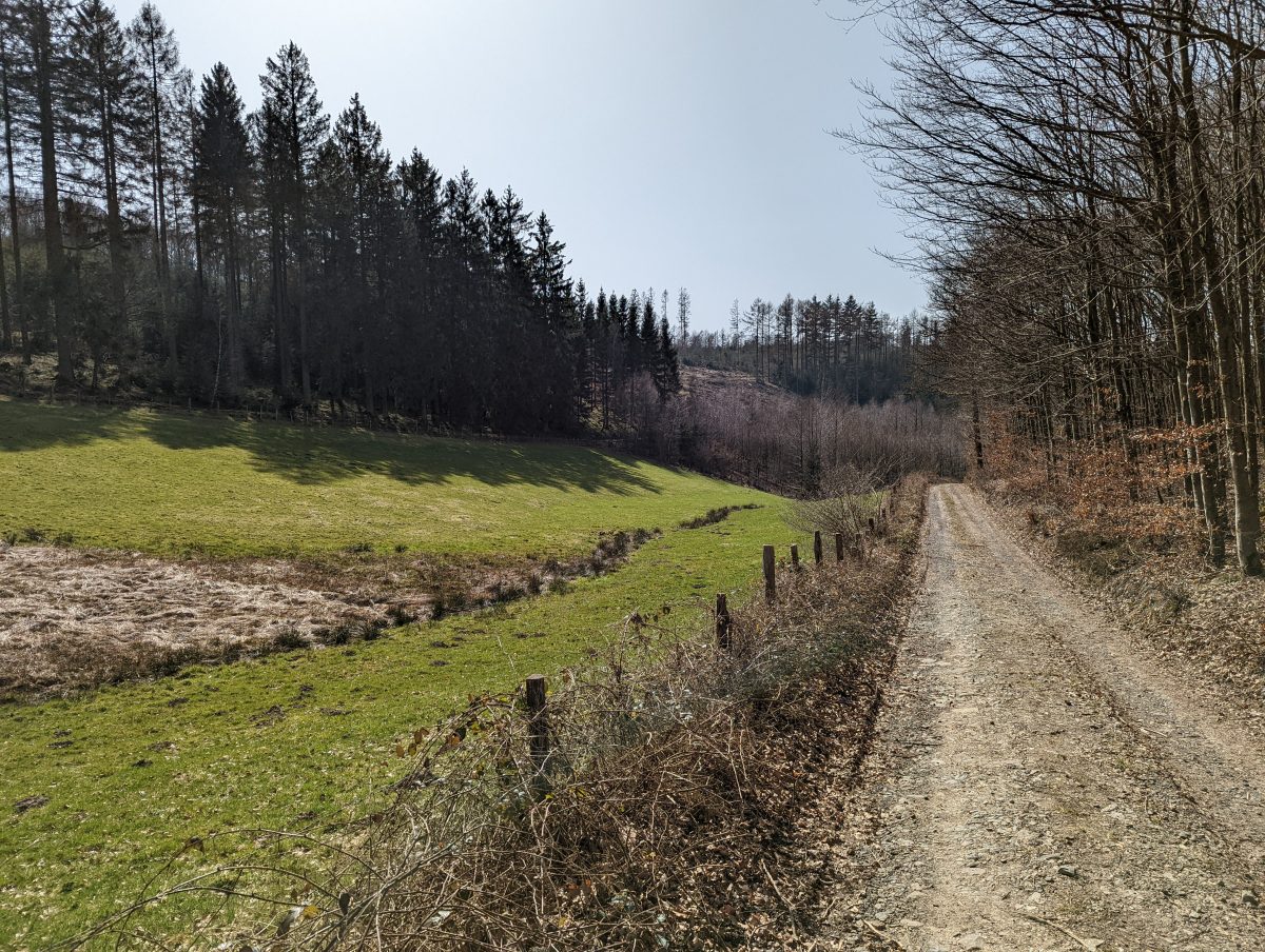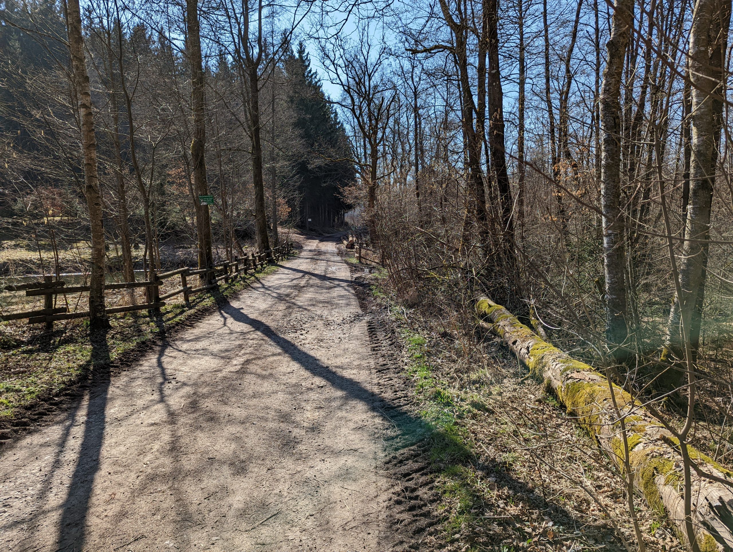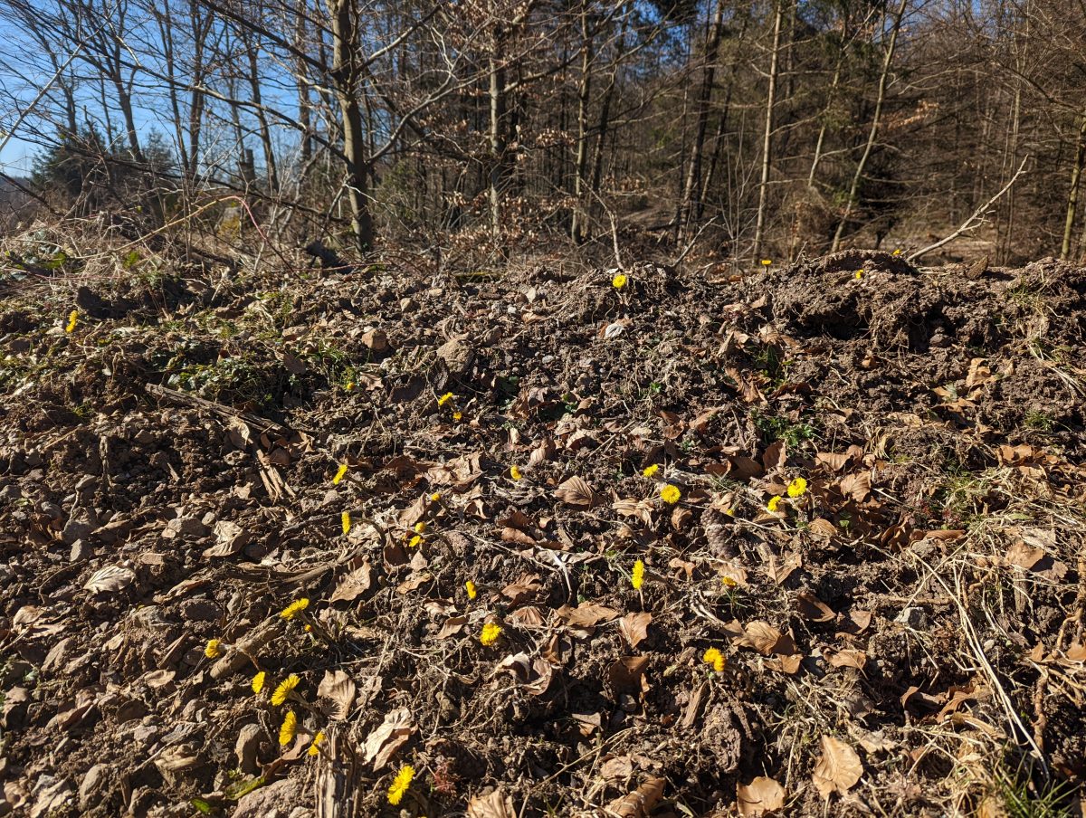 Diese Etappe geht vom Wanderparkplatz am Skilift Fahlenscheid aus und verläuft über den Parkplatz Einsiedelei und wieder zurück. Aufgrund von Waldarbeiten mussten wir unterwegs den Weg noch etwas umlegen, da der eigentlich Weg gesperrt war. Allerdings hat es lange nicht geregnet und somit sind die Wege gut begehbar. Mitte März blühen nun die ersten Huflattichblüten.