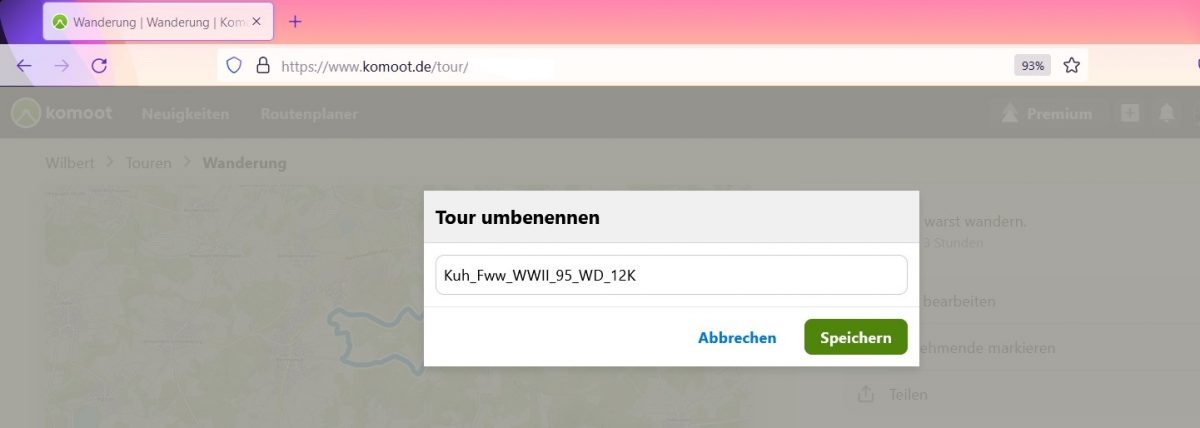 3. Die Tour wird entsprechend dem der Tour zugrunde liegenden Tourenplanungstrack umbenannt.