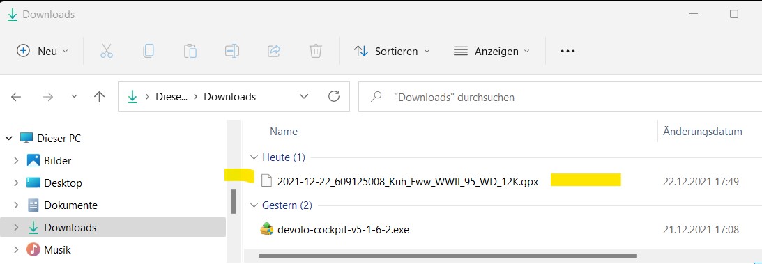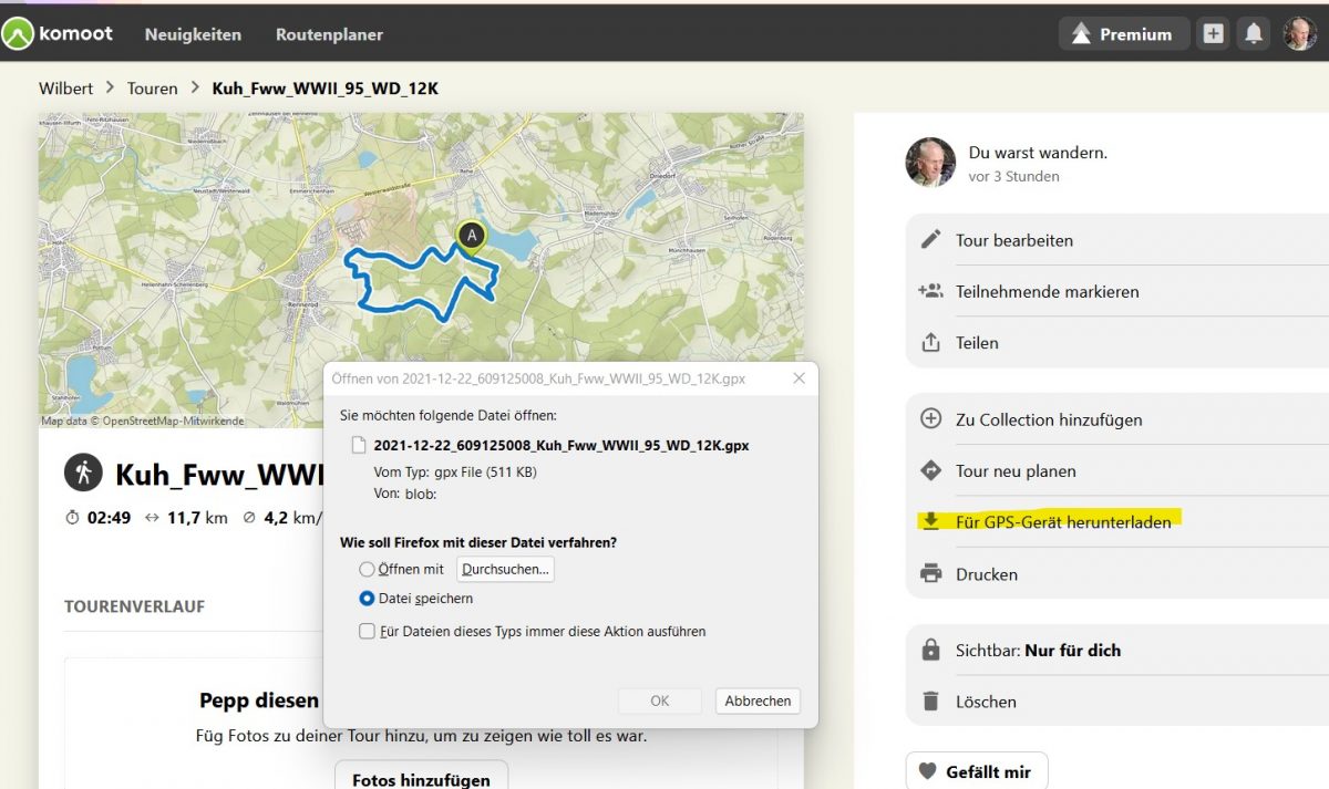 5. Die gpx-Datei landet im download-Ordner des lokalen PC.