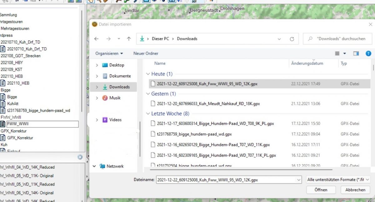 7. Der Track der neuen Tour wird in den ausgewählten Ordner durch Aufruf der Importfunktion…