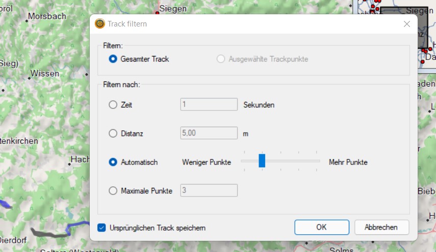 11. Nach der Reduktion kann der Track noch nachbearbeitet werden. Über Löschen oder Verschieben einzelner Punkte können falsch eingeschlagene Wege korrigiert werden.