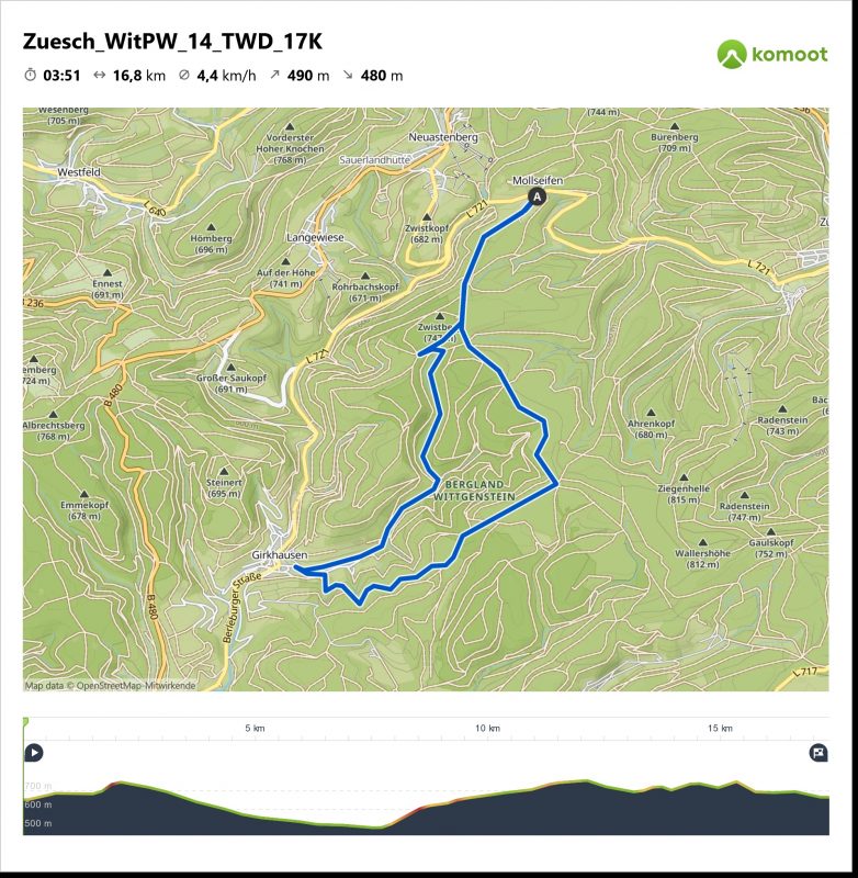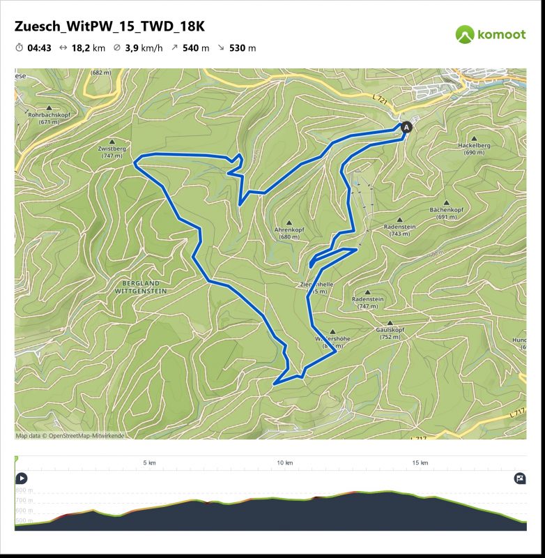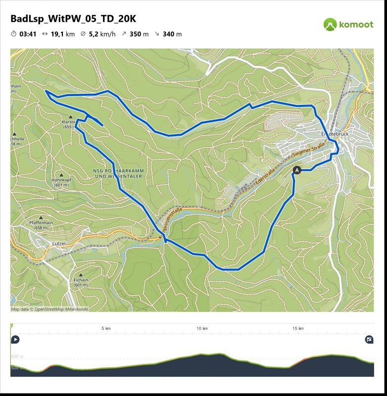 Ab dem dritten Bäckertag wird eine Rund südlich von Bad Laasphe gelaufen, die hat weniger Höhenmeter und umkreist den Schafsberg.