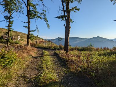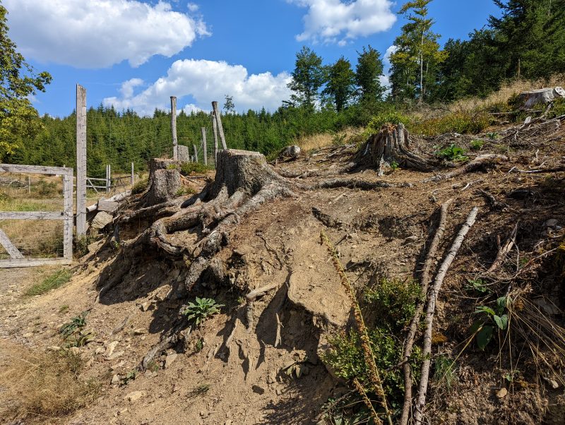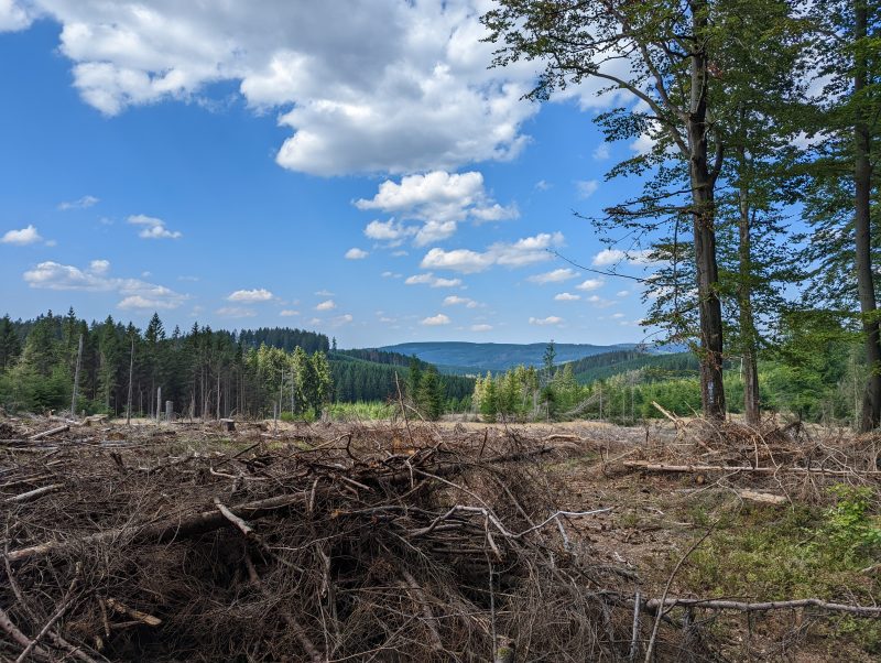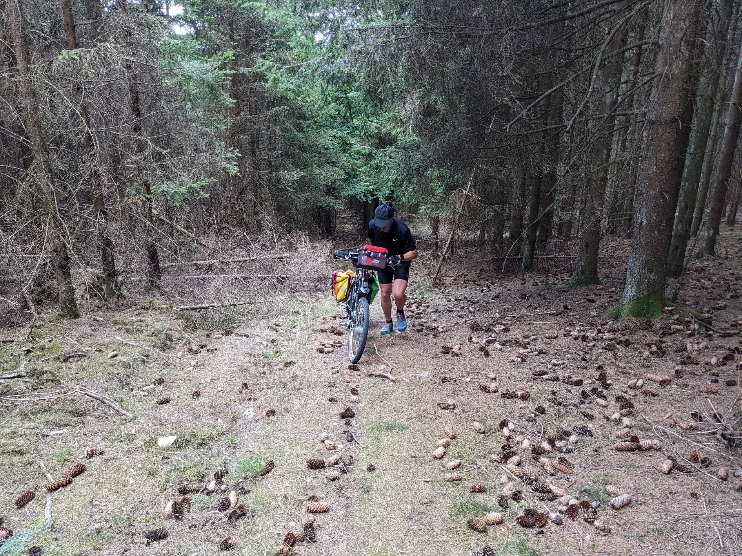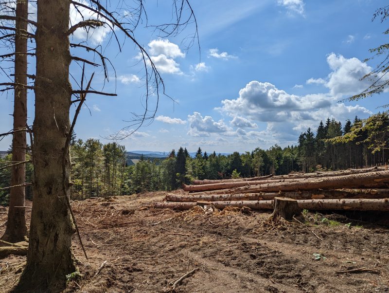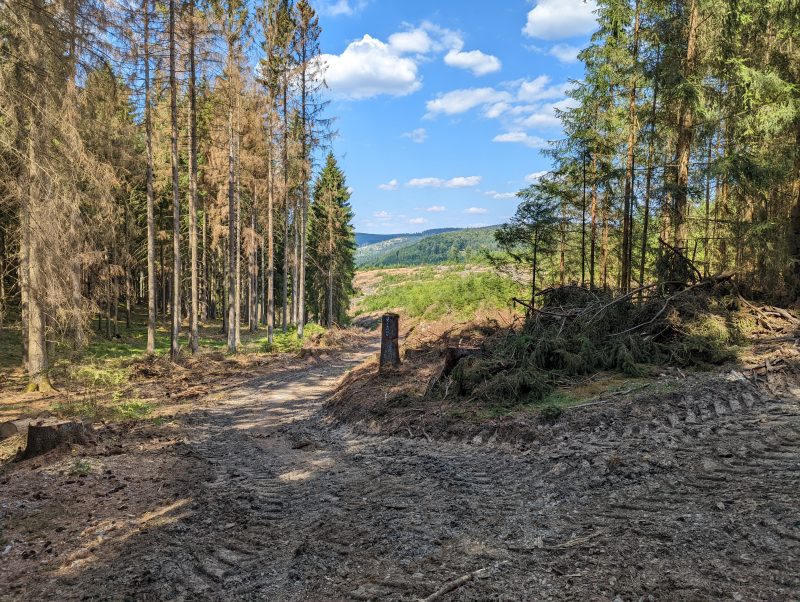 Bei herrlichem Frühwetter ging es teilweise steil nur gehend bergauf. Der Rückweg war wegen ein paar umgestürzter Bäume gesperrt, ich durfte gerade noch vor den Forstarbeitern passieren.