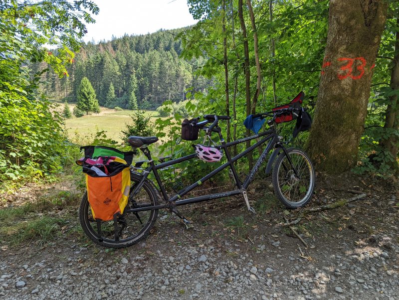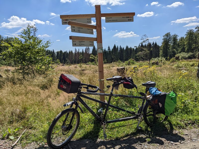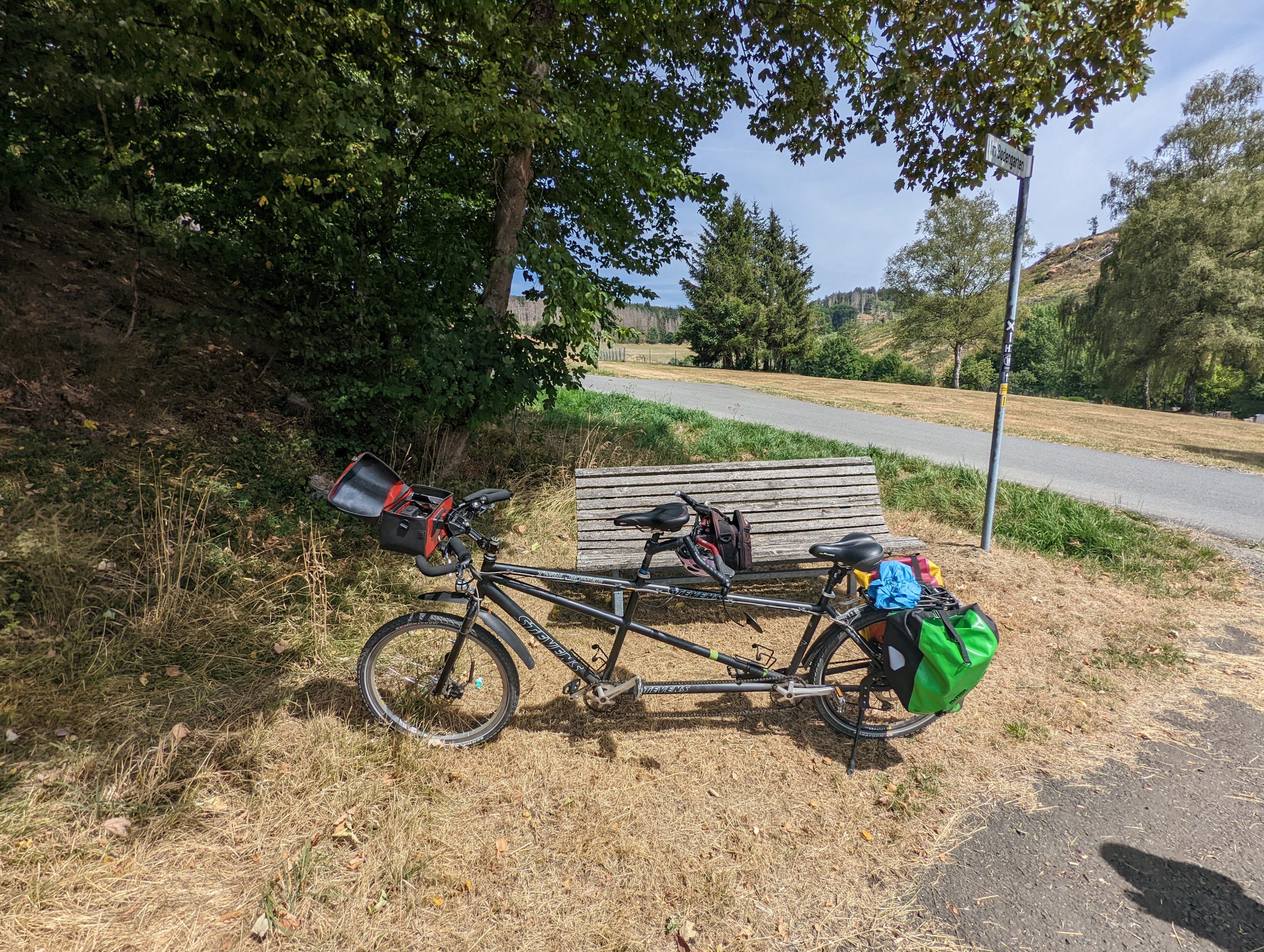 Auch im Urlaub in Bad Laasphe haben wir wieder unser Tandem mitgenommen. Neben den Etappen auf dem Wittgensteiner Panoramaweg machen wir auch Touren in der Umgebung des Camoingplatzes. Für die ersten Urlaubstage wurde sehr warmes Wetter vorhergesagt und dann sind Tandem-Touren immer angenehmer als Wanderungen. Somit starten wir am 2. Urlaubstag schon von Bad Laasphe aus.