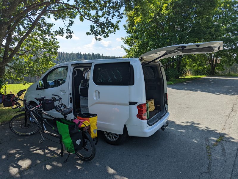 Der Bäckerlauf am Morgen könnte ziemlich kurz ausfallen. In der Ortsmitte gibt es mehrere Bäckereien und vom Campingplatz bis dahin sind es nur 800 Meter. Das geht natürlich nicht und wegen des mangelnden Trainingszustandes wird eine Abwandlung des Aufwach-Frühstück Ablaufs festgelegt.