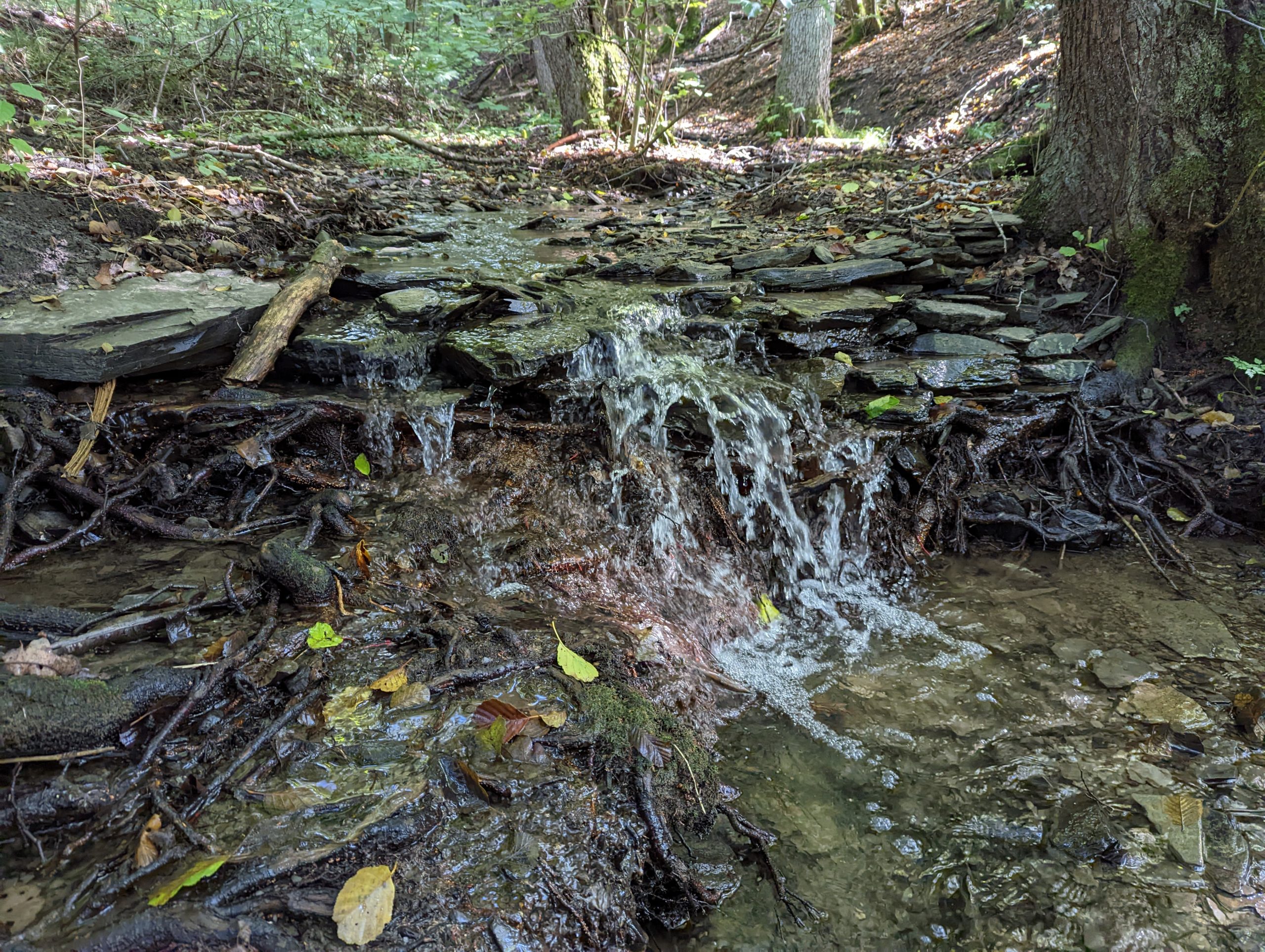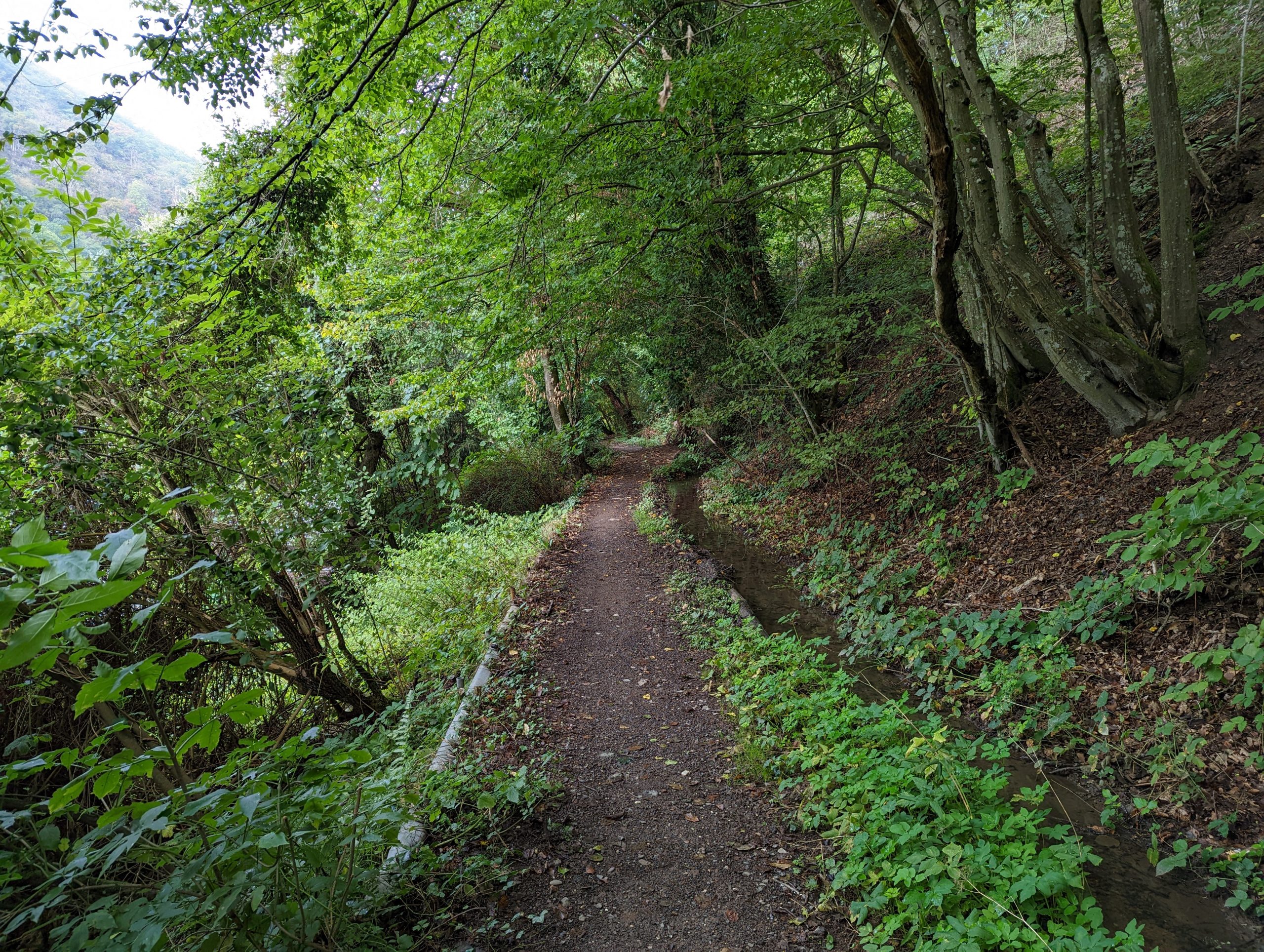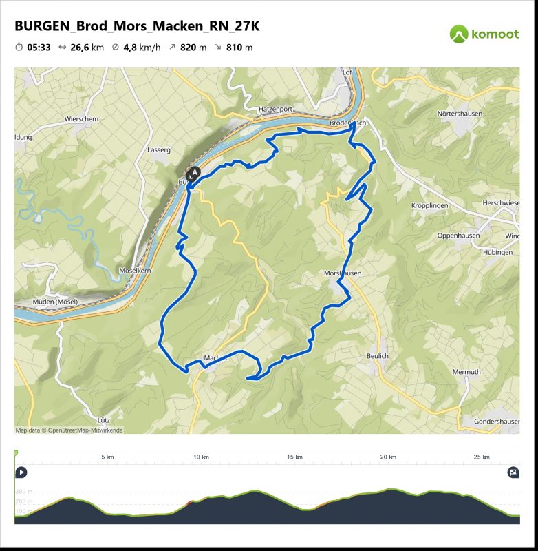 Gegen 10 geht es dann los auf die geplante Runde, erst am Moselhang entlang nach Brodenbach, dann ein Stück am Ehrbach entlang und dann in einem steilen Seitental dem Saar-Hunsrück Steig folgend hinauf nach Morshausen. Wieder runter ins Baybachtal und gleich rauf nach Macken.
