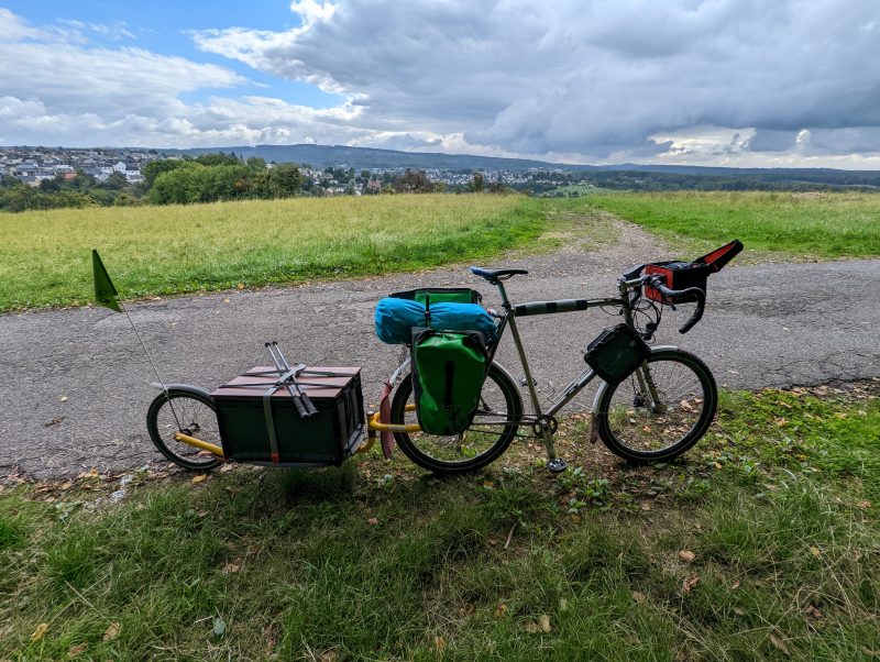 Die komplette Fuhre war schon schwer, aber mit der Rohloff Nabe auch an den Steigungen im Westerwald noch fahrbar (ca. 4 km/h in Gang 2). Leichter ist natürlich immer besser.