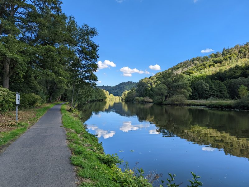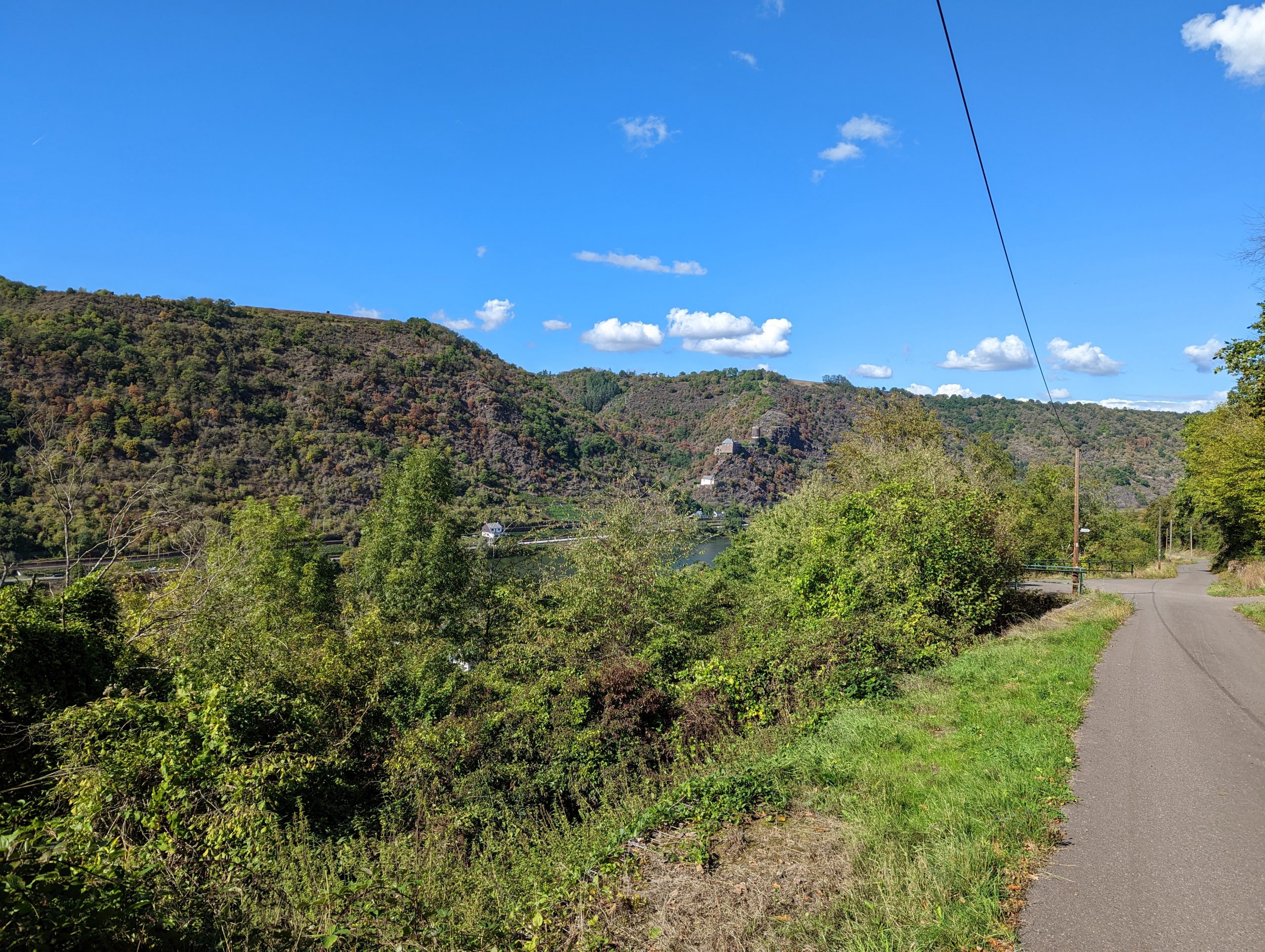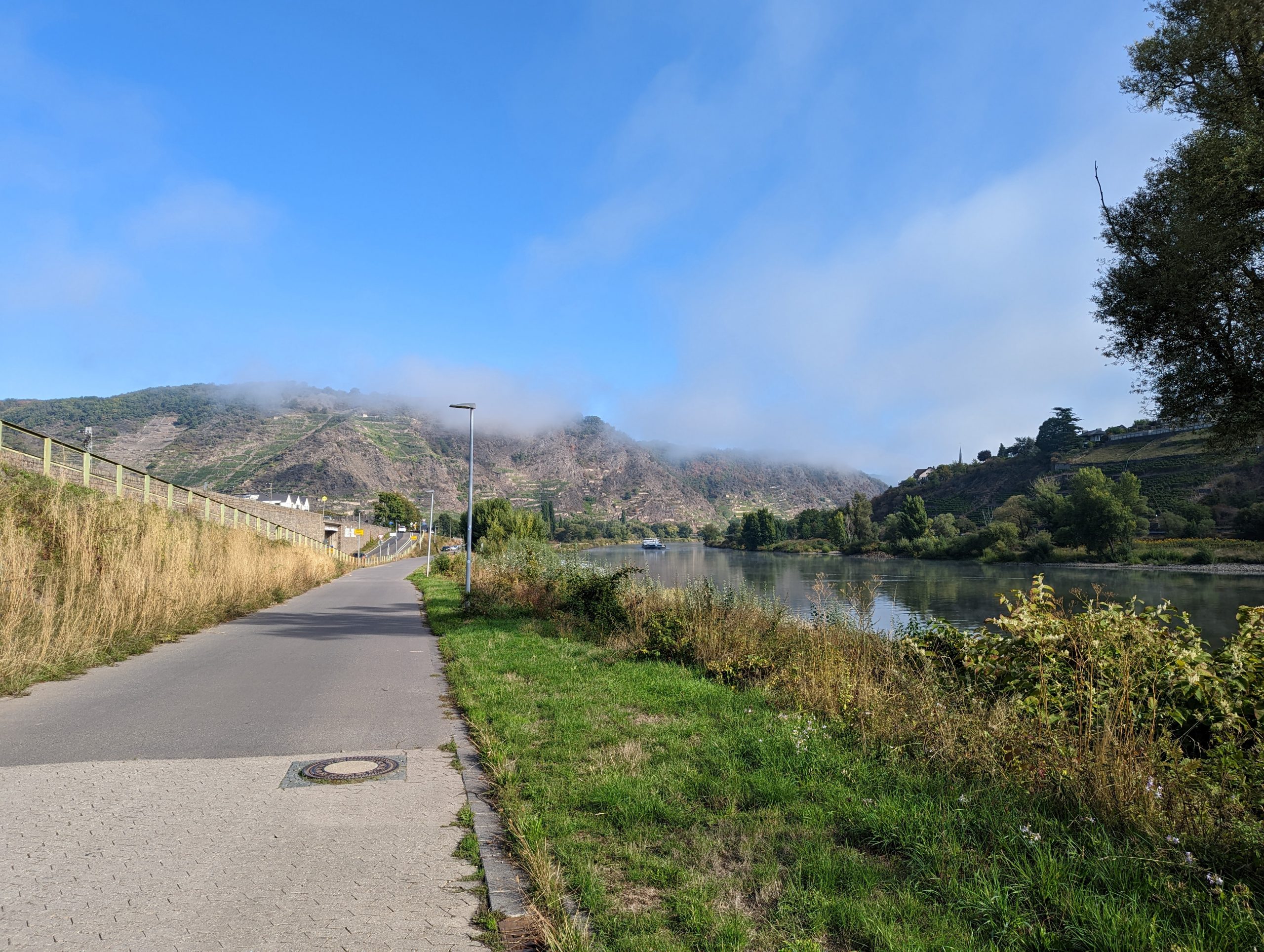 An der Mosel zieht es sich dann hauptsächlich parallel zur Bundesstraße bis zur Moselbrücke bei Löf / Alken. Der erst bevorzugte Campingplatz im Brodenbach hatte am Anreisetag (Dienstag) Ruhetag, daher ging es noch 5 Kilometer moselaufwärts bis Burgen zum Camping Häppy Life.