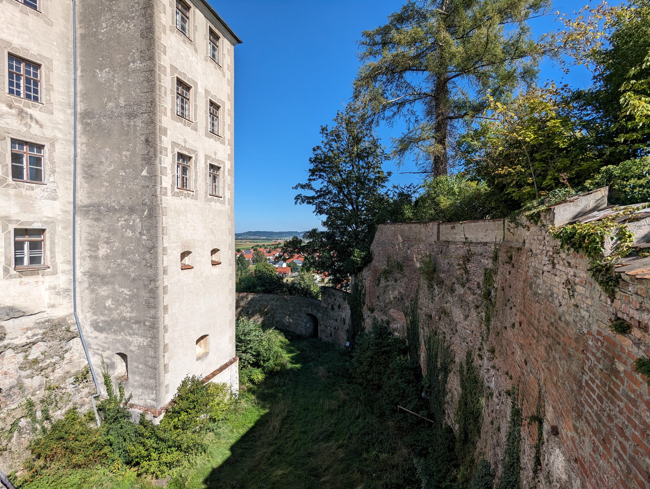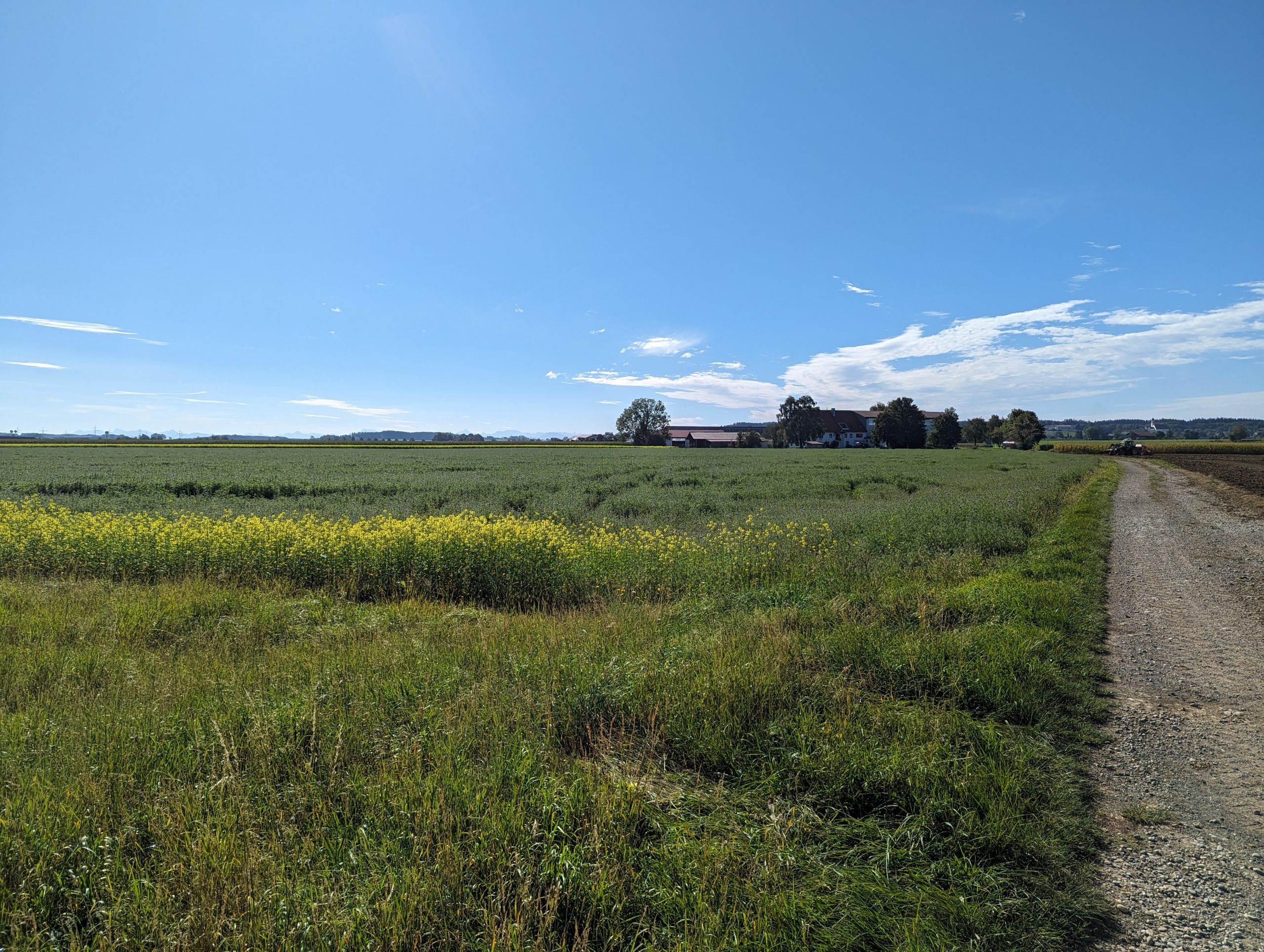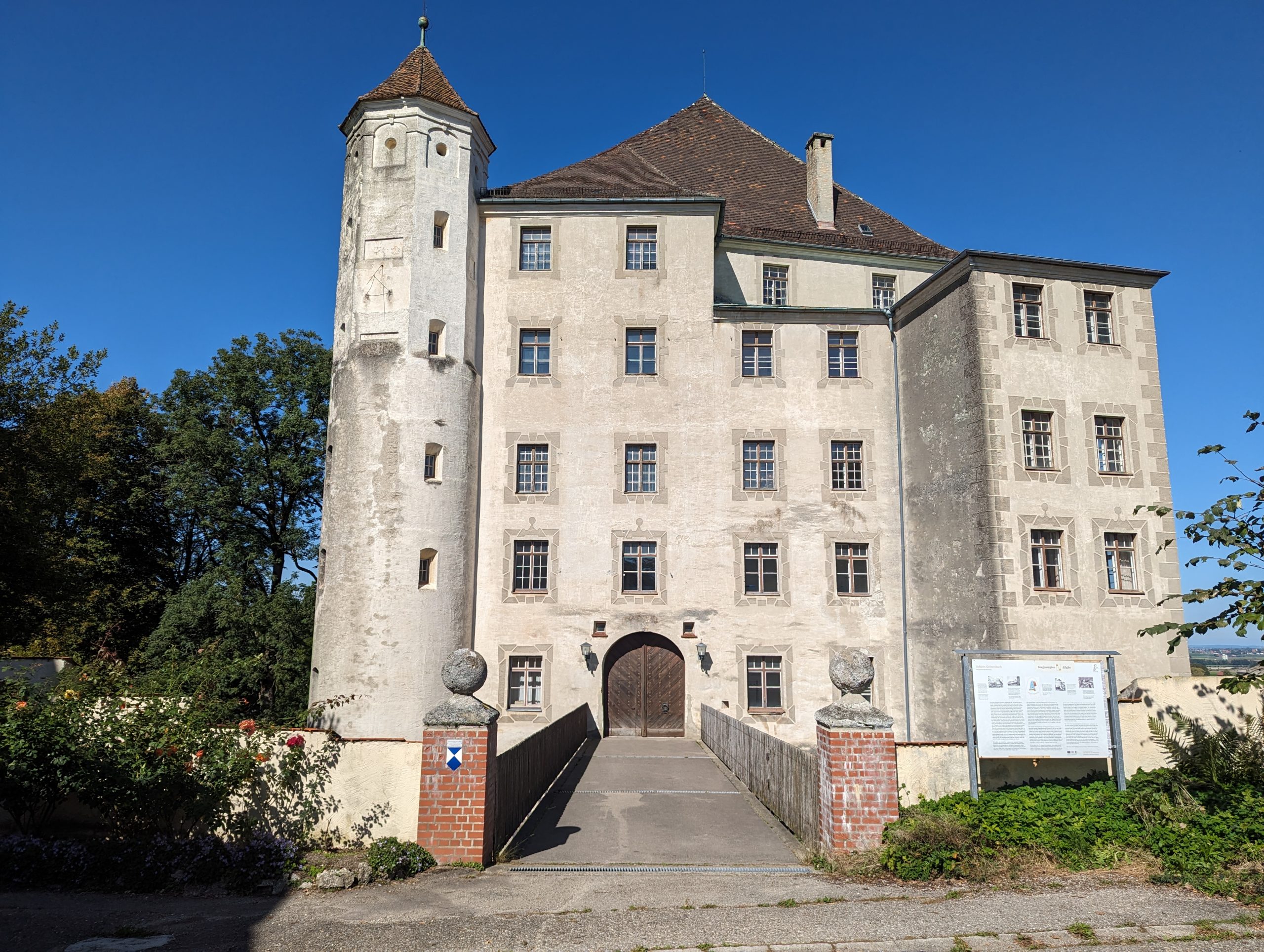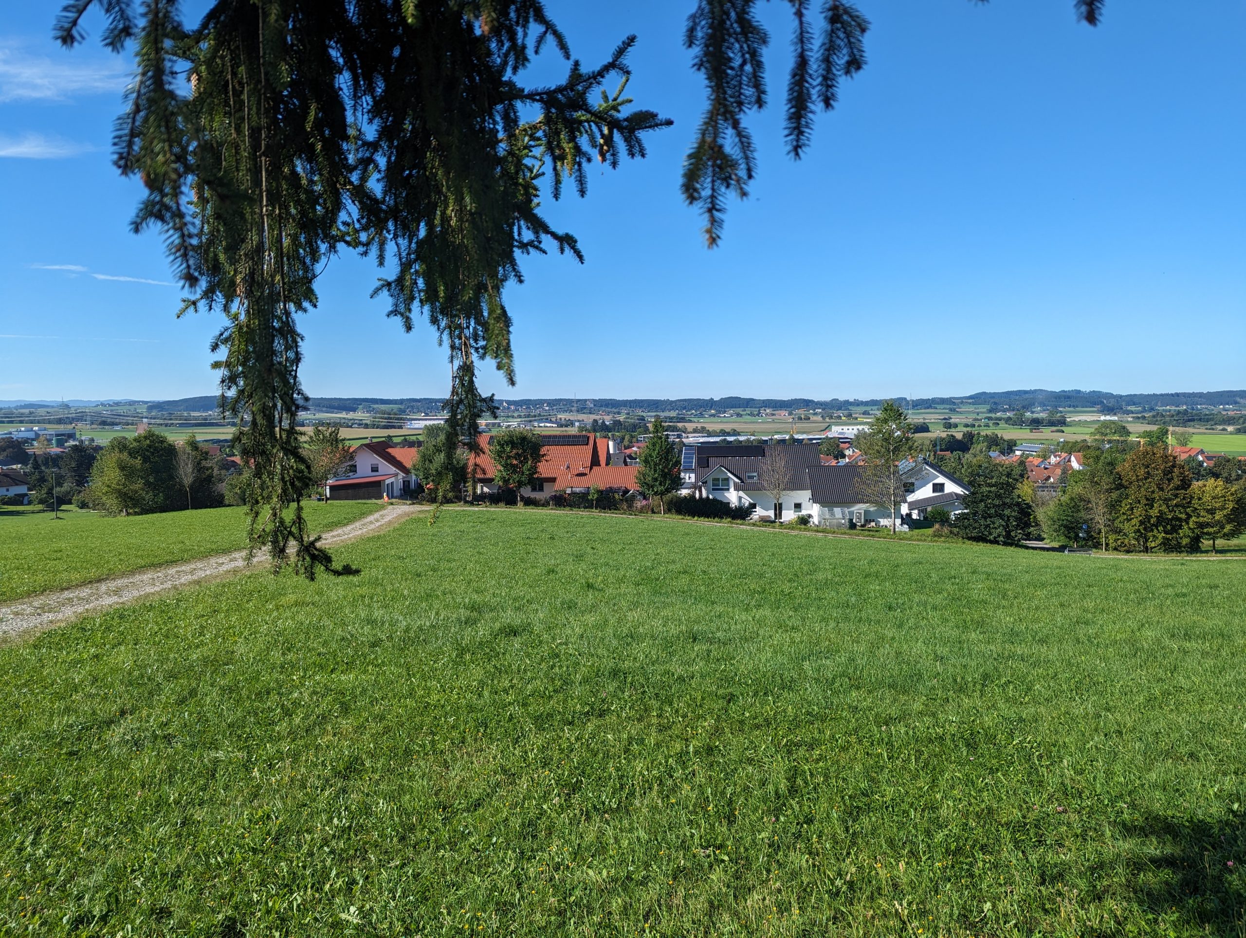 Bei dieser Tour führt sowohl der Hin- als auch Rückweg nach Bad Grönenbach über kleine Verbindungsstraßen. Außerdem fährt man auf dem Hinweg über einen langen Schotterweg entlang einer Kiesgrube. Die Aussicht “Kornhofer Bänke” südlich von Bad Grönenbach ist dafür aber umso lohnender, da man bei guter Sicht bis in die Berge schauen kann. Aufgrund der oben beschriebenen Wegführung entschließen wir uns, diese Etappe als Joggingrunde für Kunibert mit Faltradbegleitung durch Kunigunde zu gestalten. In Bad Grönenbach schieben wir dann das Rad und müssen es auch die Stufen hinauf zur Stiftskirche an manchen Stellen tragen.