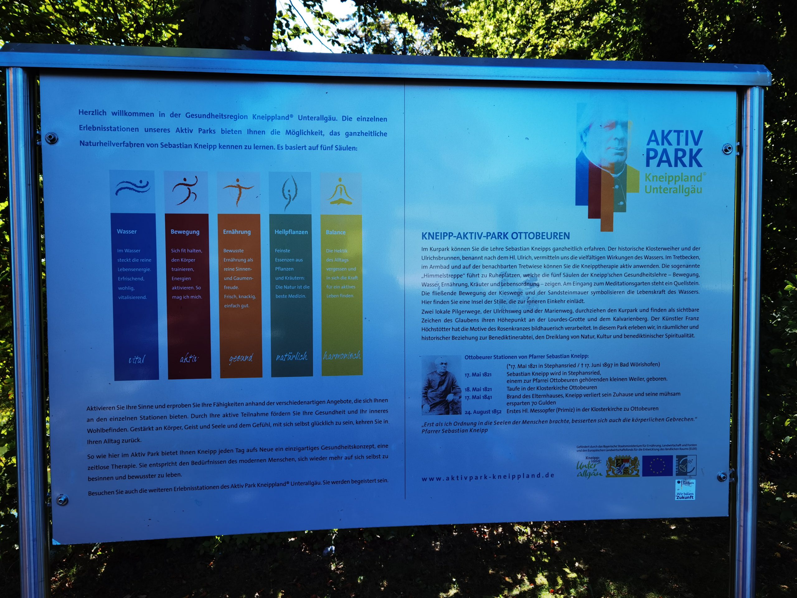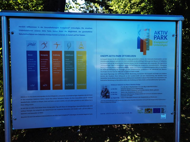 Nach der Anreise im Herbst 2023 in Ottobeuren war dieses unsere erste Schleifenetappe der Wiesengängerroute. Startpunkt ist der Campingplatz Ottobeurern. Von dort geht es zuerst in die Stadt zur Basilika St. Alexander und Theodor der Benediktiner-Abtei. Weiter geht es zum Kneipp-Aktiv-Park und von dort zum Bannwald. Dort treffen wir auf den Waldlehrpfad, dem wir entlang des plätschernden Baches folgen, bis der Weg uns hinauf zum Schiessenhof führt. Entlang der Wiesen mit weiter Fernsicht wandern wir nach Schachern und kommen dort auf die Wiesengängerroute. Sie führt dann zurück zum Campingplatz, da die Wiesengängerroute direkt am Campingplatz vorbei geht.