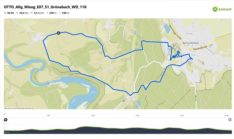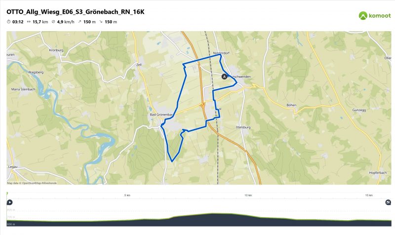 Der von uns aus ausgewählte Wanderparkplatz liegt bei Oberbinnwang, direkt an der Wiesengängerroute. Zusammen mit diesem Wanderweg und dem Jakobsweg wandern wir Richtung Bad Grönenbach, oberhalb des Illertals am Rechberghaus vorbei bis Rothenstein. Ab da geht es durch den Wald hinauf nach Bad Grönenbach. Nach einer kleinen Rundtour durch den Ort geht es zum “Hohen Schloss Bad Grönenbach” und dort in den Kräutergarten und Kreislehrgarten. Der Rückweg führt am Schloss-Aktiv-Park vorbei und mit einem Wanderweg bis Rothmoos und Oberbinnwang.