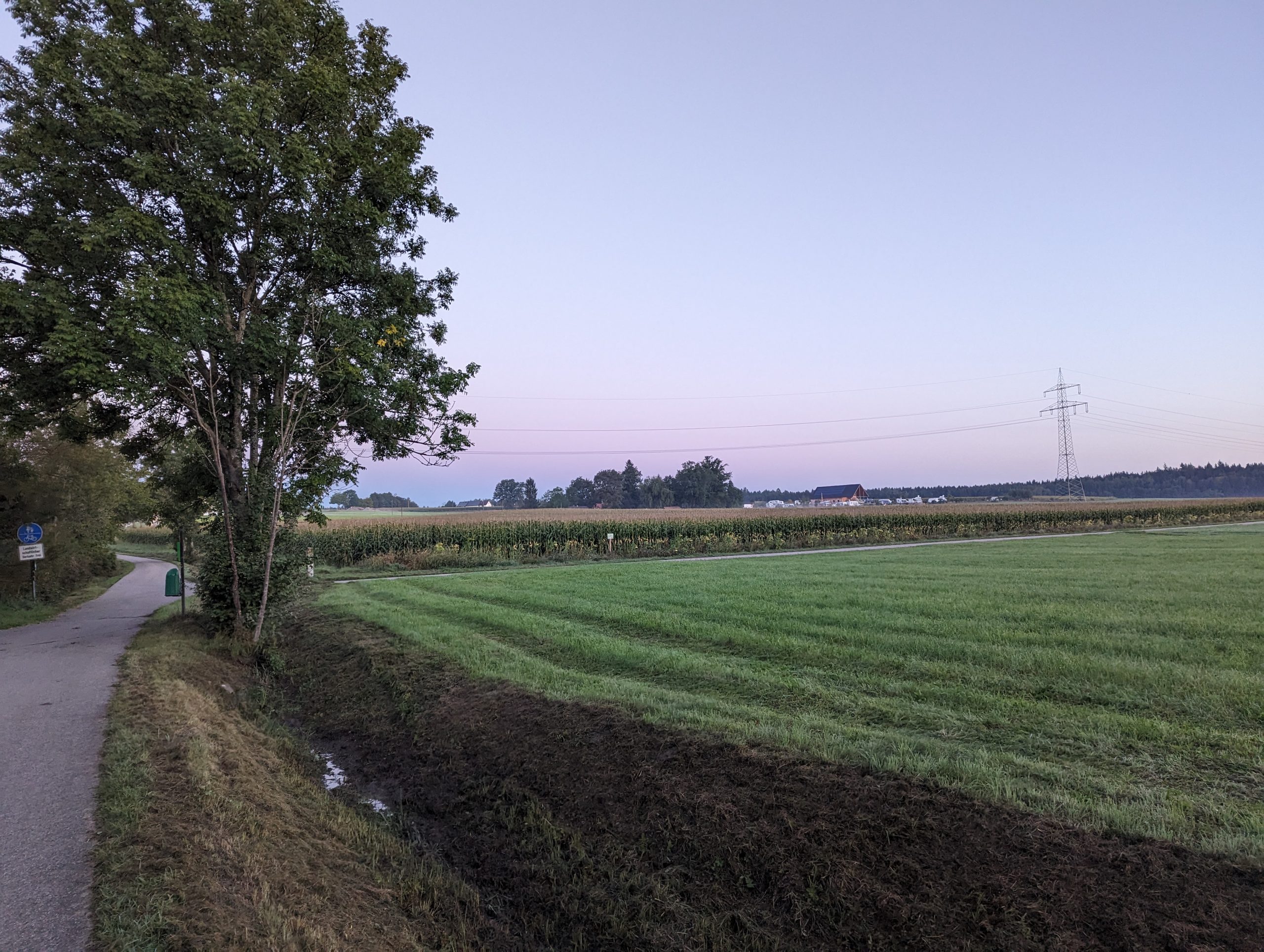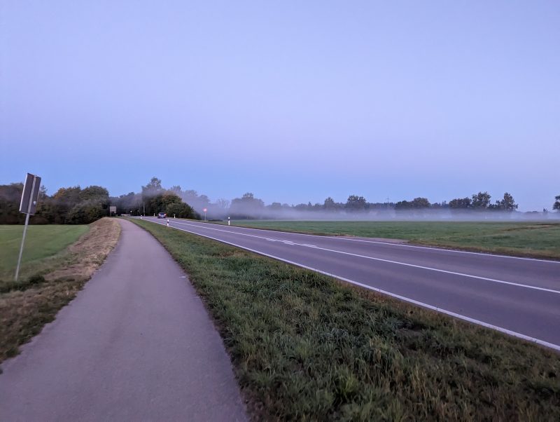 Eine Tour zur Kyll, der Radweg sollte ja wieder befahrbar sein. Outdooractive- und OSM Karte waren sich uneins, ob die Brücke als Zuweg von Bitburg zur Kylltalradweg existiert. Es gab eine Radwegumleitung und so habe ich auf der Tour die Kyll nicht erreicht. Neben dem Anstieg auf die Hochfläche zwischen Prüm und Kyll gab es auf dieser Runde ein paar Kilometer Bahntrassenradweg und Stadtradwege in Bitburg sowie die Enttäuschung mit der Kyllbrücke. Wieder überwiegend Landes- und Kreisstraßen mit wenig interessanten Aspekten. Es ging, aber es ging langsam, so wie die Vortage auch. Eigentlich war ich nur noch froh, das bis auf eine Nacht und eine Tour die Einheiten rum waren. Die Aussicht auf 6 Stunden laute Familienunterhaltung am Platz, tropfenden Morgengruß vom Zelt und die schmale Liegefläche mit unzureichendem Kopfkissen wurde mit “den einen Tag schaffst du auch noch” bekämpft.