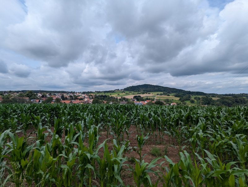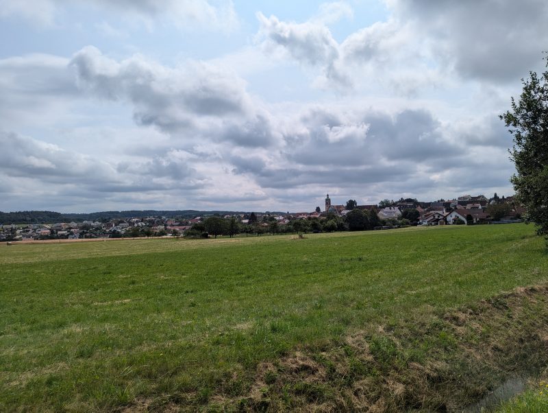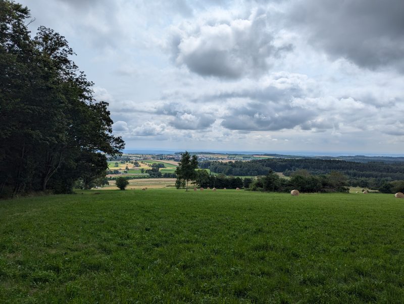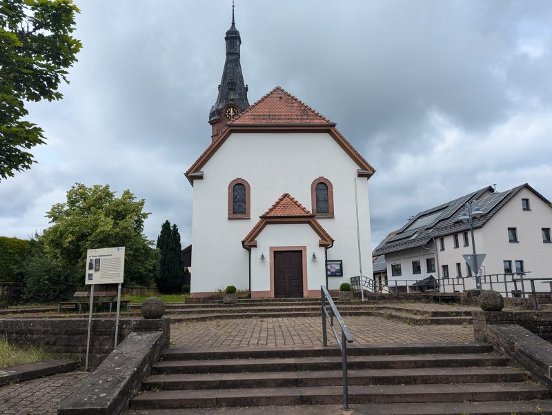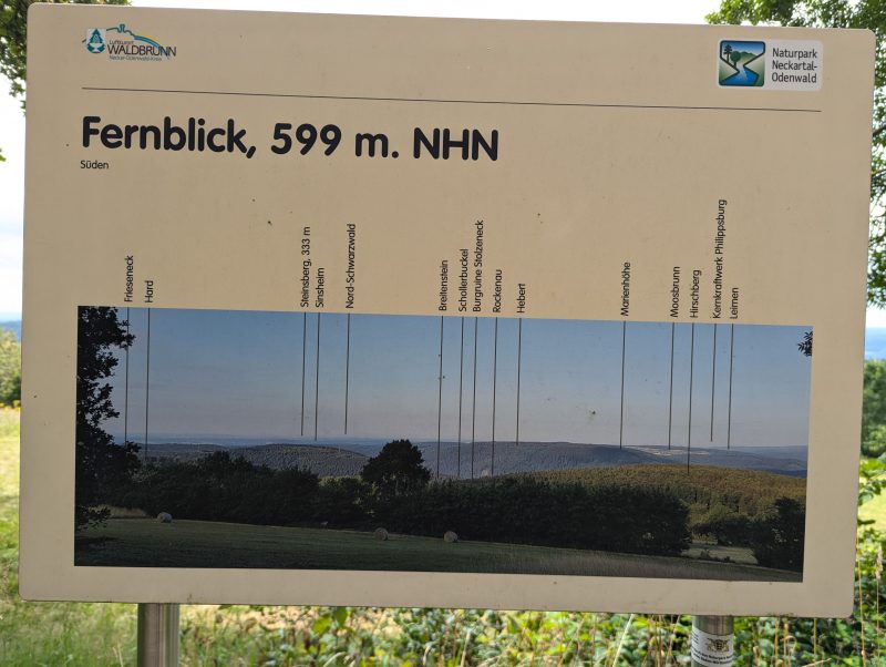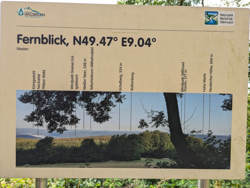 Der Wanderparkplatz Beuchner Berg liegt im Süden von Amorbach. Es gehen insgesamt zwei Wanderrunden von diesem Parkplatz aus, die wir für unsere Tour kombiniert haben. Ein besonderes Ziel ist die Schwenderskapelle und auch gleich zu Beginn der Wanderung am Kastanienweg der Aussichtspunkt über Amorbach.