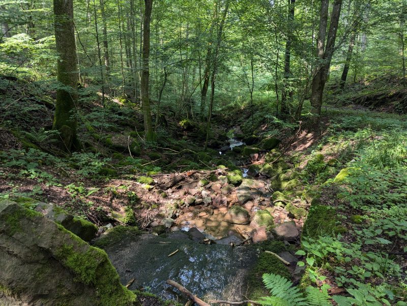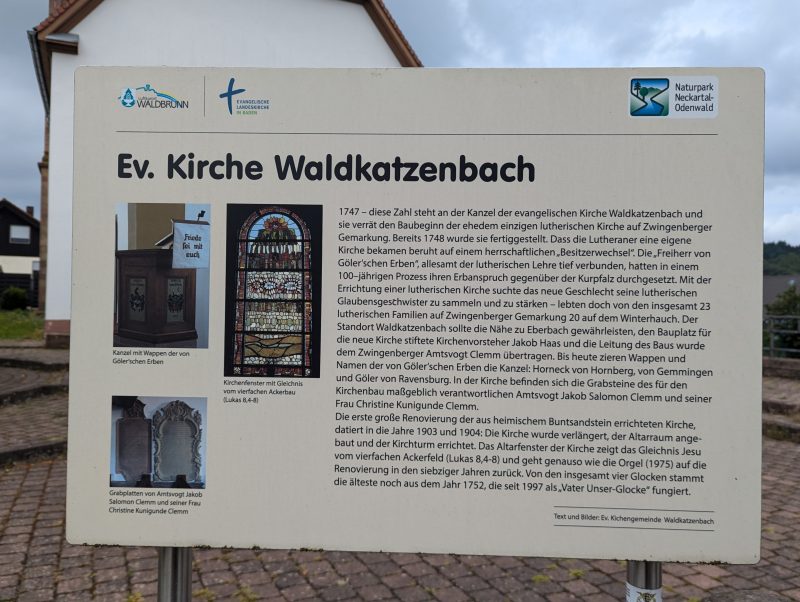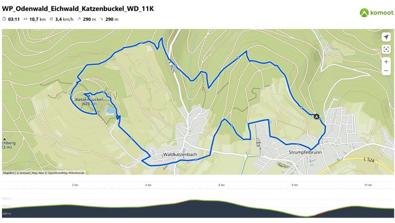 Der Startpunkt unserer Tour ist der Wanderparkplatz Eichwald bei Strümpfelbrunn. Von hier aus geht es zuerst durch das Dorf mit dem Fernwanderweg Nr. 34 (rotes Kreuz) und dem Wanderweg “Weg der Kristalle. Dann wandern wir weiter nach Waldkatzenbach und hinauf zur Villa Katzenbuckel. Nun geht es in den Wald hinein zum Katzenbuckelsee, an einer alten Mattenschanze vorbei und hinauf zum Aussichtsturm auf 626 Höhenmeter. Der “Weg der Kristalle” führt uns um den Katzenbuckel herum und hinunter in das Bachtal “Eisigklinge”. Mit einem langen Anstieg kommen wir zurück zum Wanderparkplatz.