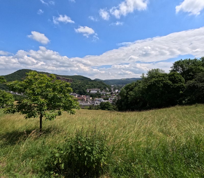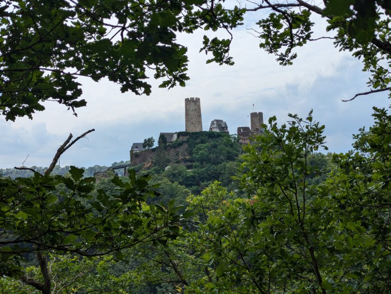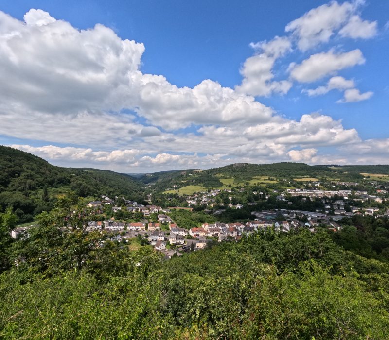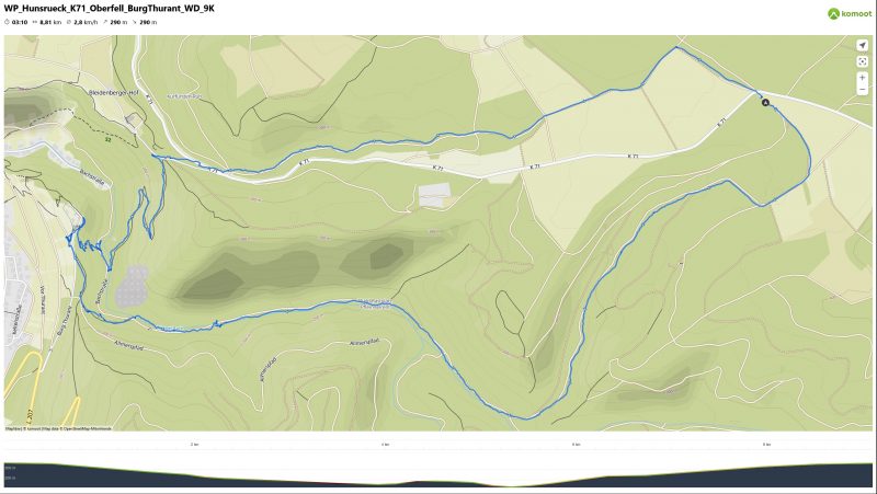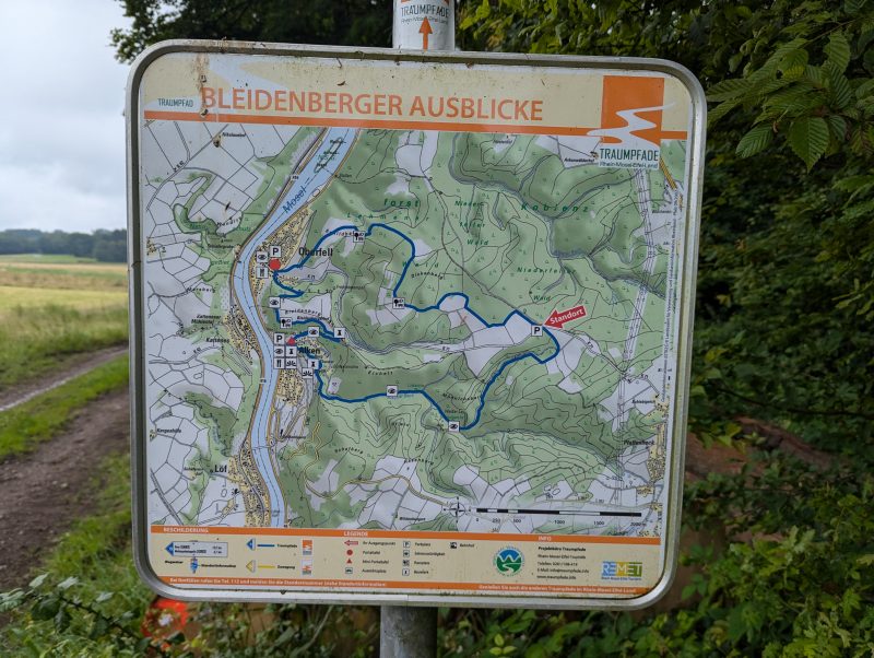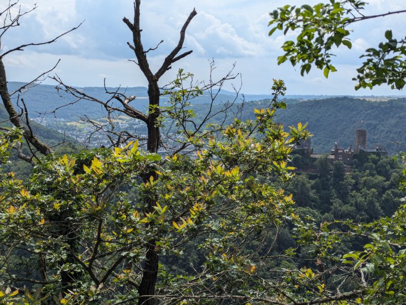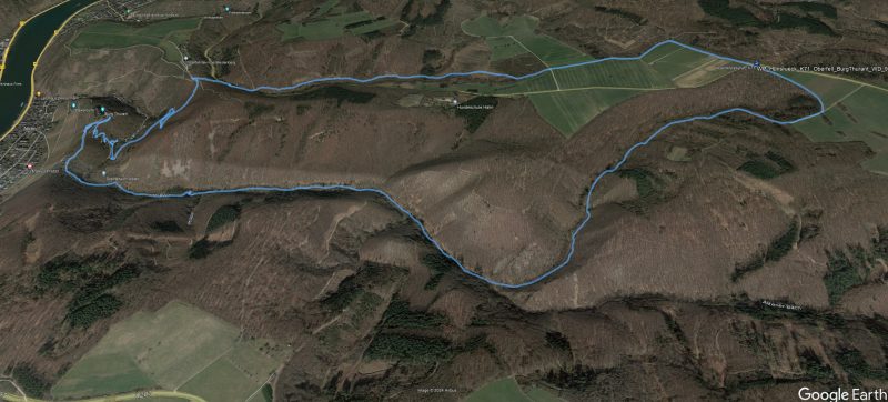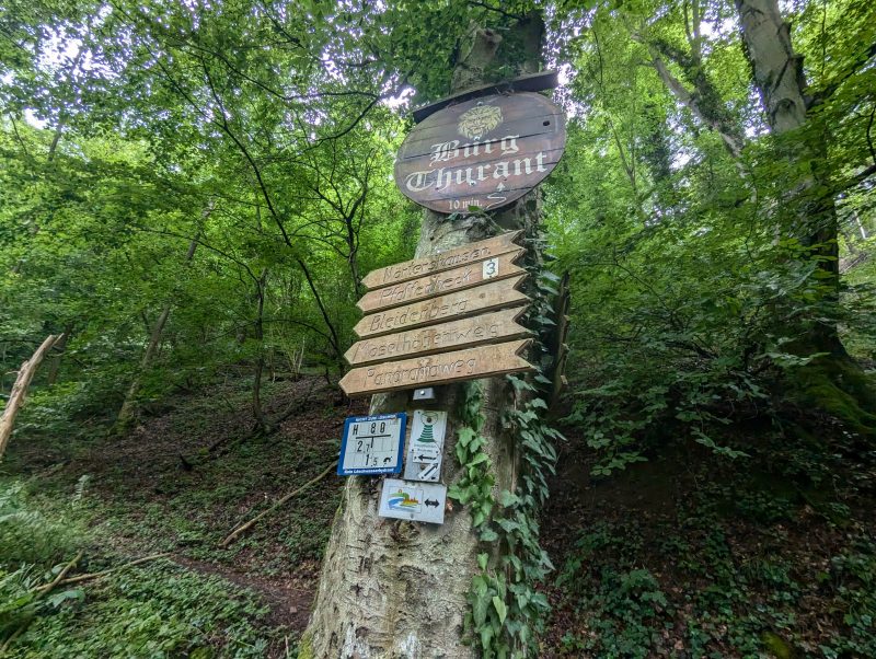Auf dem Hinweg zum Campingplatz Nahemühle machen wir im Hunsrück diese Wanderung zur Burg Thurant an der Mosel. Vom Wanderparkplatz startet auch die Traumschleife “Bleidenberger Ausblicke”. Unsere Wanderung folgt zum Teil dieser Traumschleife. Das heißt, zusamen mit der Traumschleife wandern wir bis zur Burg und haben von dort einen weiten Blick ins Moseltal. Dann geht es wieder hinunter ins Bachtal und weiter Richtung Bleidenheck. Kurz vor der Straße nach Oberfelln treffen wir auf dem Pilgerweg Mosel Campino und mit ihm geht es zurück hinauf in den Hunsrück und zum Wanderparkplatz.