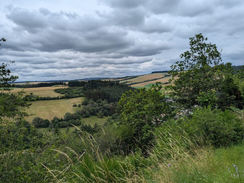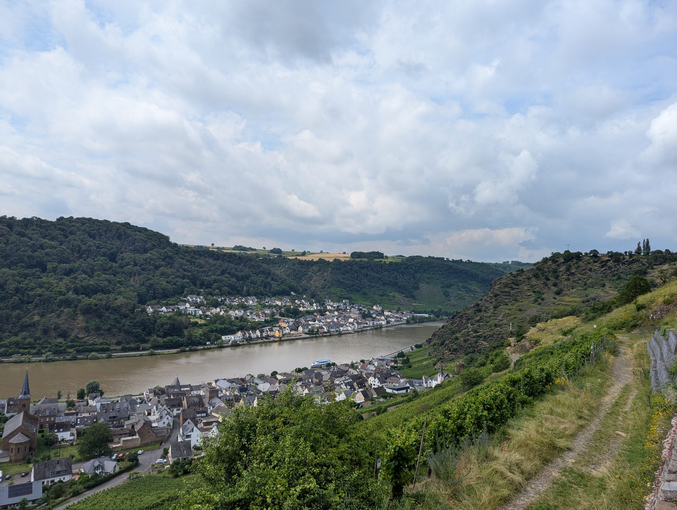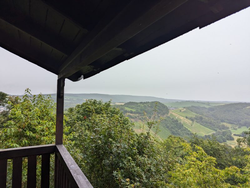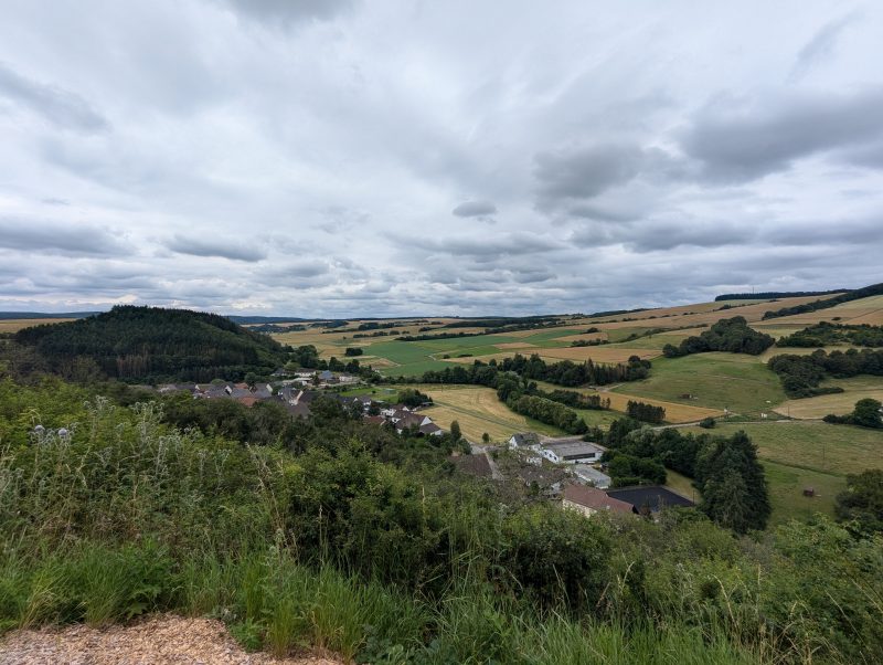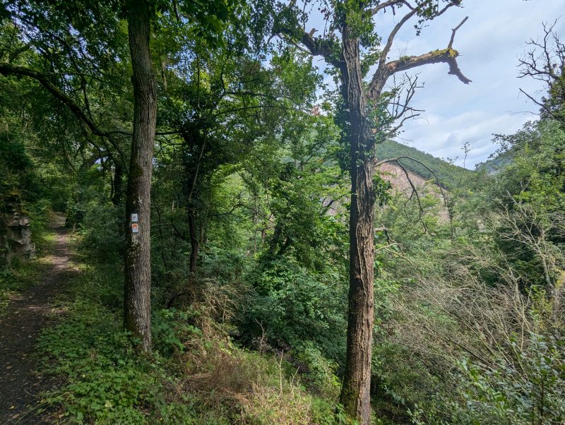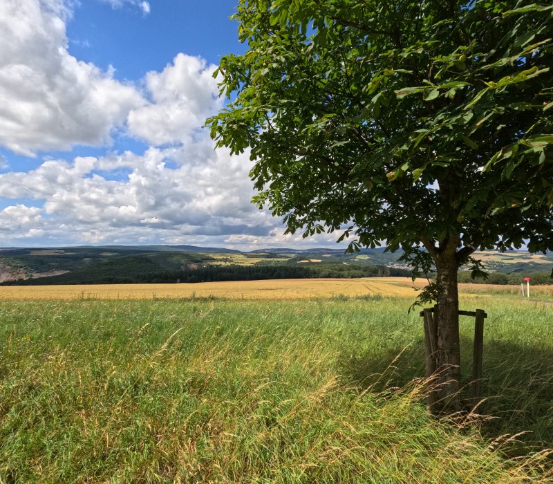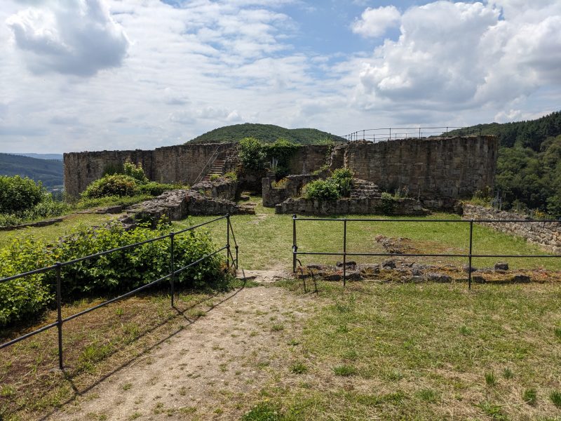 Auf dem Hinweg zum Campingplatz Nahemühle machen wir im Hunsrück diese Wanderung zur Burg Thurant an der Mosel. Vom Wanderparkplatz startet auch die Traumschleife “Bleidenberger Ausblicke”. Unsere Wanderung folgt zum Teil dieser Traumschleife. Das heißt, zusamen mit der Traumschleife wandern wir bis zur Burg und haben von dort einen weiten Blick ins Moseltal. Dann geht es wieder hinunter ins Bachtal und weiter Richtung Bleidenheck. Kurz vor der Straße nach Oberfelln treffen wir auf dem Pilgerweg Mosel Campino und mit ihm geht es zurück hinauf in den Hunsrück und zum Wanderparkplatz.