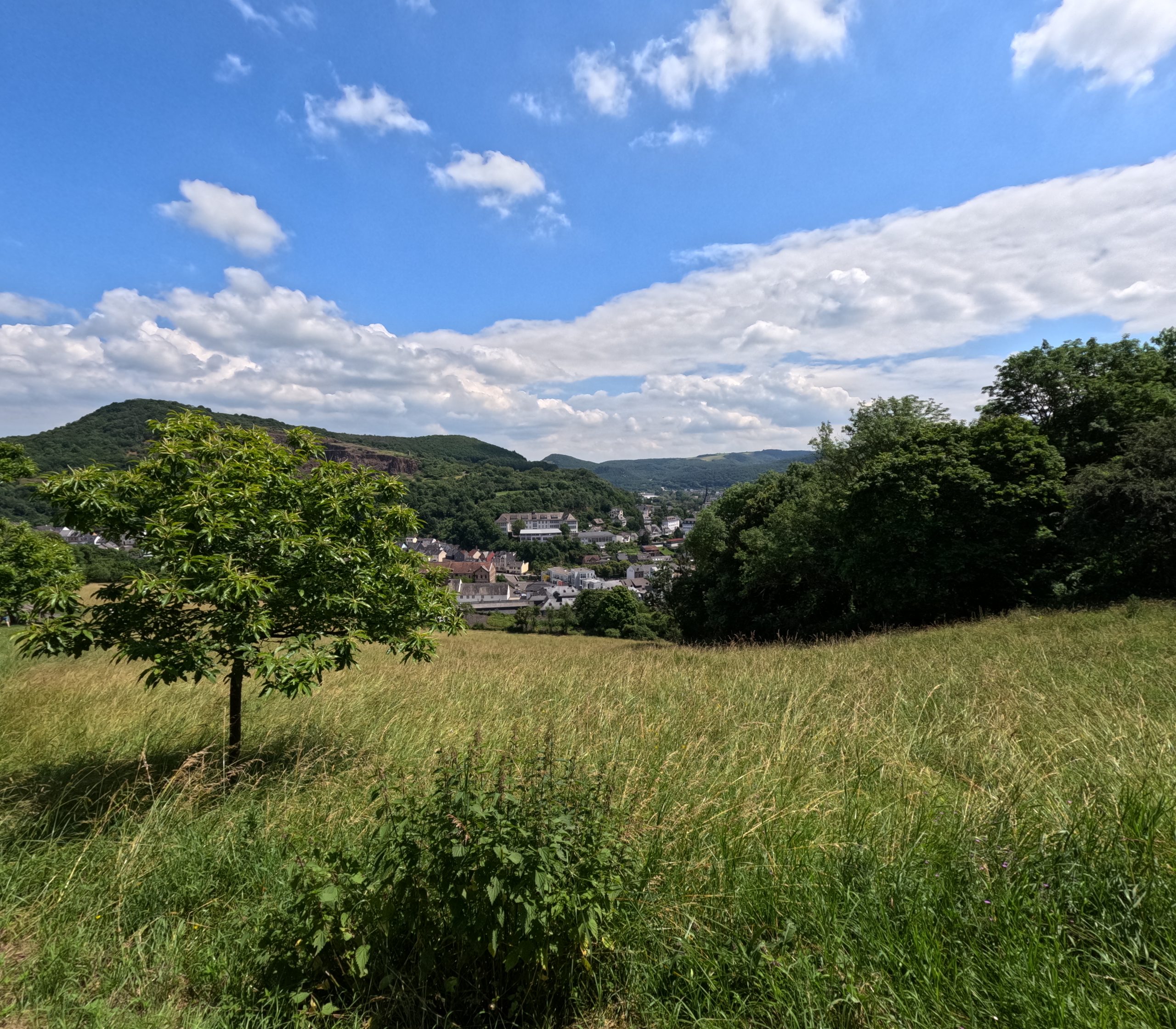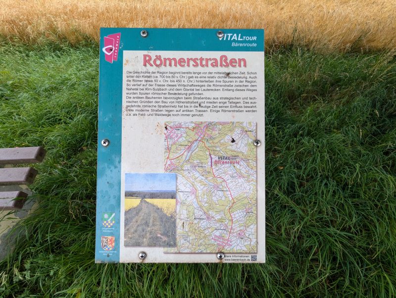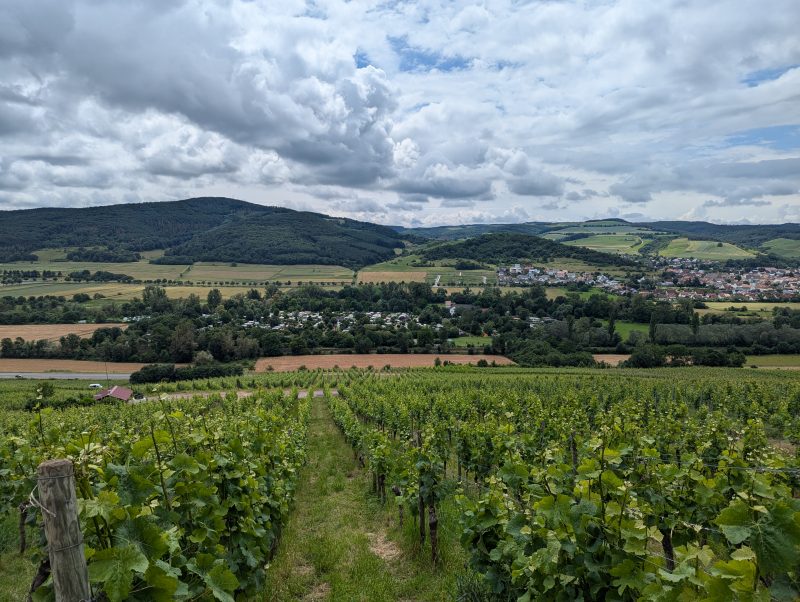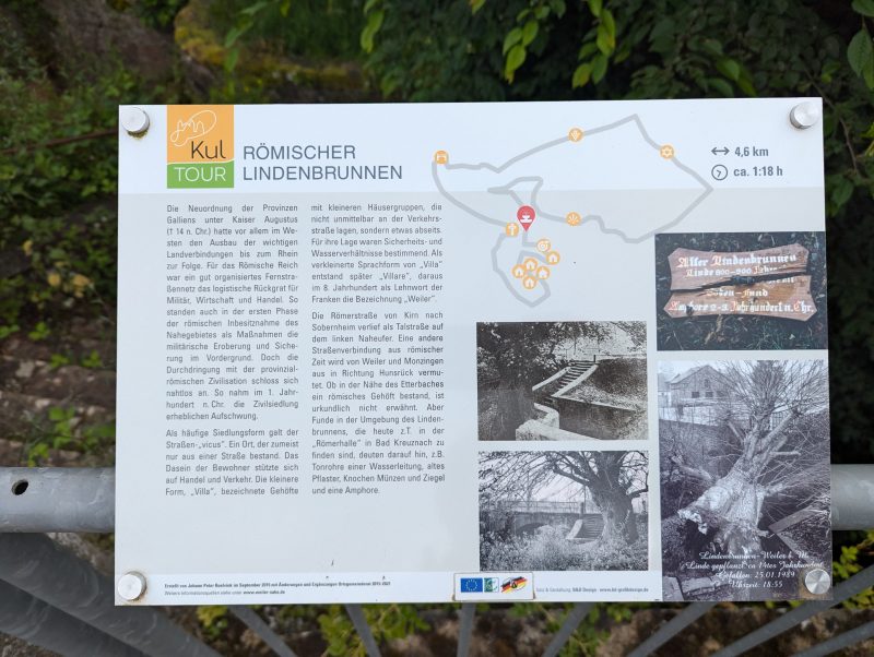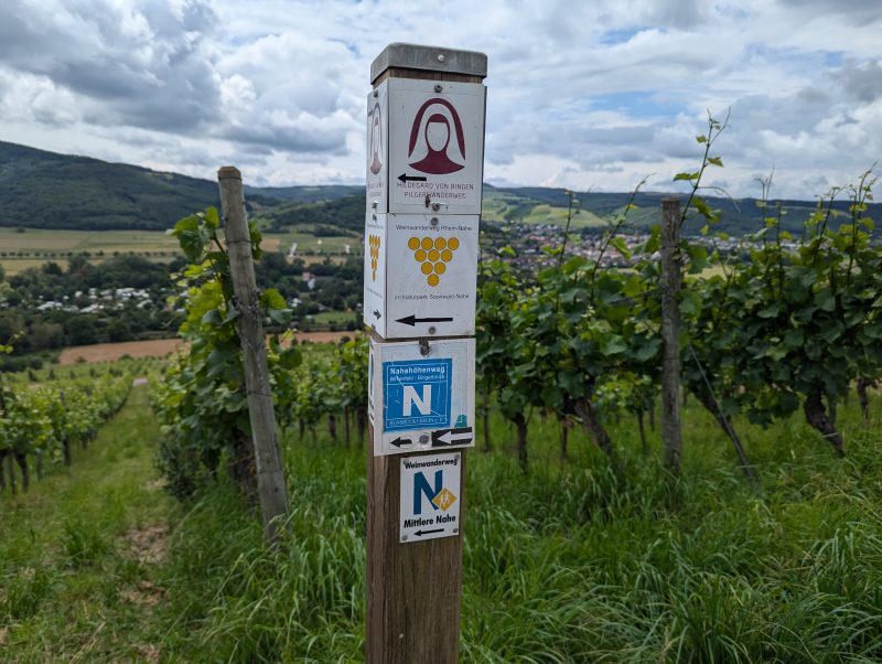 Die erste Wanderung startet direkt vom Campingplatz aus. Zuerst wandern wir nach Monzingen und von dort “Zur schönen Aussicht” hinauf. Mit dem Wanderweg M4 (Alter Römerweg) geht es weiter in Richtung des Dörfchens Weiler bei Monzingen. Dabei treffen wir auf einem “KulTour” Rundweg, der uns zum Römischen Lindenbrunnen führt. Mit dem Rheinwanderweg Rhein-Nahe und auch dem Hildegard von Bingen Pilgerwanderweg geht es durch die Weinberge mit weiter Aussicht zurück bis Monzingen.