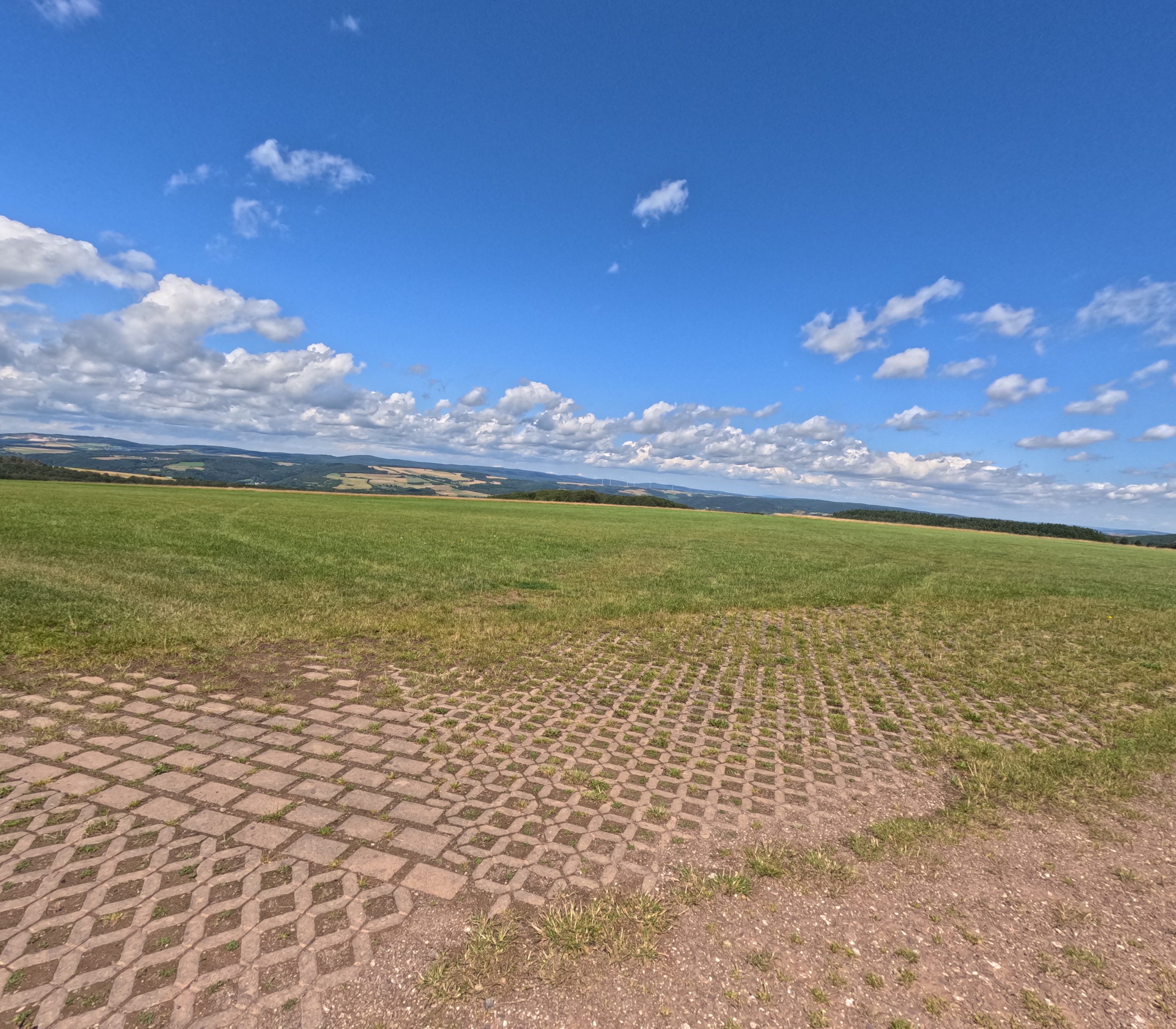 Unsere letzte Radtour führt uns vom Campingplatz zum Naheradweg und nach Merxheim. Von dort führt ein geteerter Weg entlang der Felder hinauf bis zur Meckenbacher Höhe (443m). Auf dem letzten Teilstück ist der Weg geschottert und oben auf der Höhe befindet sich ein Segelfluggelände. Auf dem gesamten Weg hinauf hat man weite Fernsichten zum Teil in allen Richtungen. Danach geht es in steiler Abfahrt hinunter bis Hochstädten an der Nahe. Von dort führt uns der Radweg zurück zum Campingplatz.